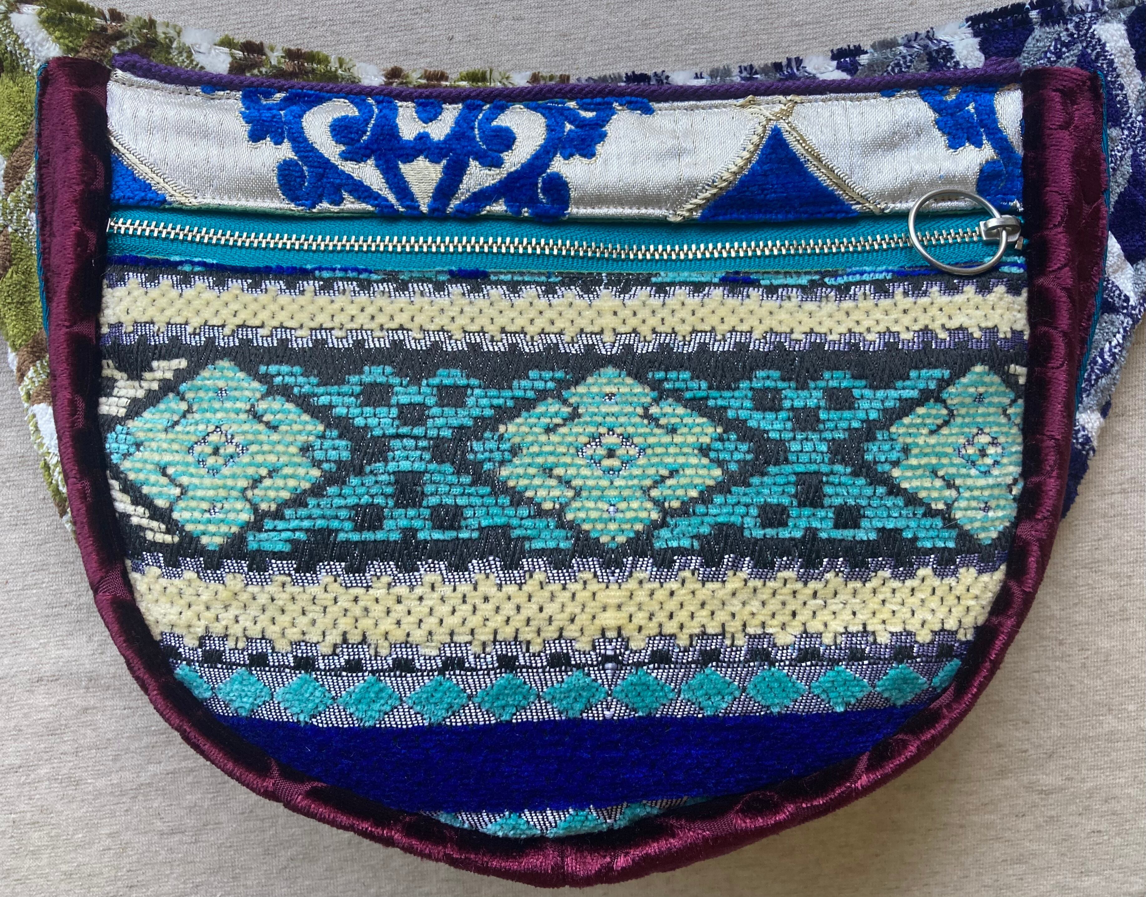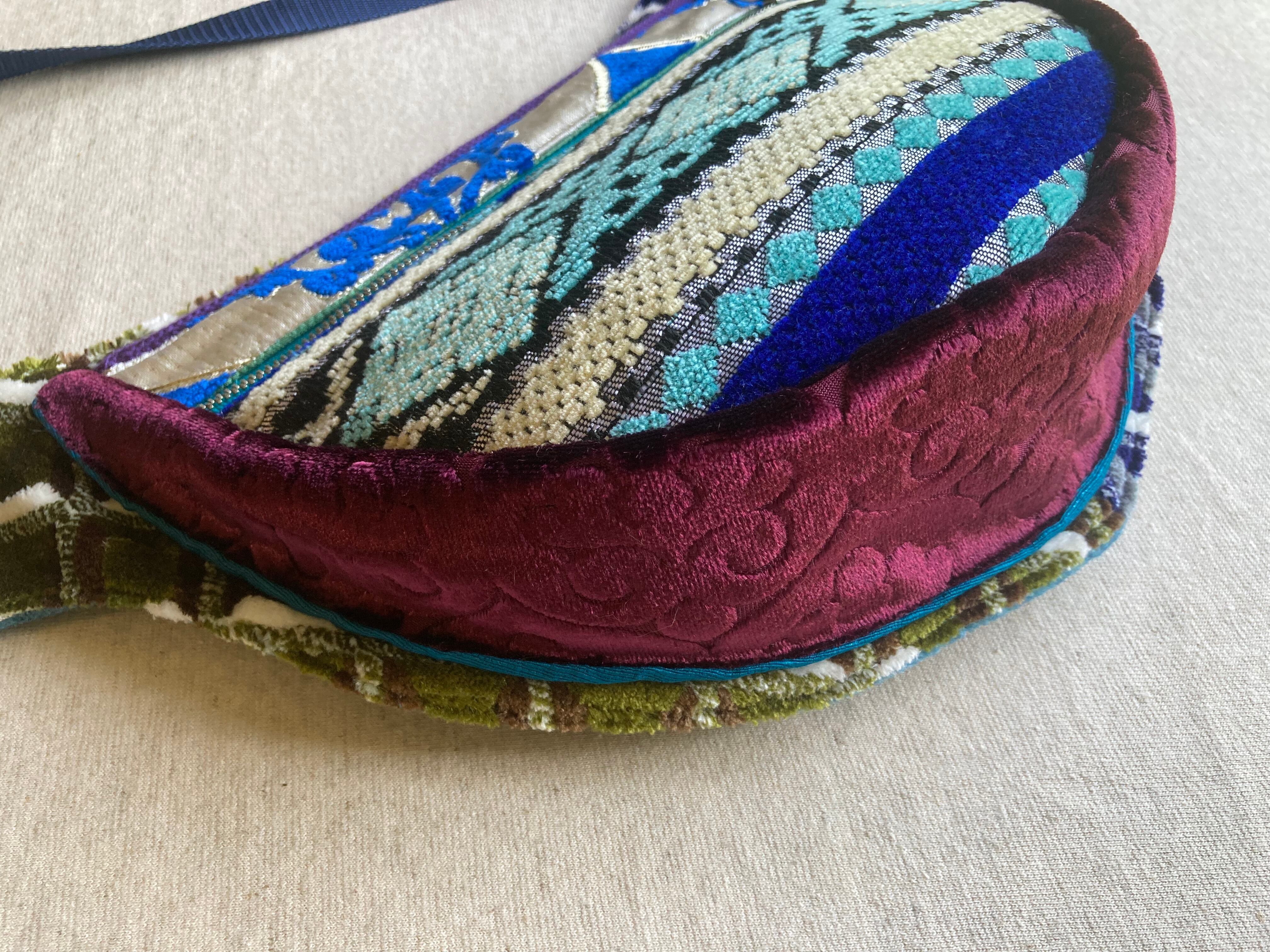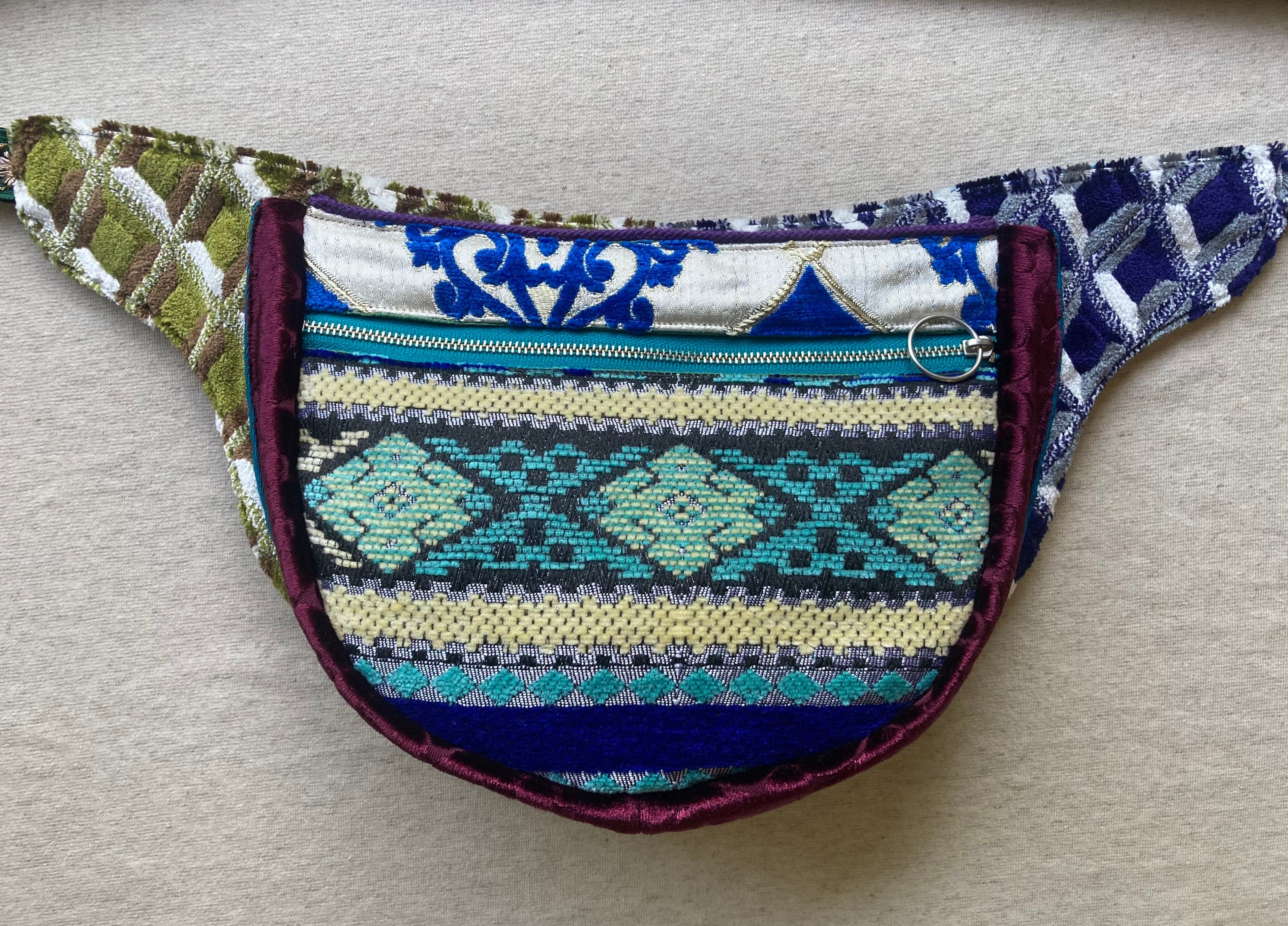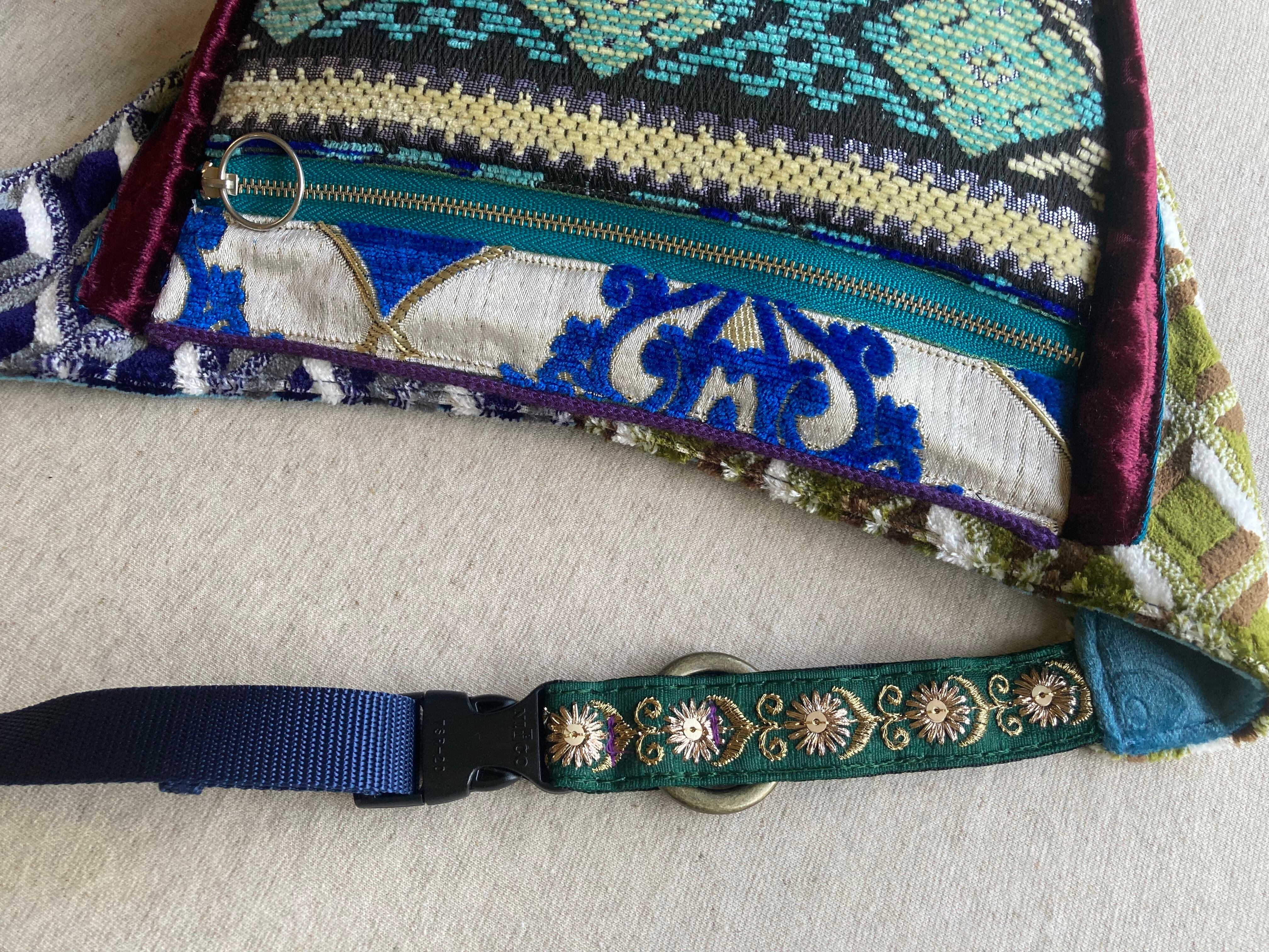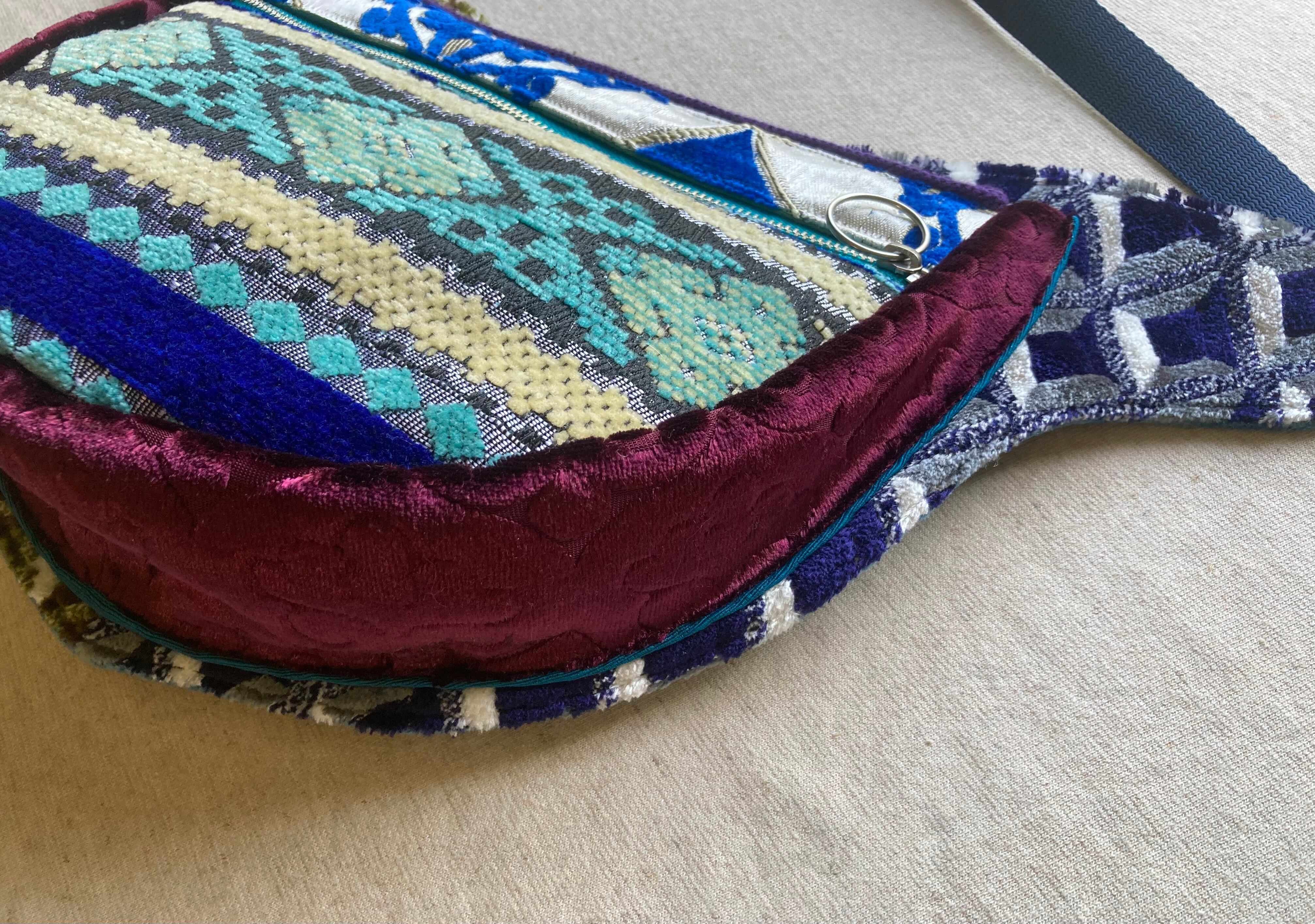 オリジナルデザインのウェストバッグ型ショルダーです。モロッコの生地をメインにmixしてオンリーワンに仕上げていますので、生地の上質な質感やカラフルな色合わせなどを楽しんでいただけたら嬉しいです。