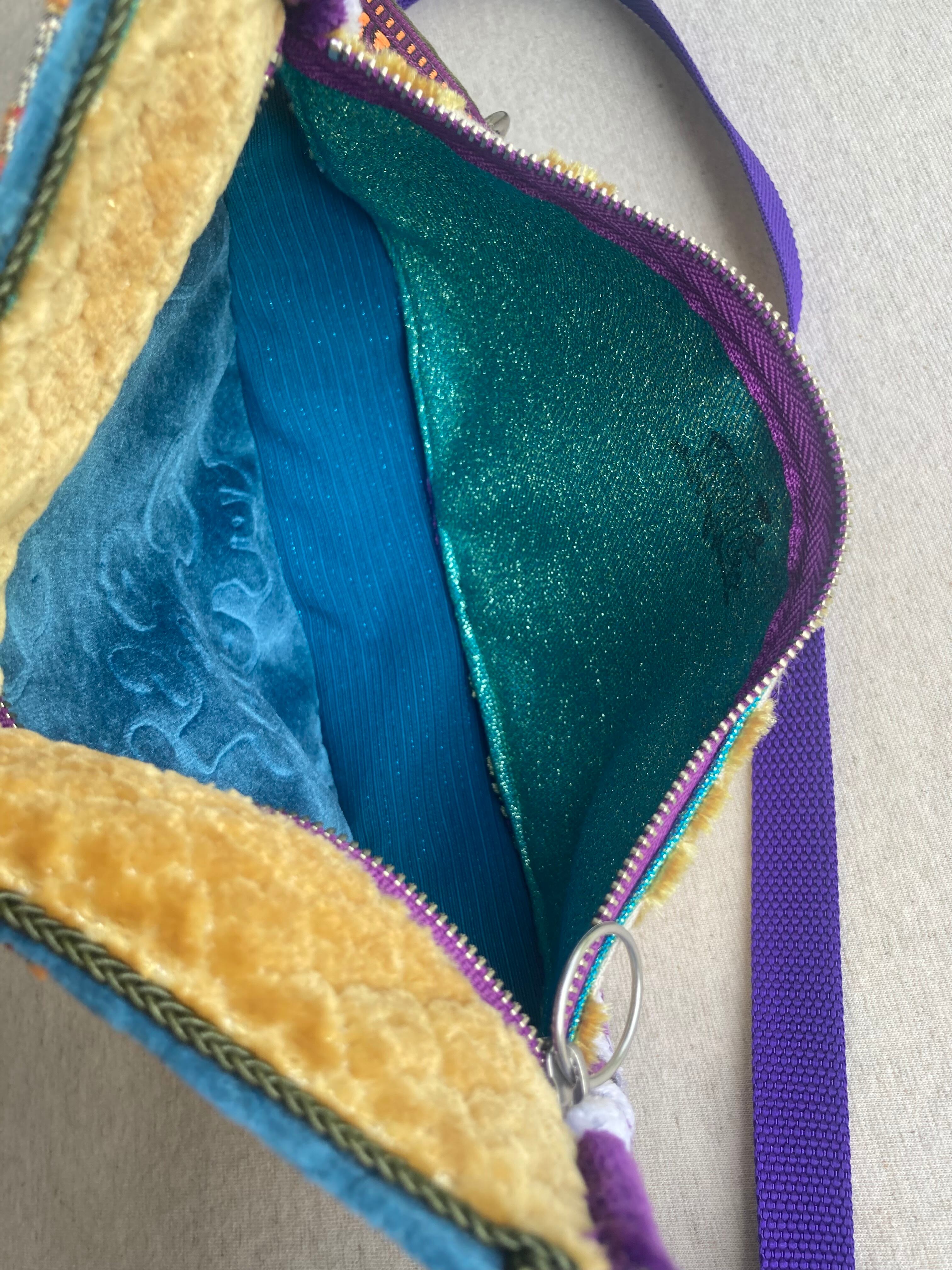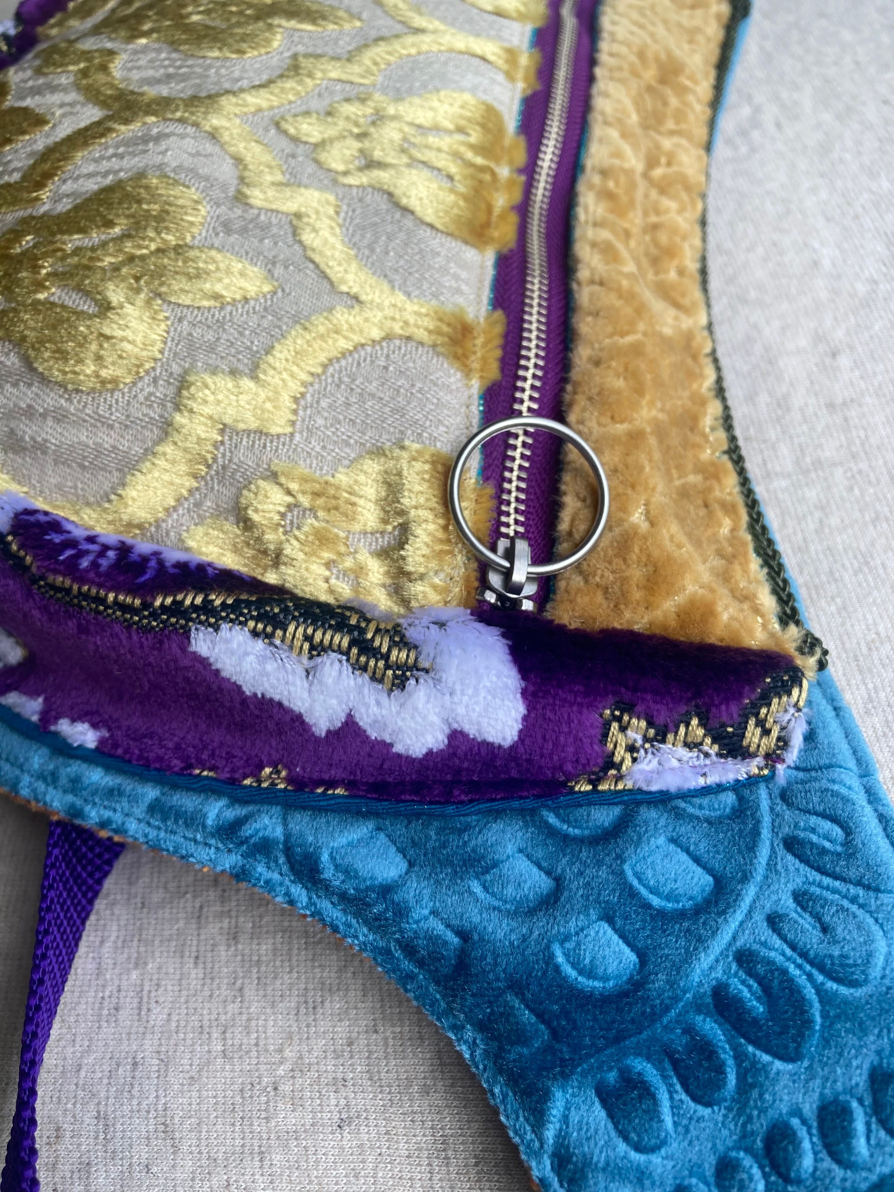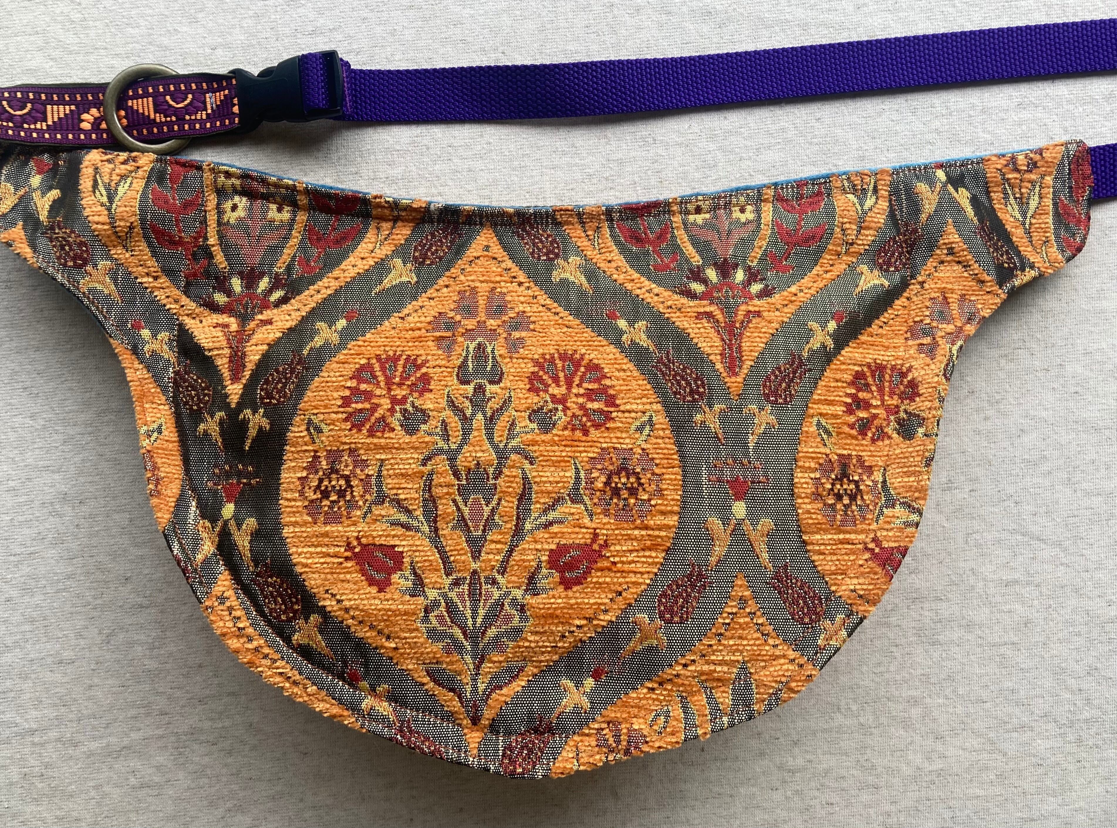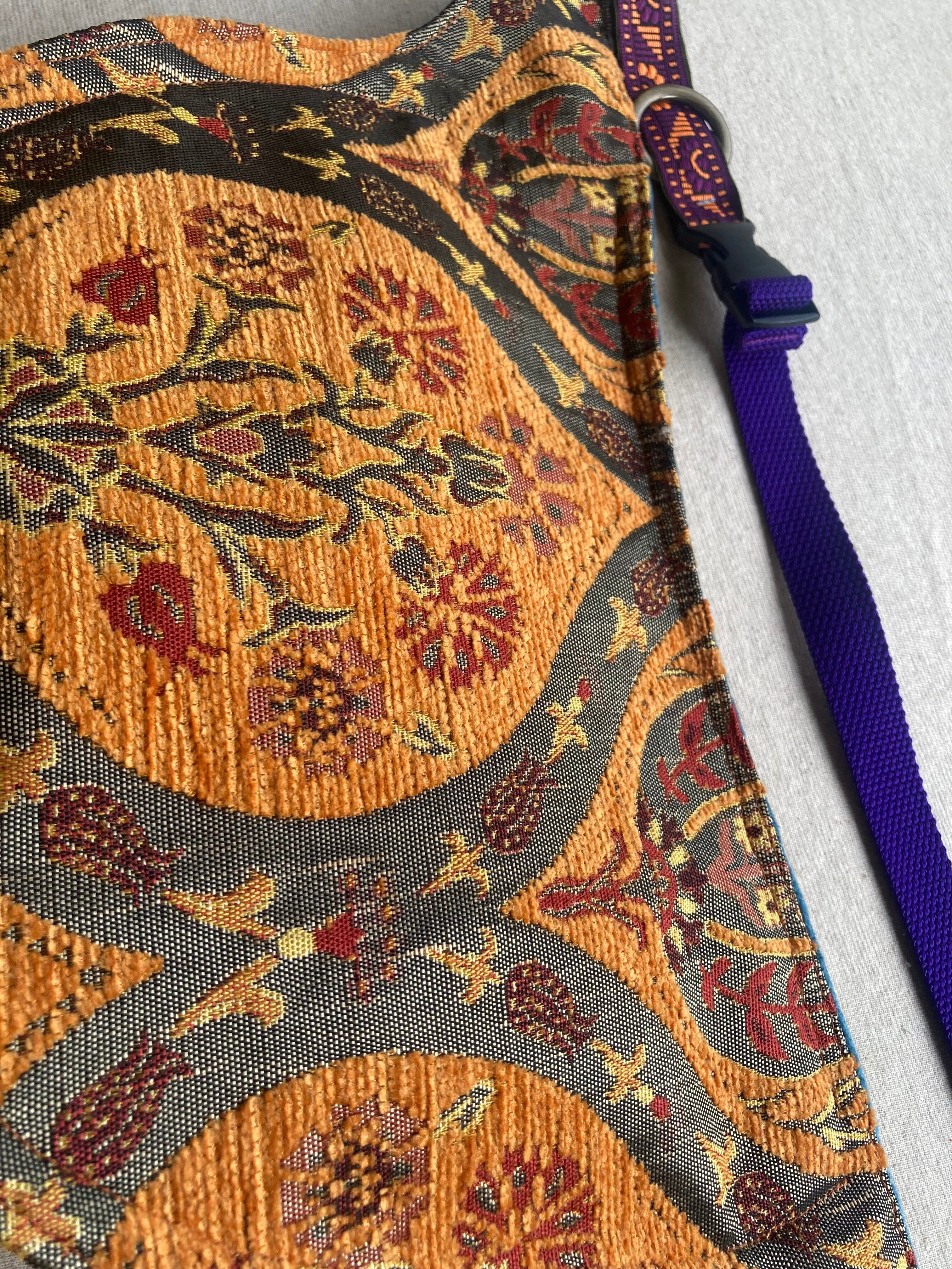 オリジナルデザインのウェストバッグ型ショルダーです。モロッコの生地をメインにmixしてオンリーワンに仕上げていますので、生地の上質な質感やカラフルな色合わせなどを楽しんでいただけたら嬉しいです。
