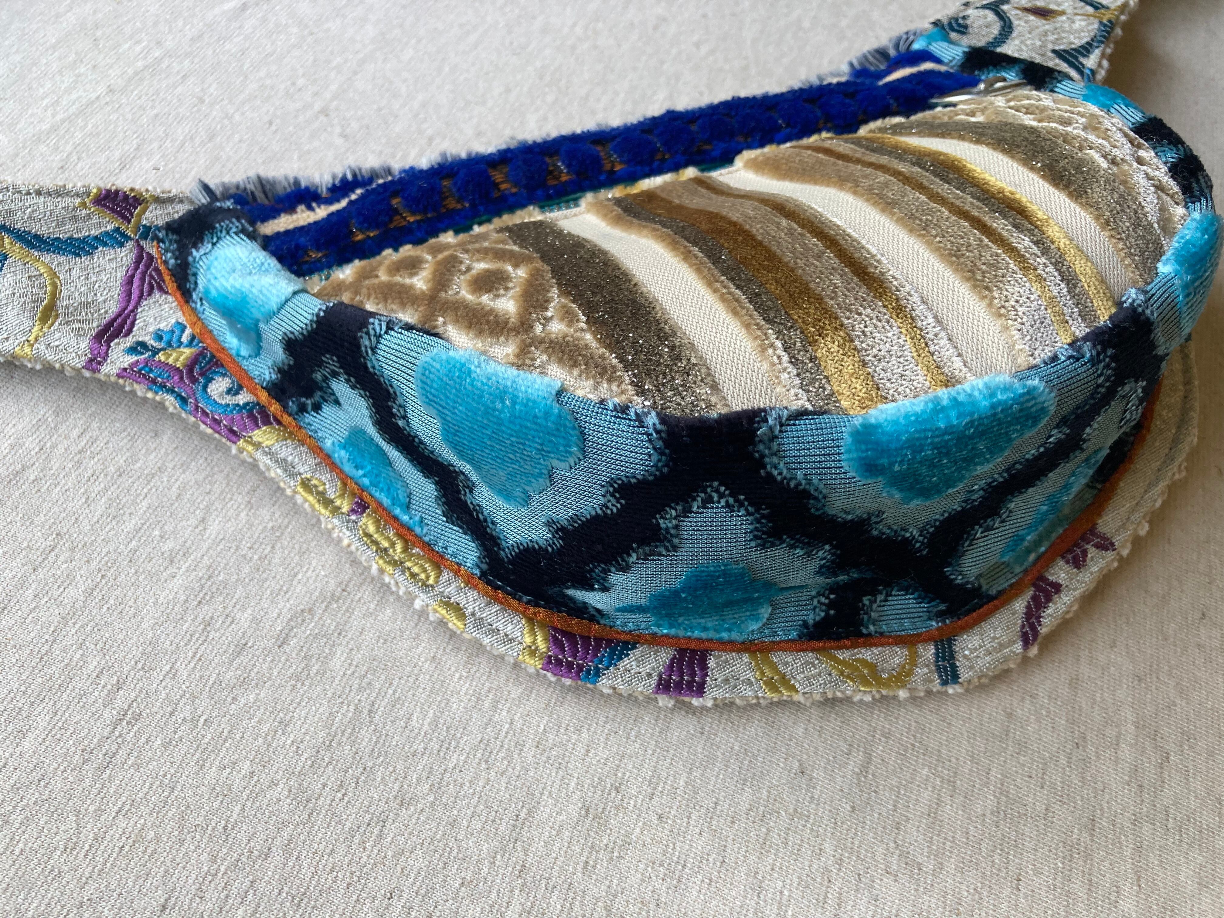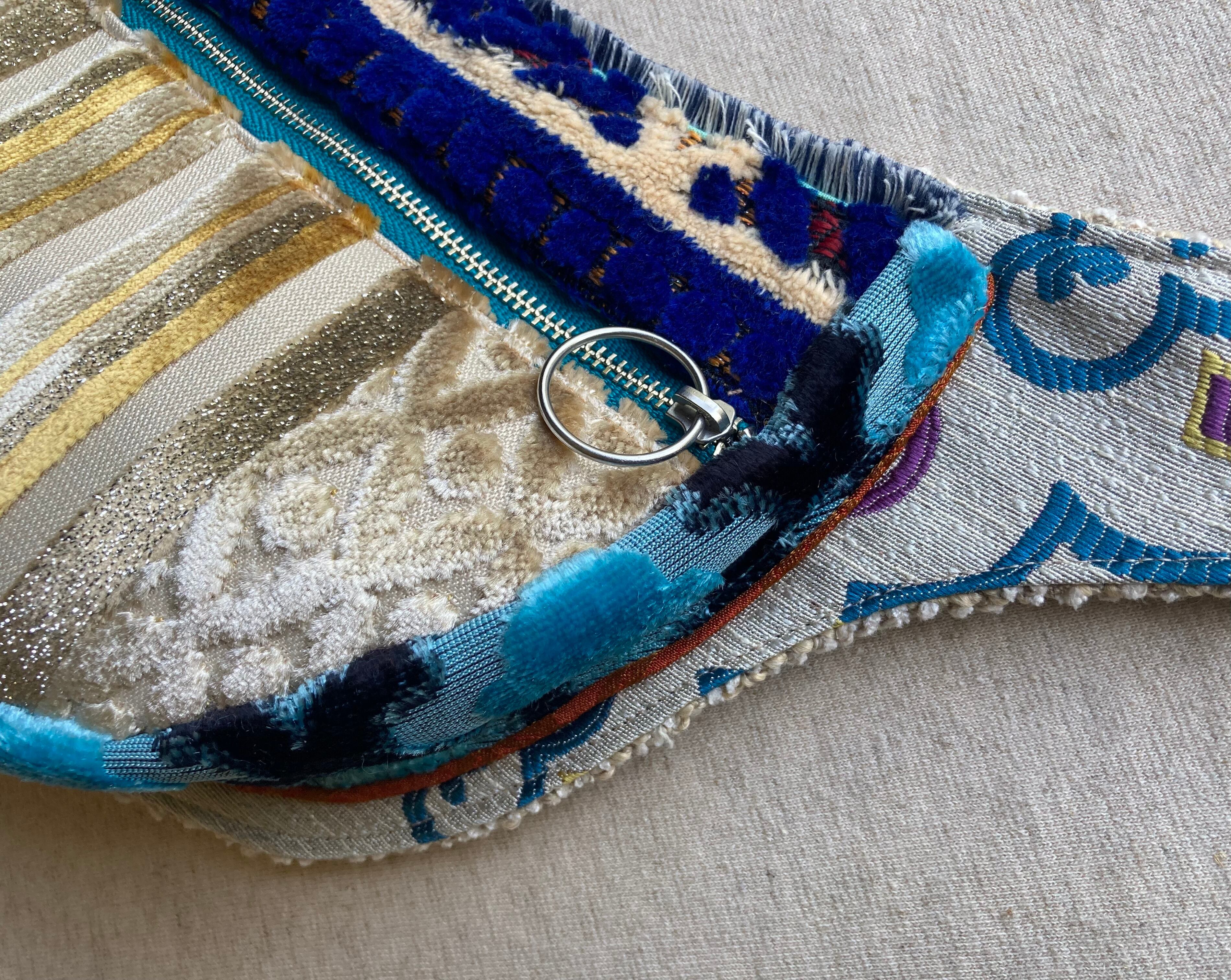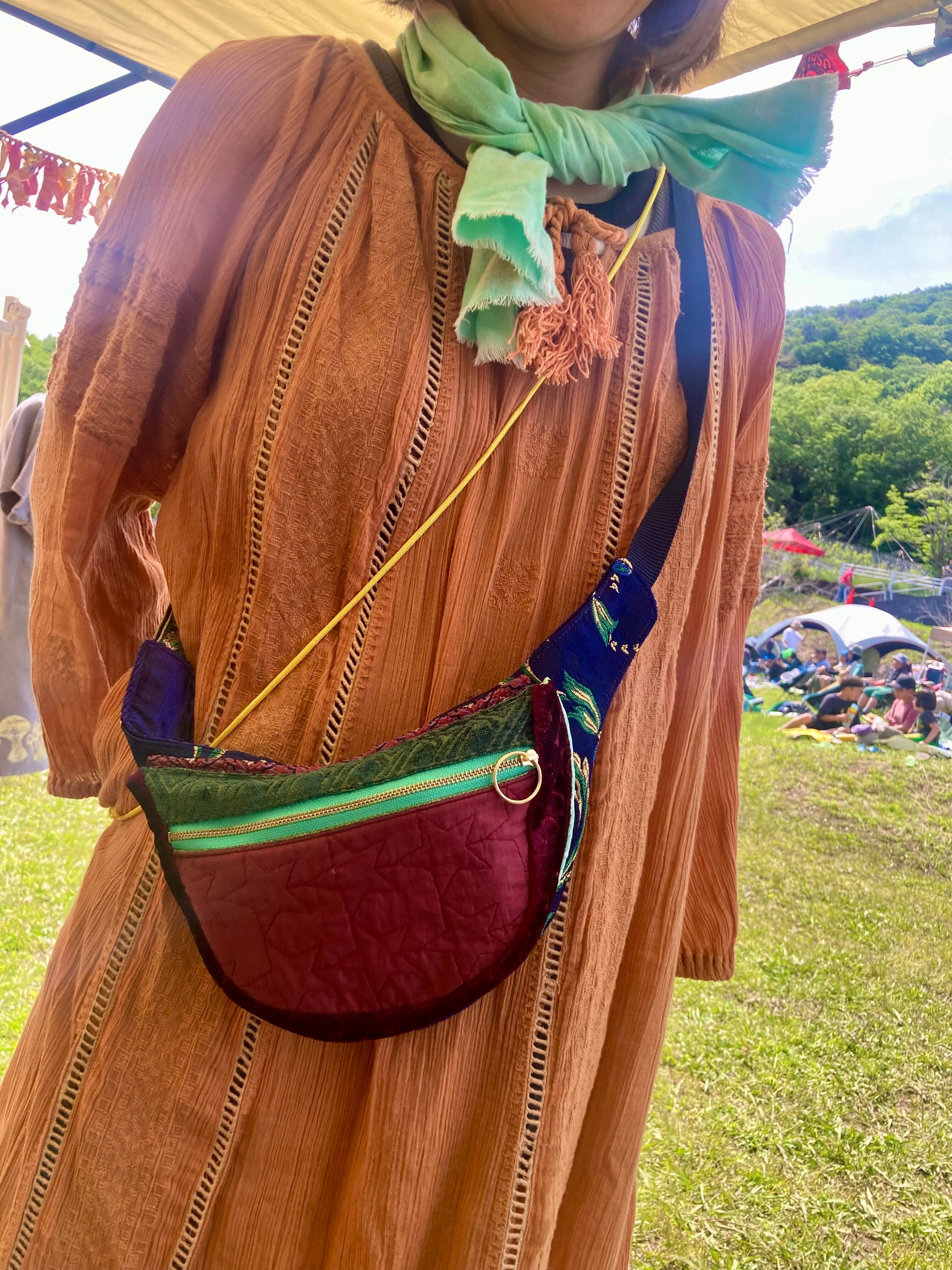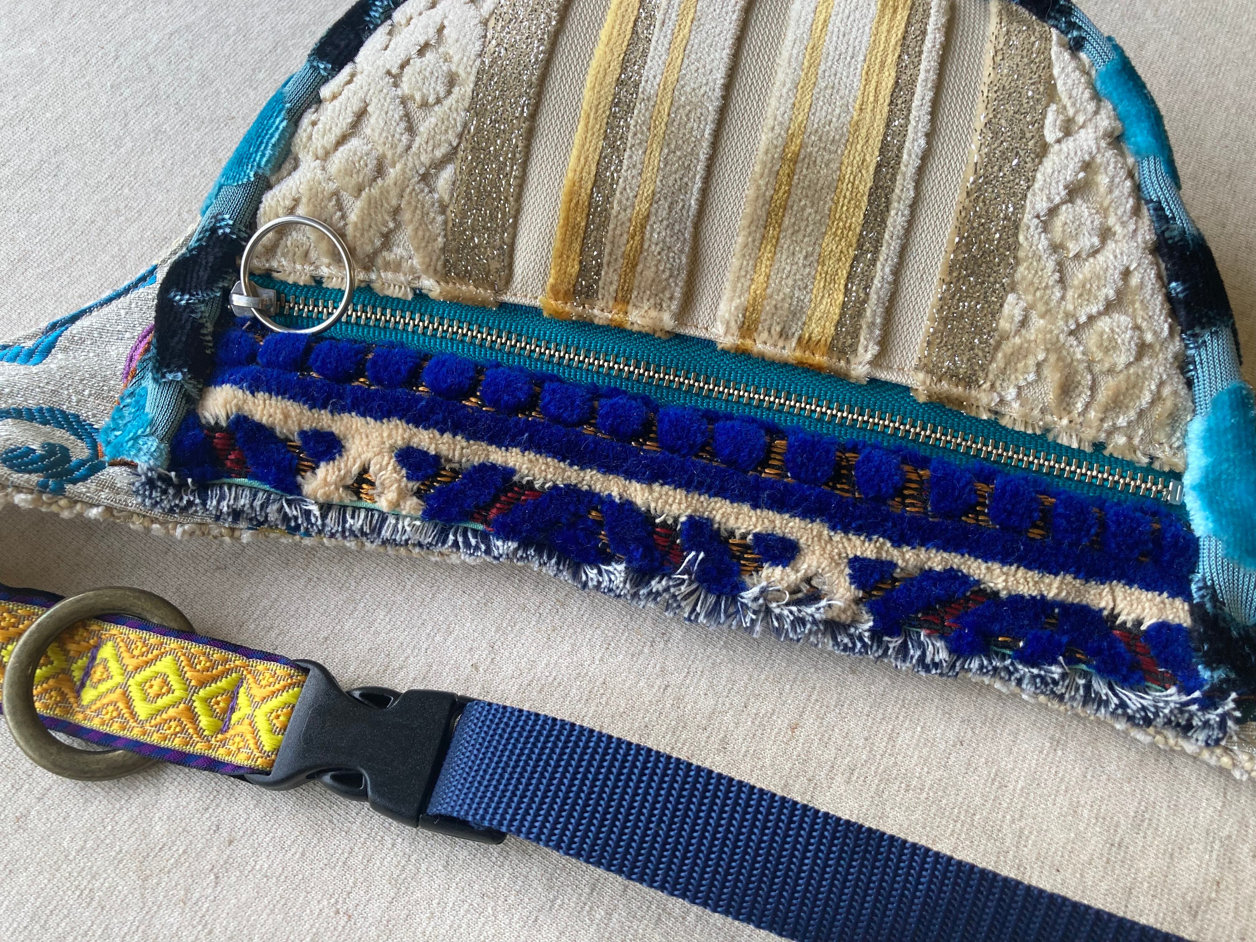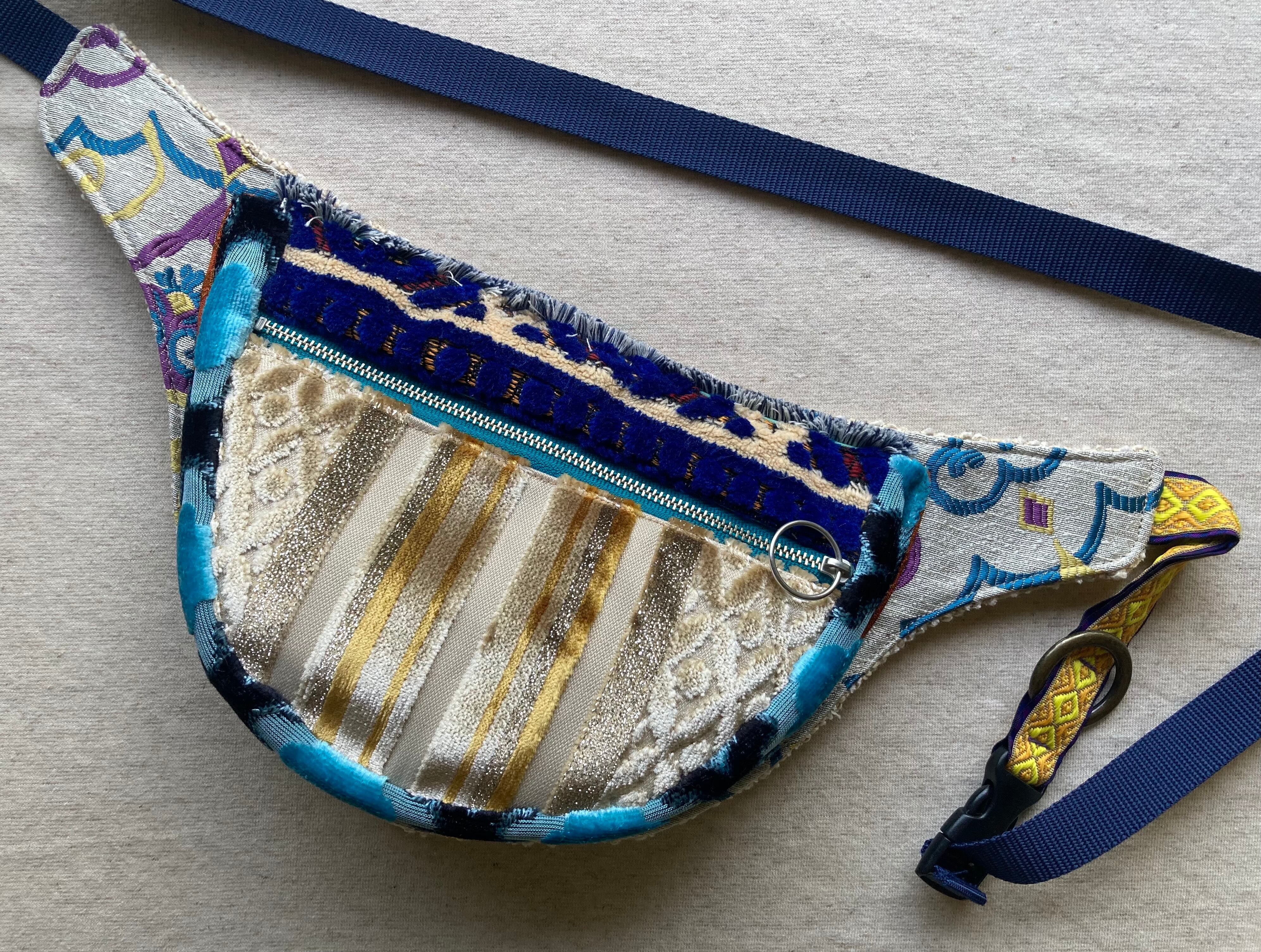オリジナルデザインのウェストバッグ型ショルダーです。モロッコの生地をメインにmixしてオンリーワンに仕上げていますので、生地の上質な質感やカラフルな色合わせなどを楽しんでいただけたら嬉しいです。