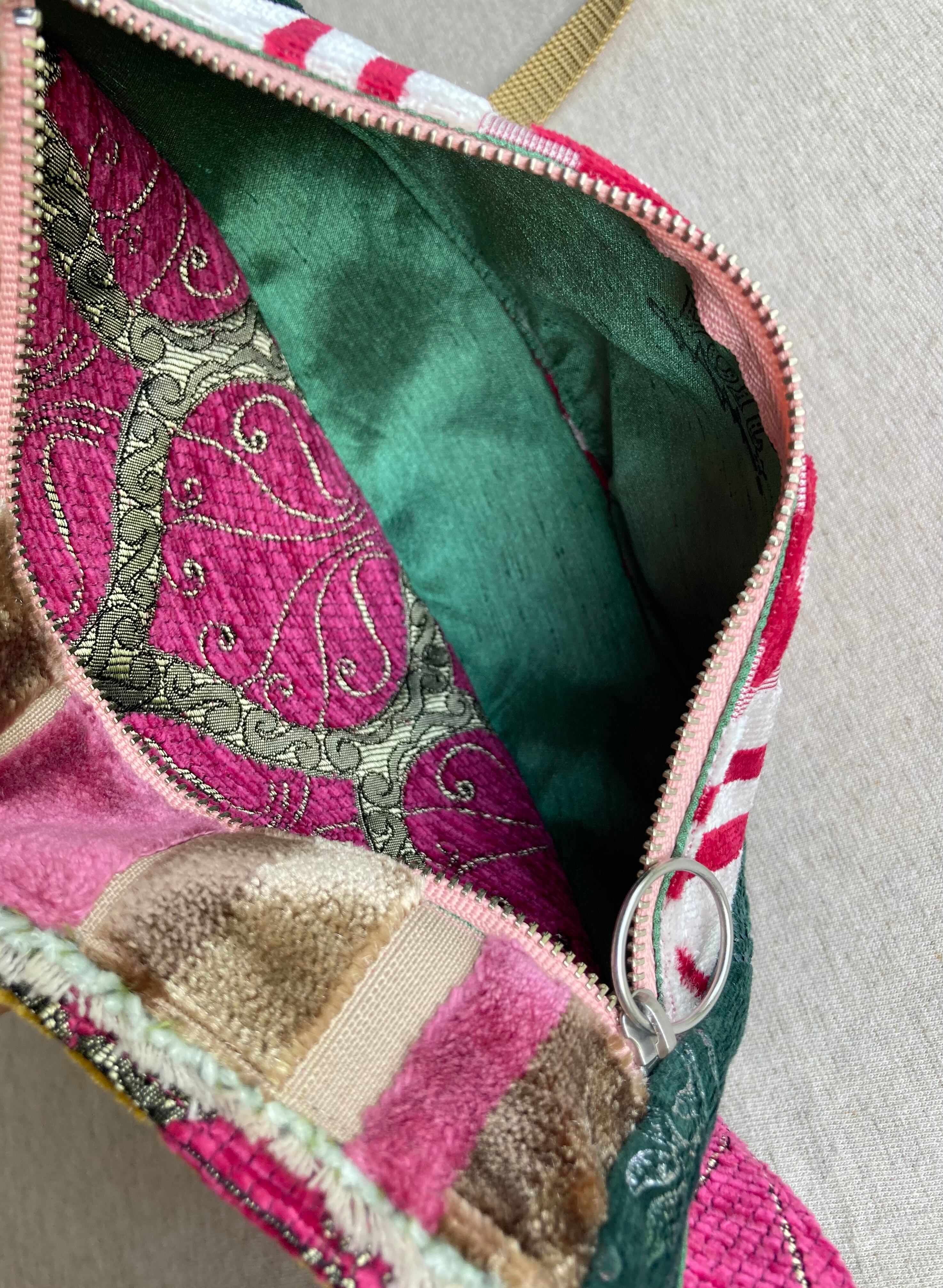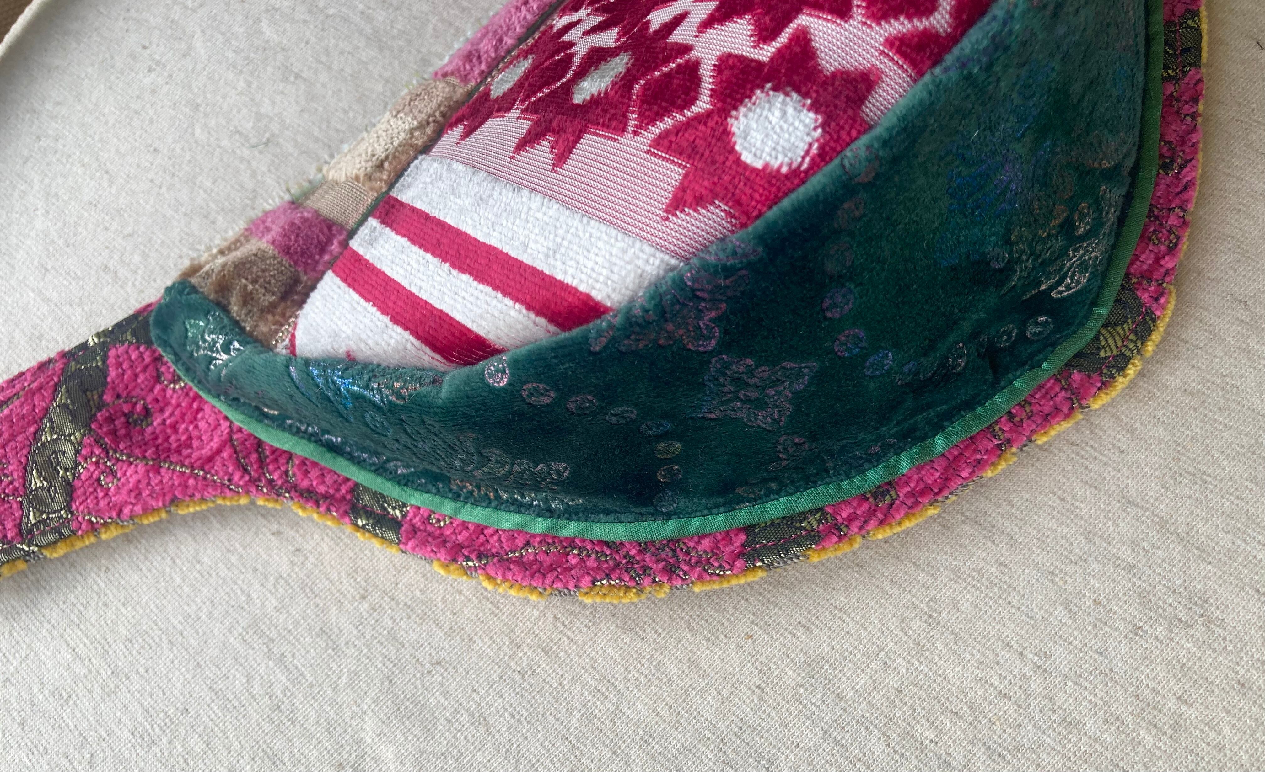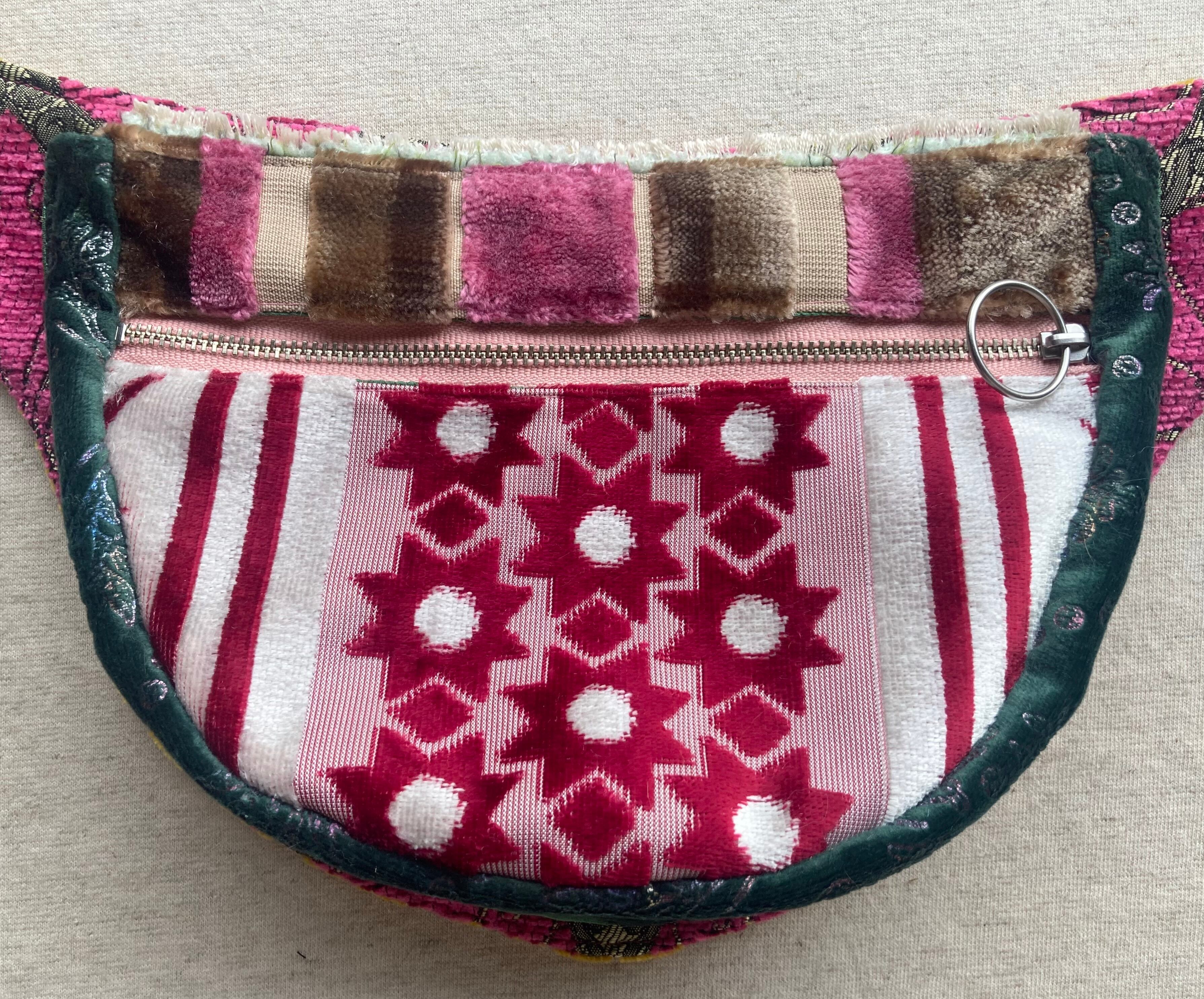 オリジナルデザインのウェストバッグ型ショルダーです。モロッコの生地をメインにmixしてオンリーワンに仕上げていますので、生地の上質な質感やカラフルな色合わせなどを楽しんでいただけたら嬉しいです。