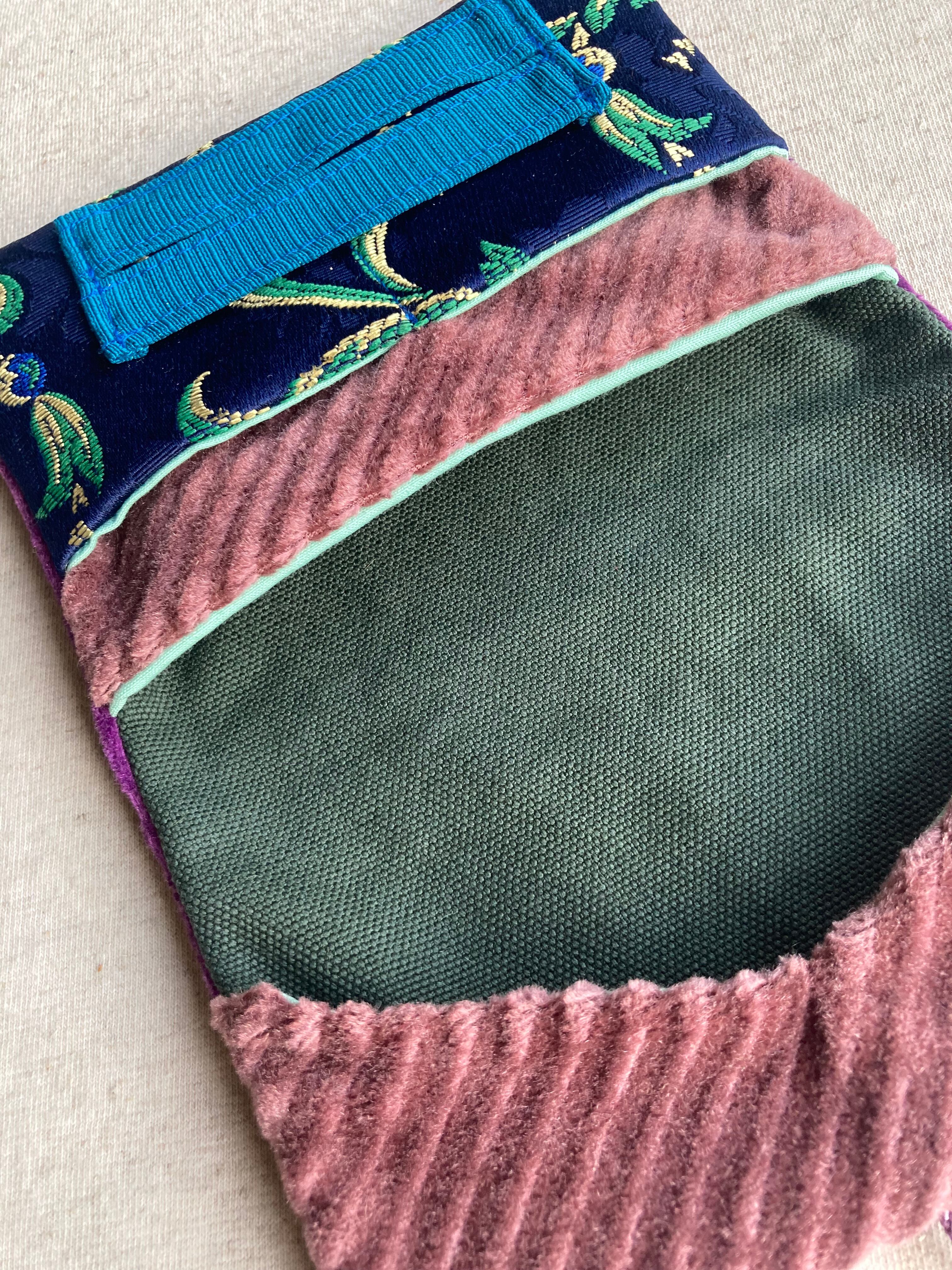 なめらかなモロッコの生地やジャガード織り、エコファー、ナチュラルなhempや麻素材などを多様して見た目も楽しいケースが出来ました。