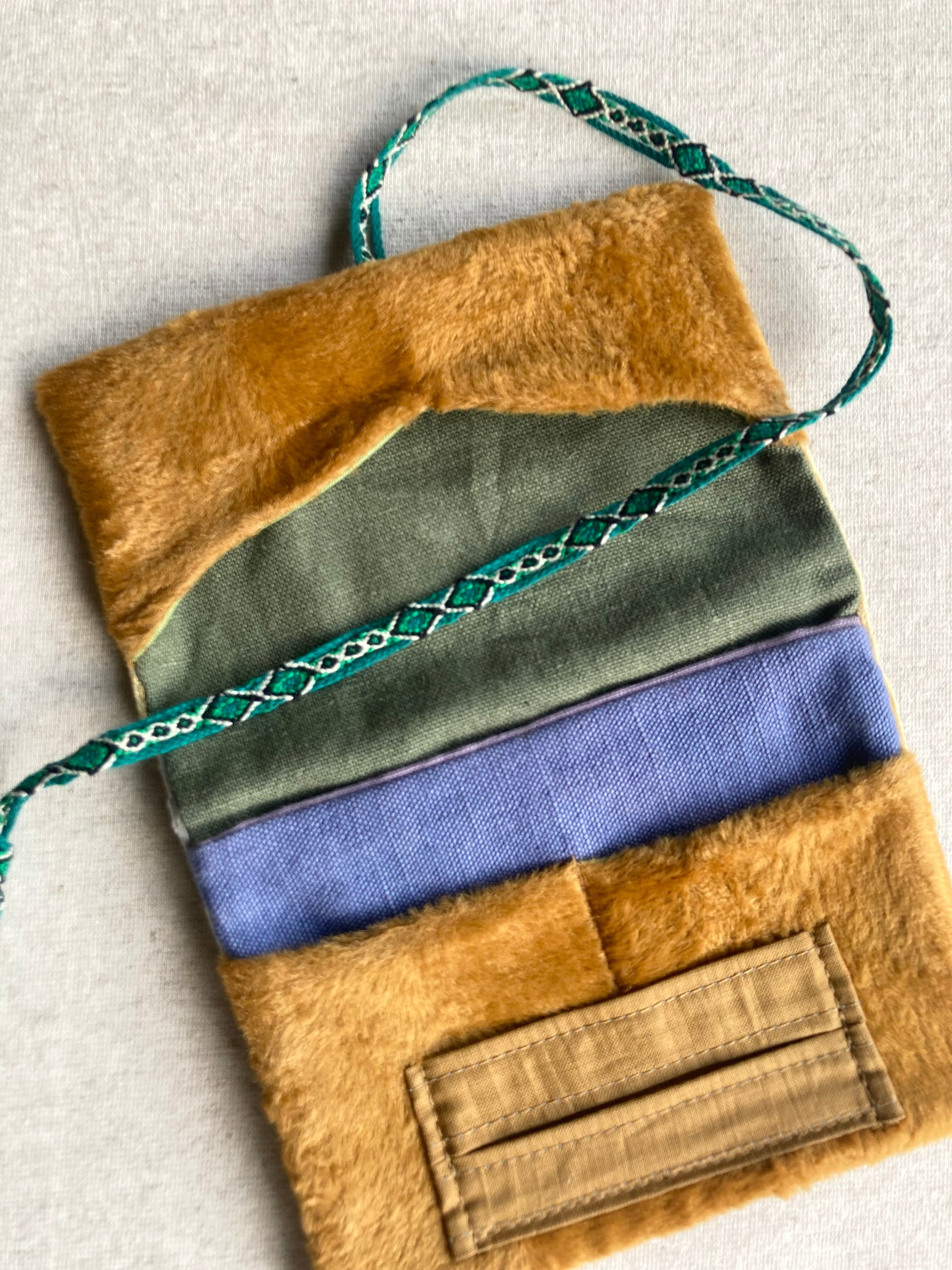 表情豊かな生地たちをmixして作ったシャグポーチ(巻きタバコケース)です。