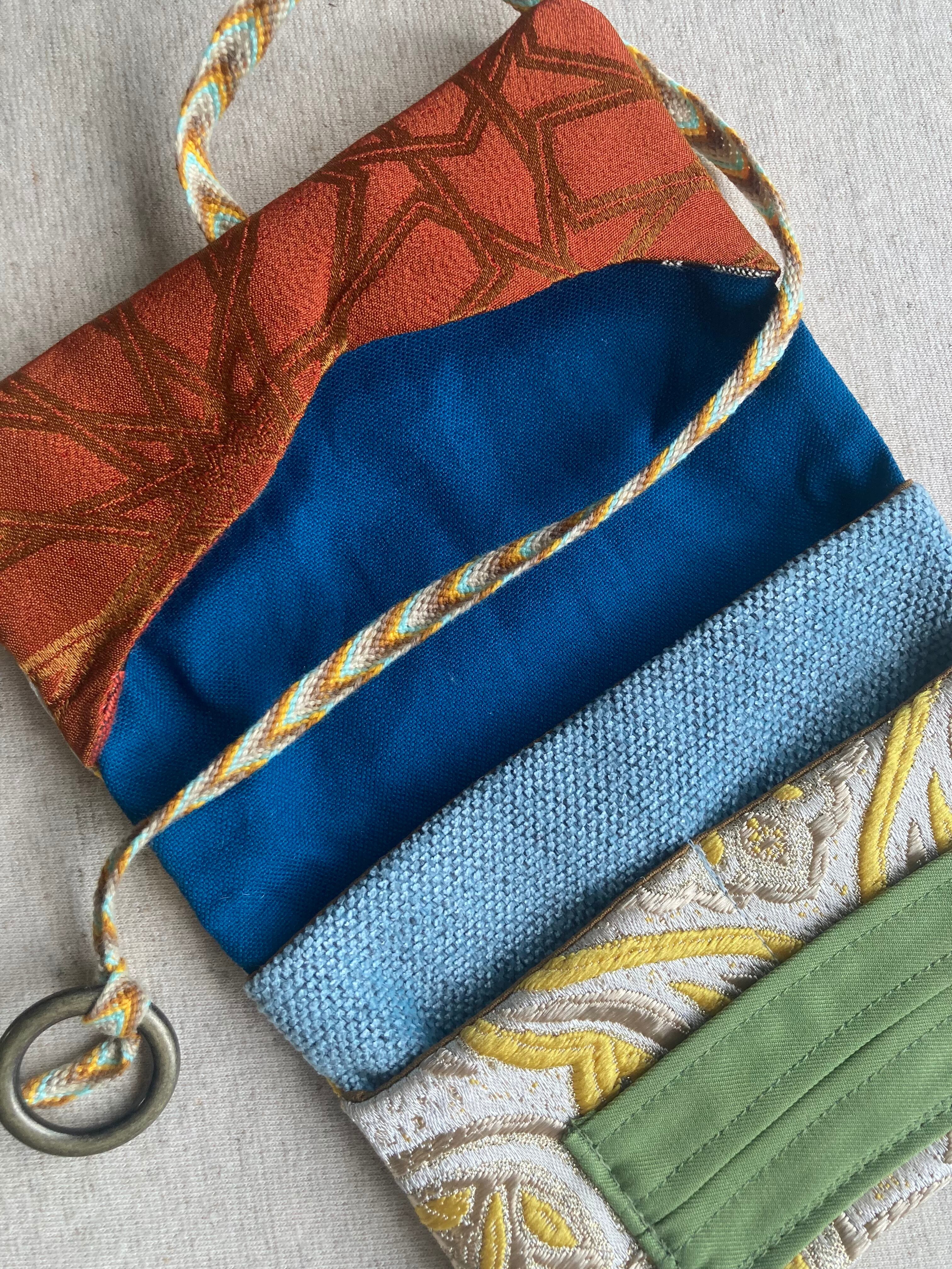 表情豊かな生地たちをmixして作ったシャグポーチ(巻きタバコケース)です。