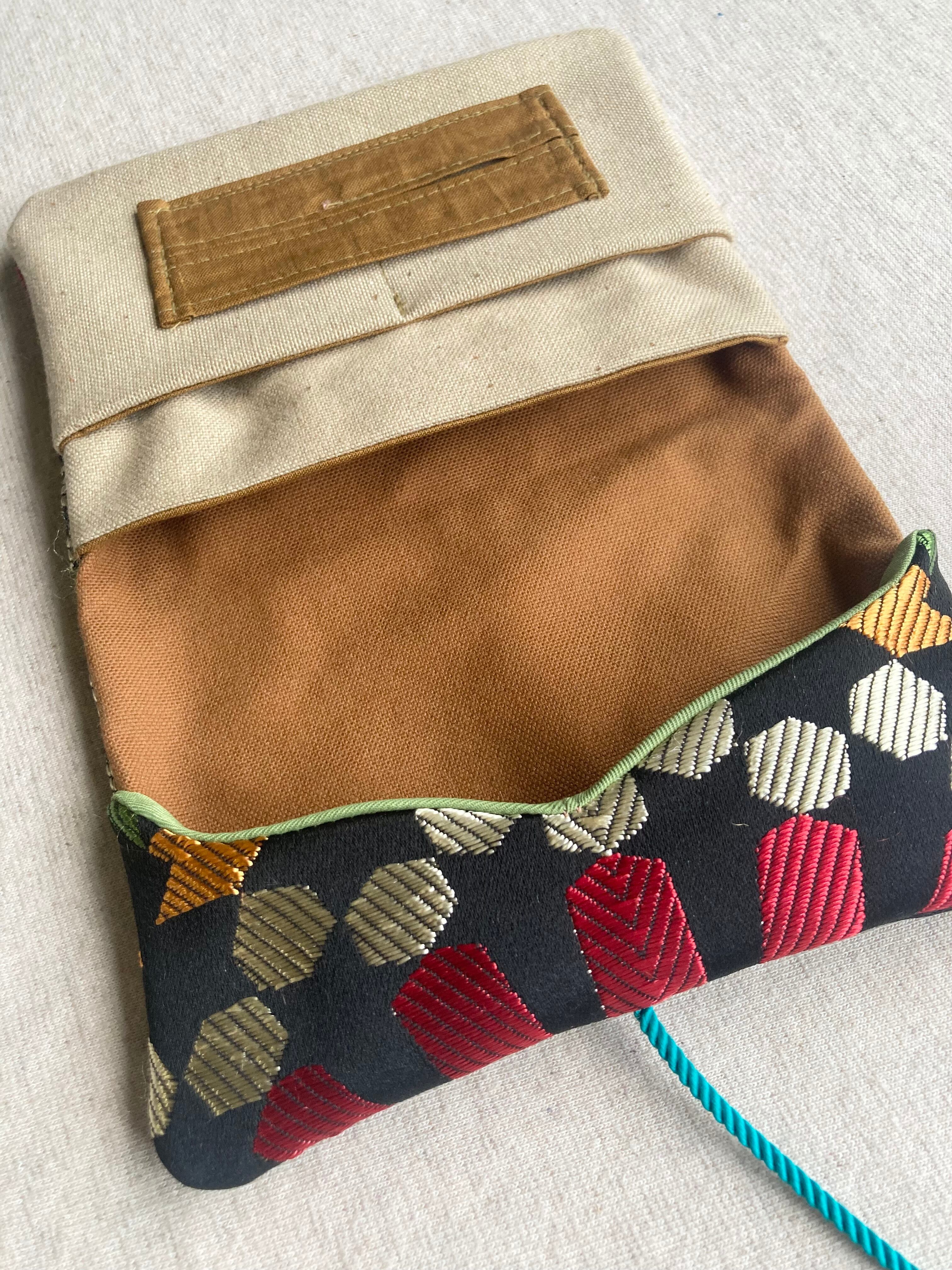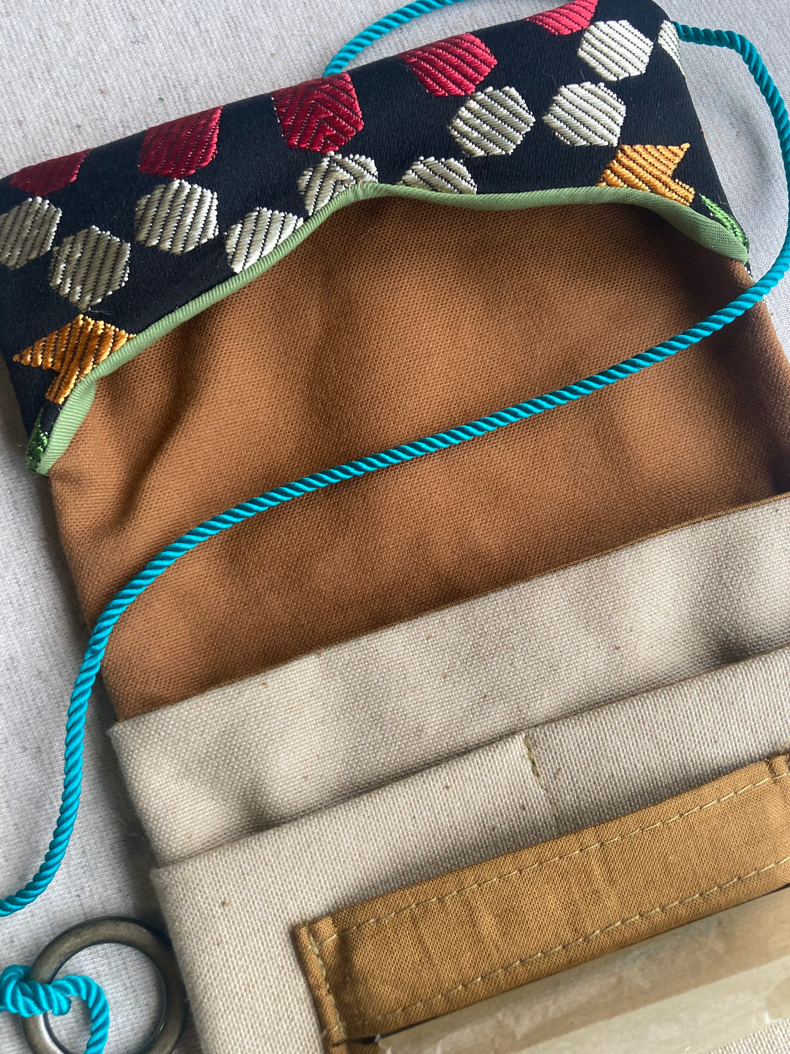 表情豊かな生地たちをmixして作ったシャグポーチ(巻きタバコケース)です。