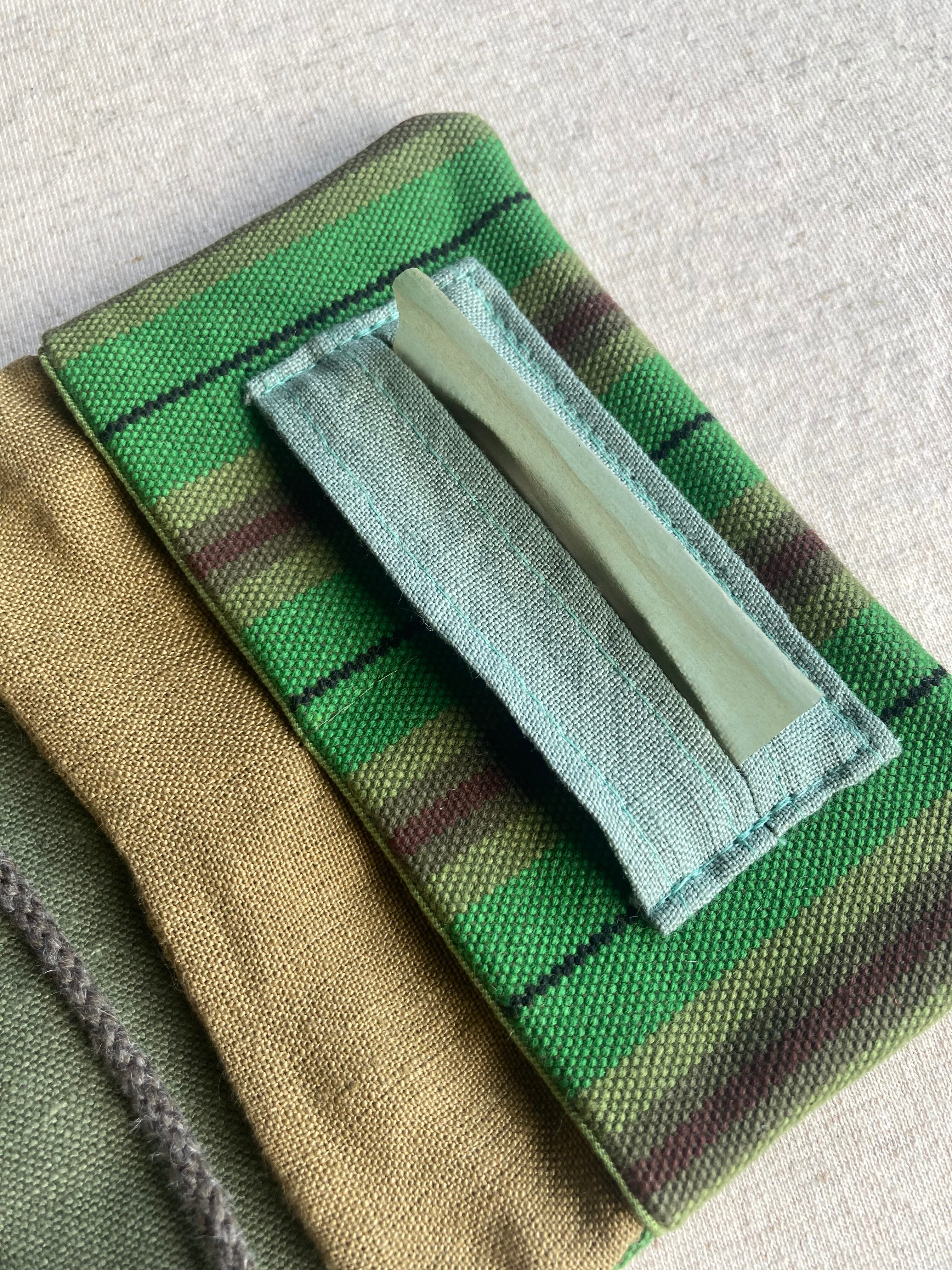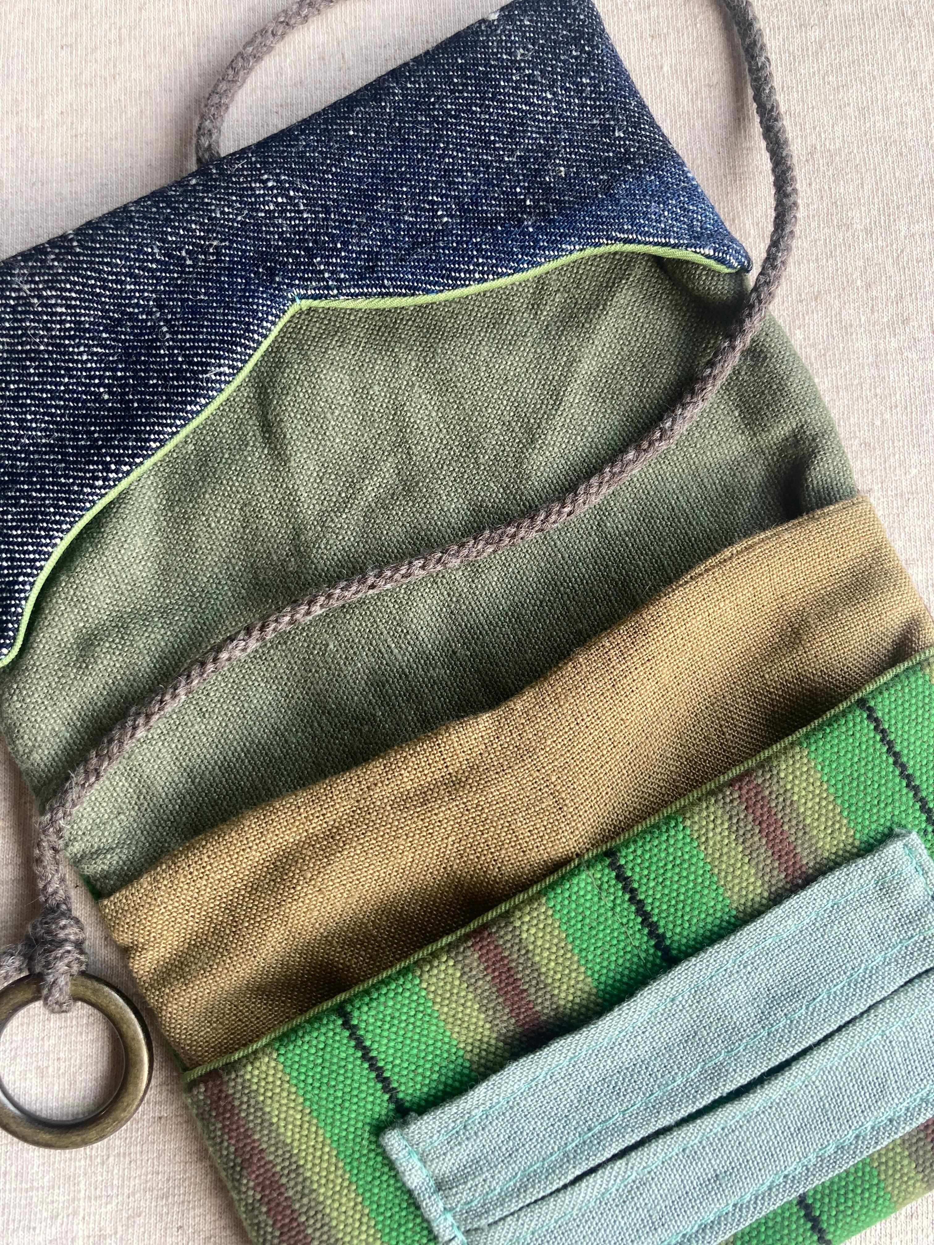 表情豊かな生地たちをmixして作ったシャグポーチ(巻きタバコケース)です。