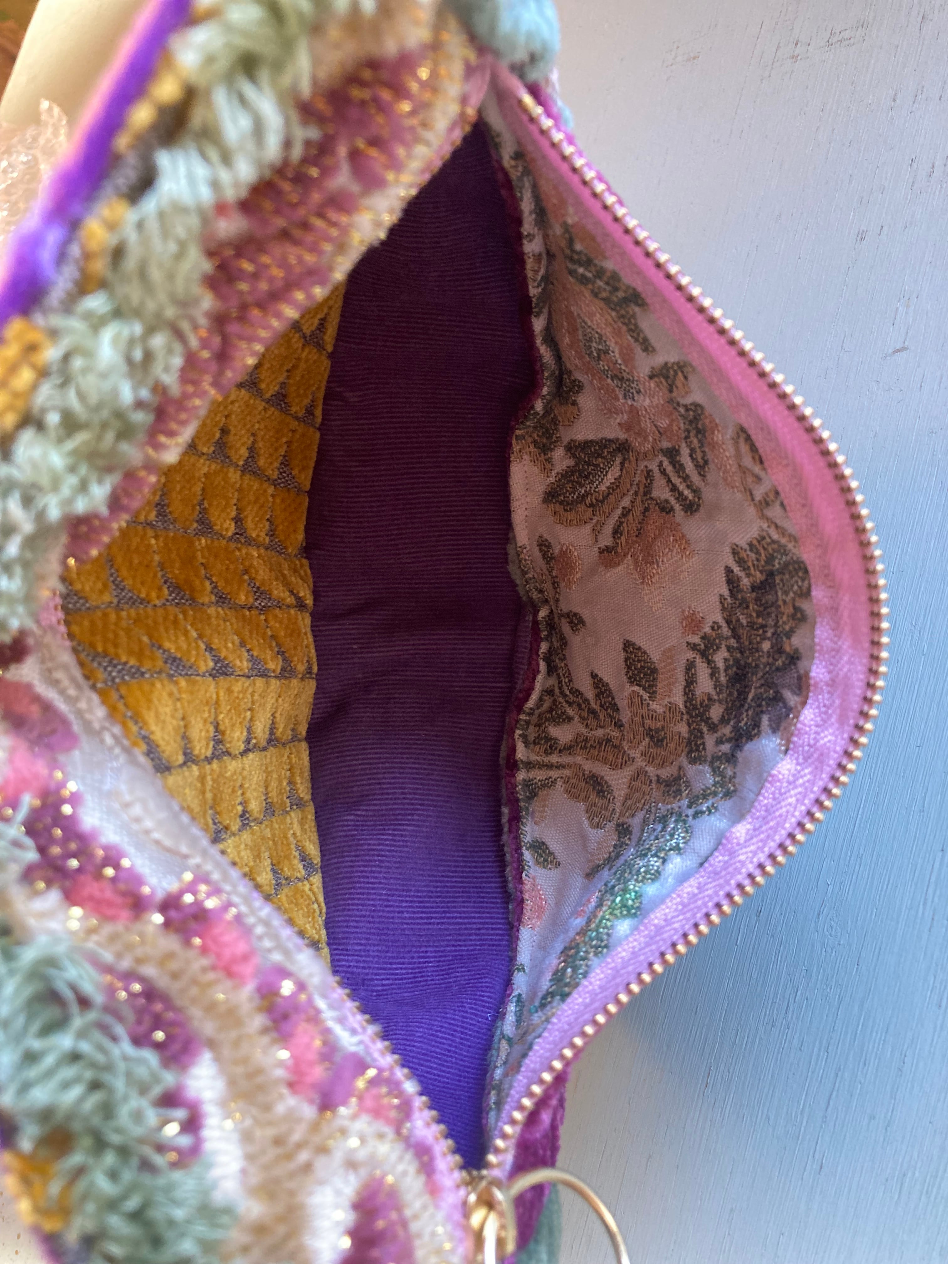 オリジナルデザインのウェストバッグ型ショルダーです。モロッコの生地をメインにmixしてオンリーワンに仕上げていますので、生地の上質な質感やカラフルな色合わせなどを楽しんでいただけたら嬉しいです。