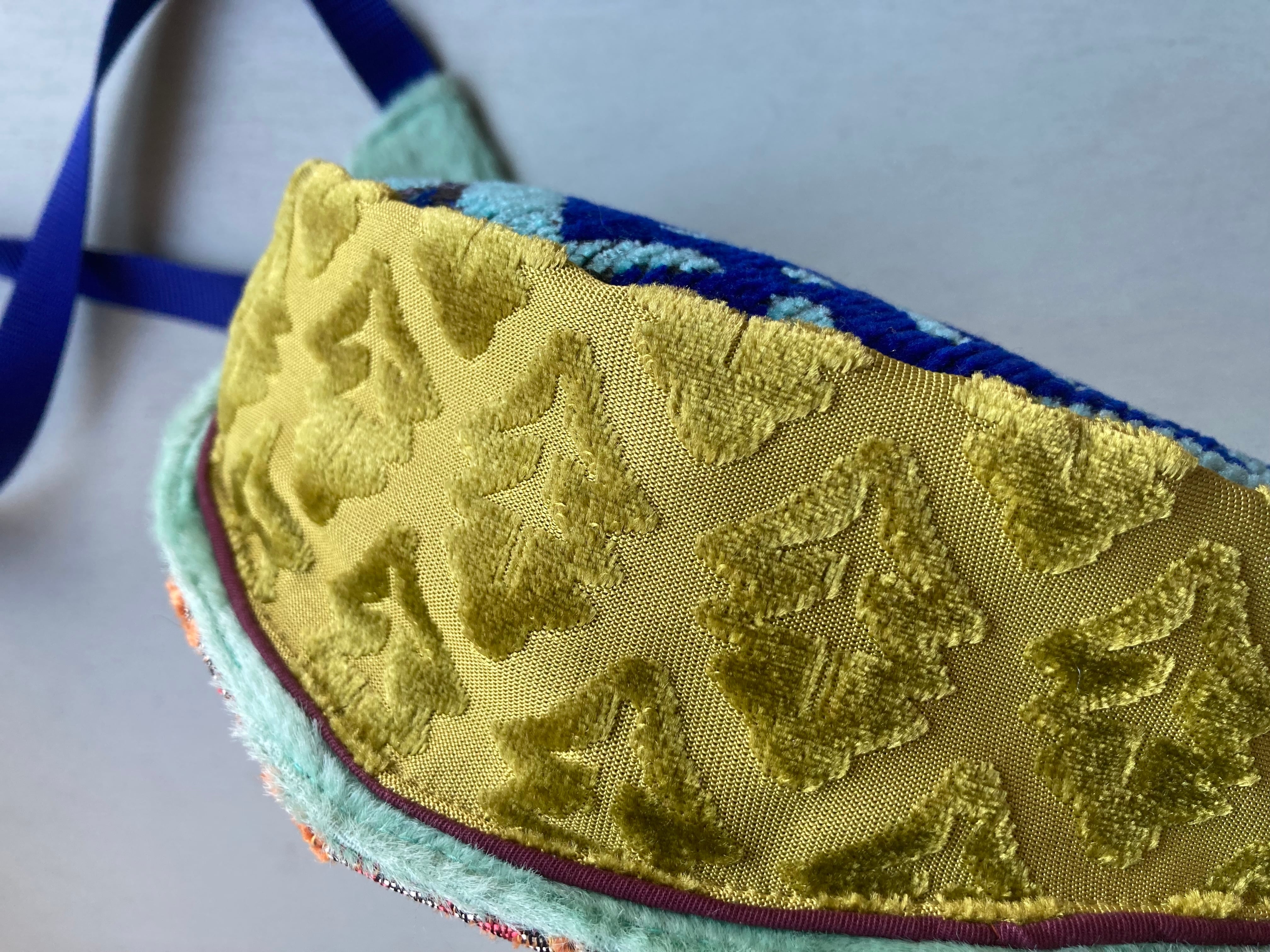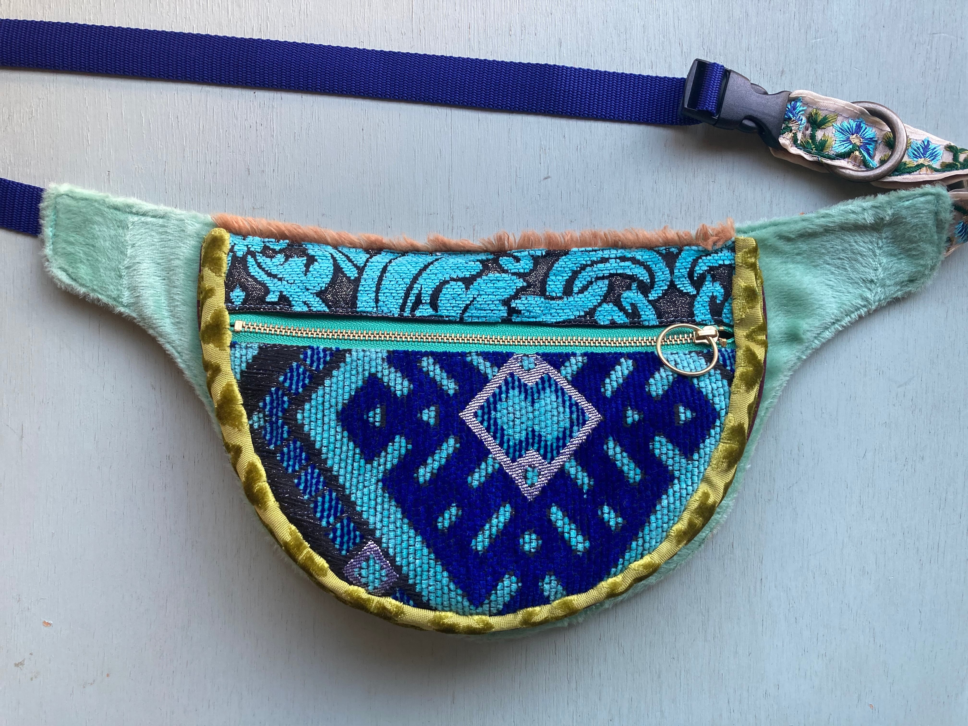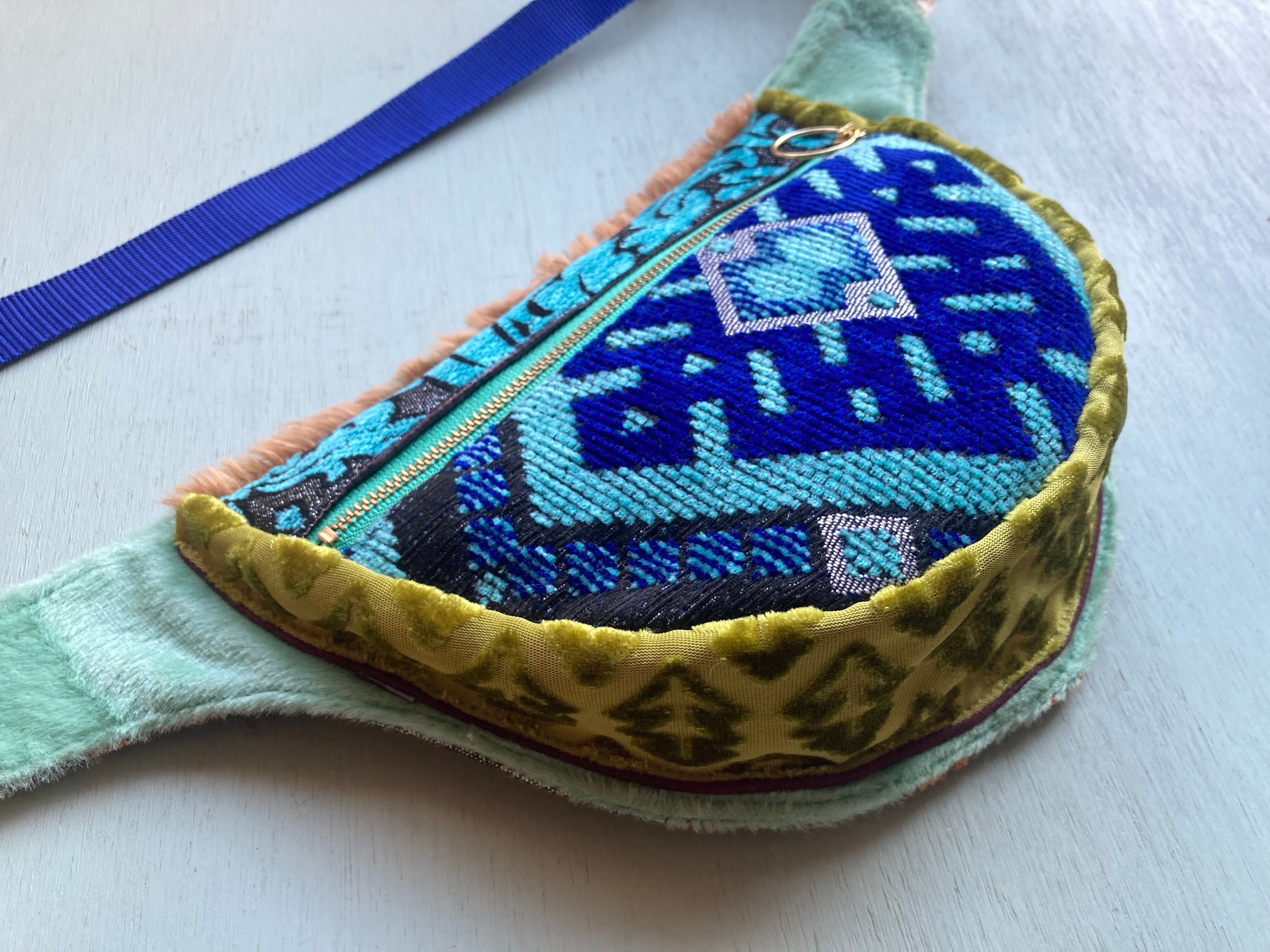 オリジナルデザインのウェストバッグ型ショルダーです。モロッコの生地をメインにmixしてオンリーワンに仕上げていますので、生地の上質な質感やカラフルな色合わせなどを楽しんでいただけたら嬉しいです。