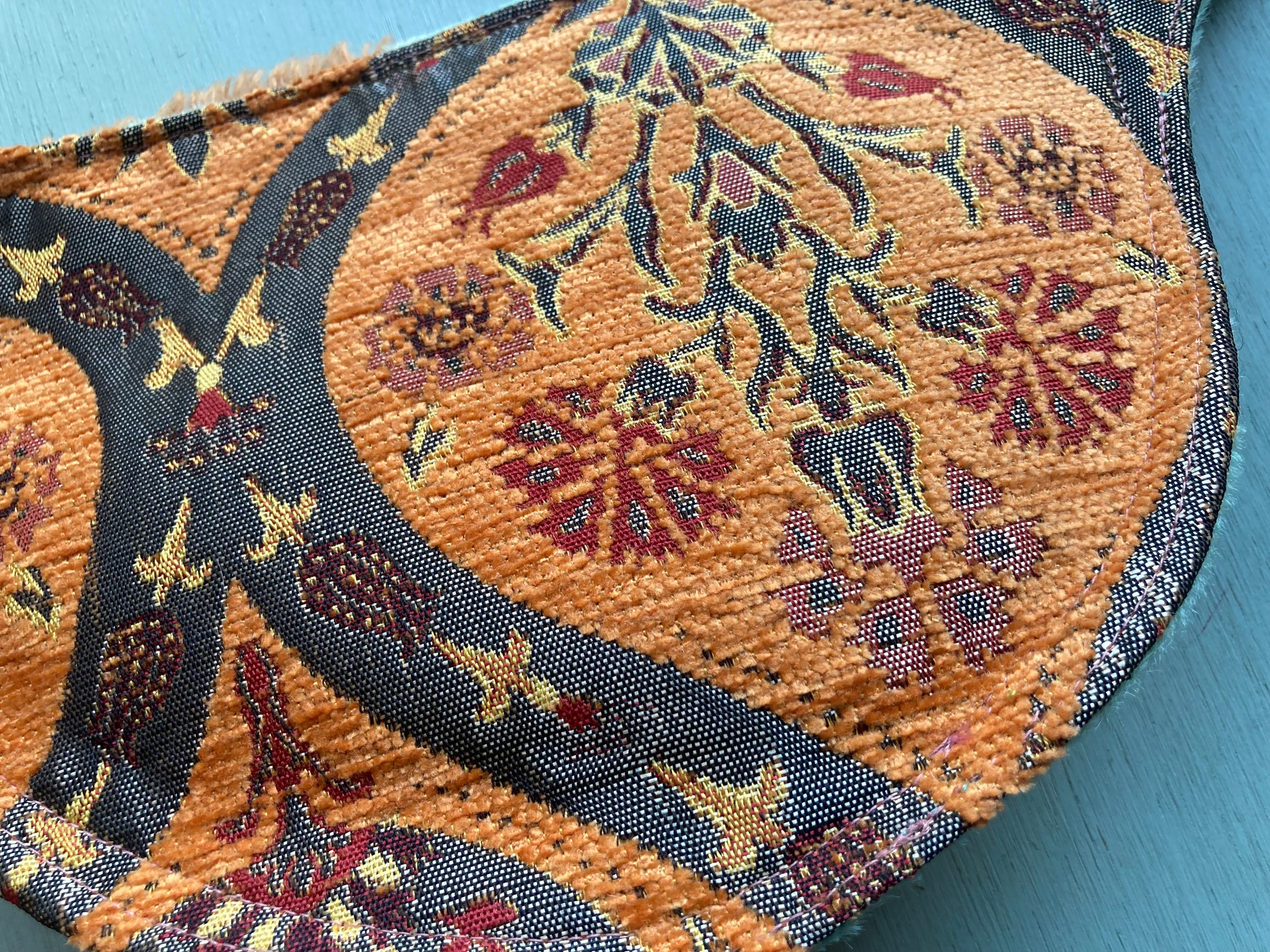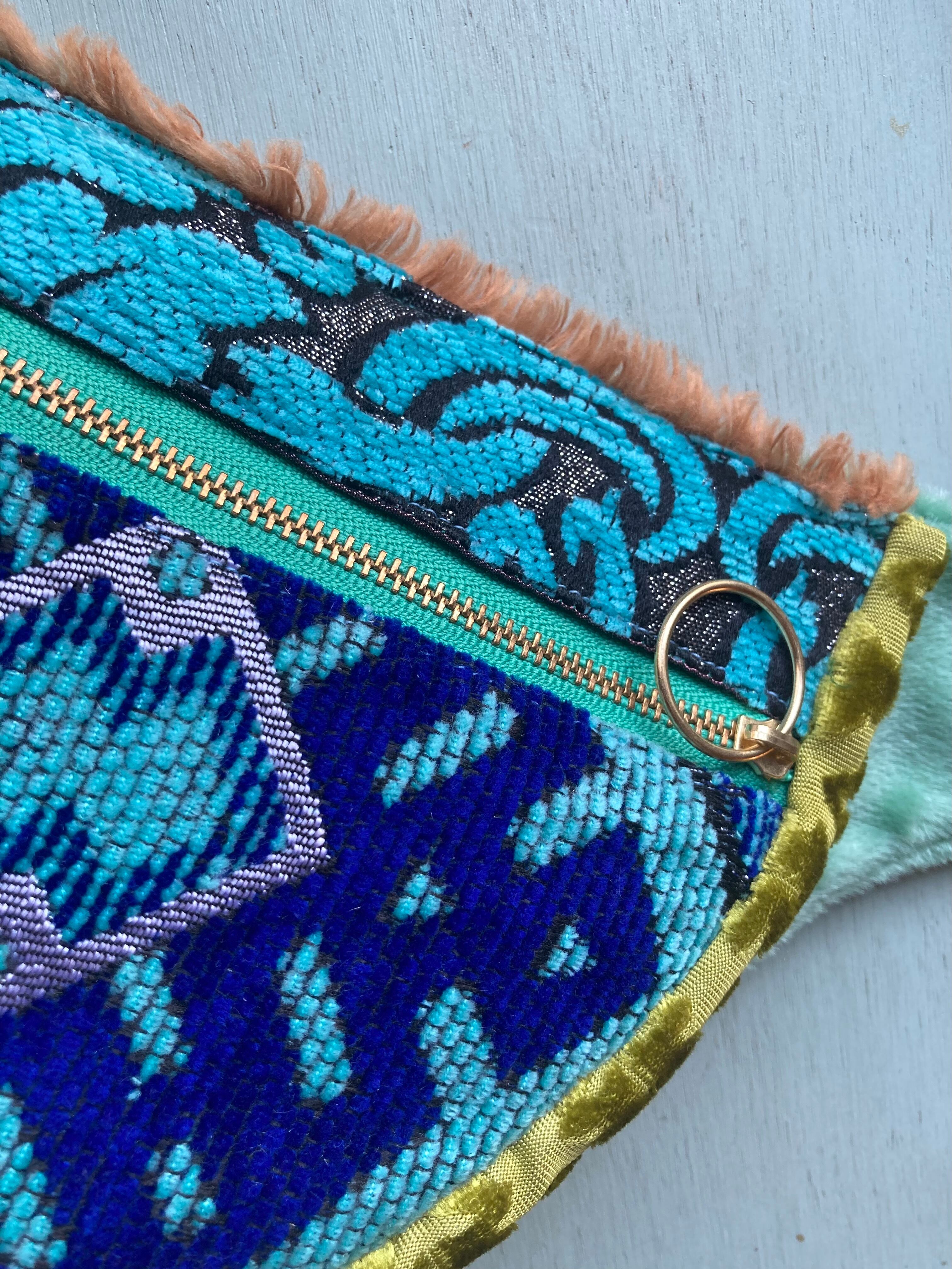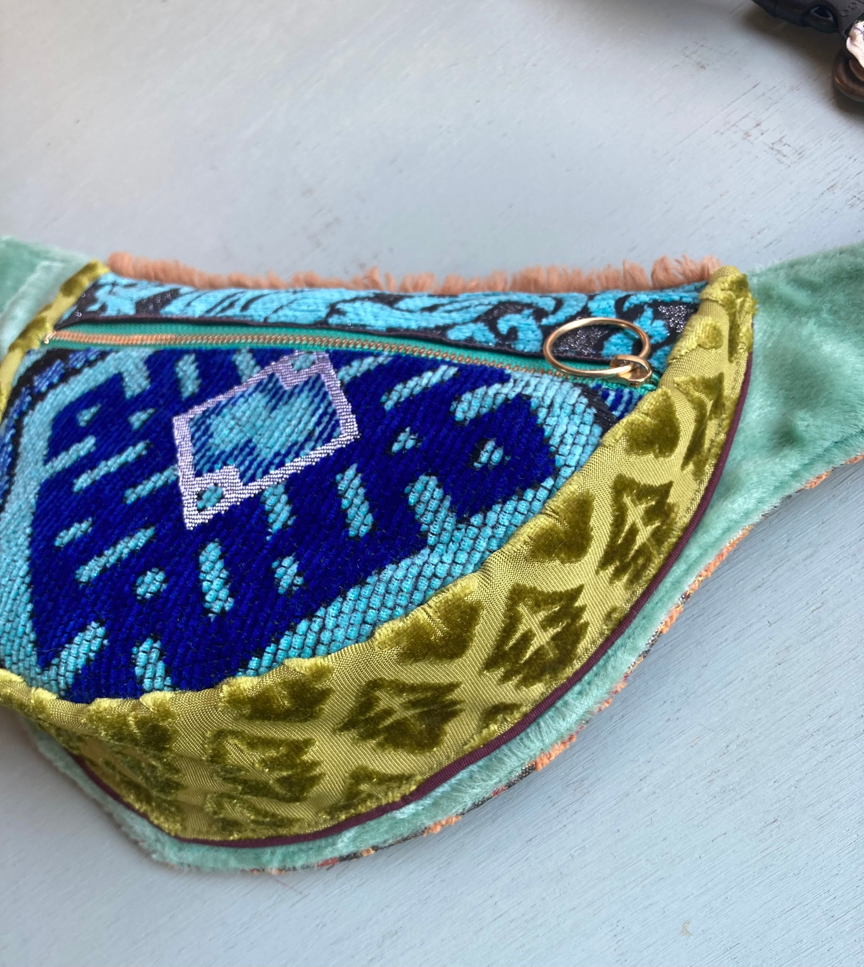 オリジナルデザインのウェストバッグ型ショルダーです。モロッコの生地をメインにmixしてオンリーワンに仕上げていますので、生地の上質な質感やカラフルな色合わせなどを楽しんでいただけたら嬉しいです。