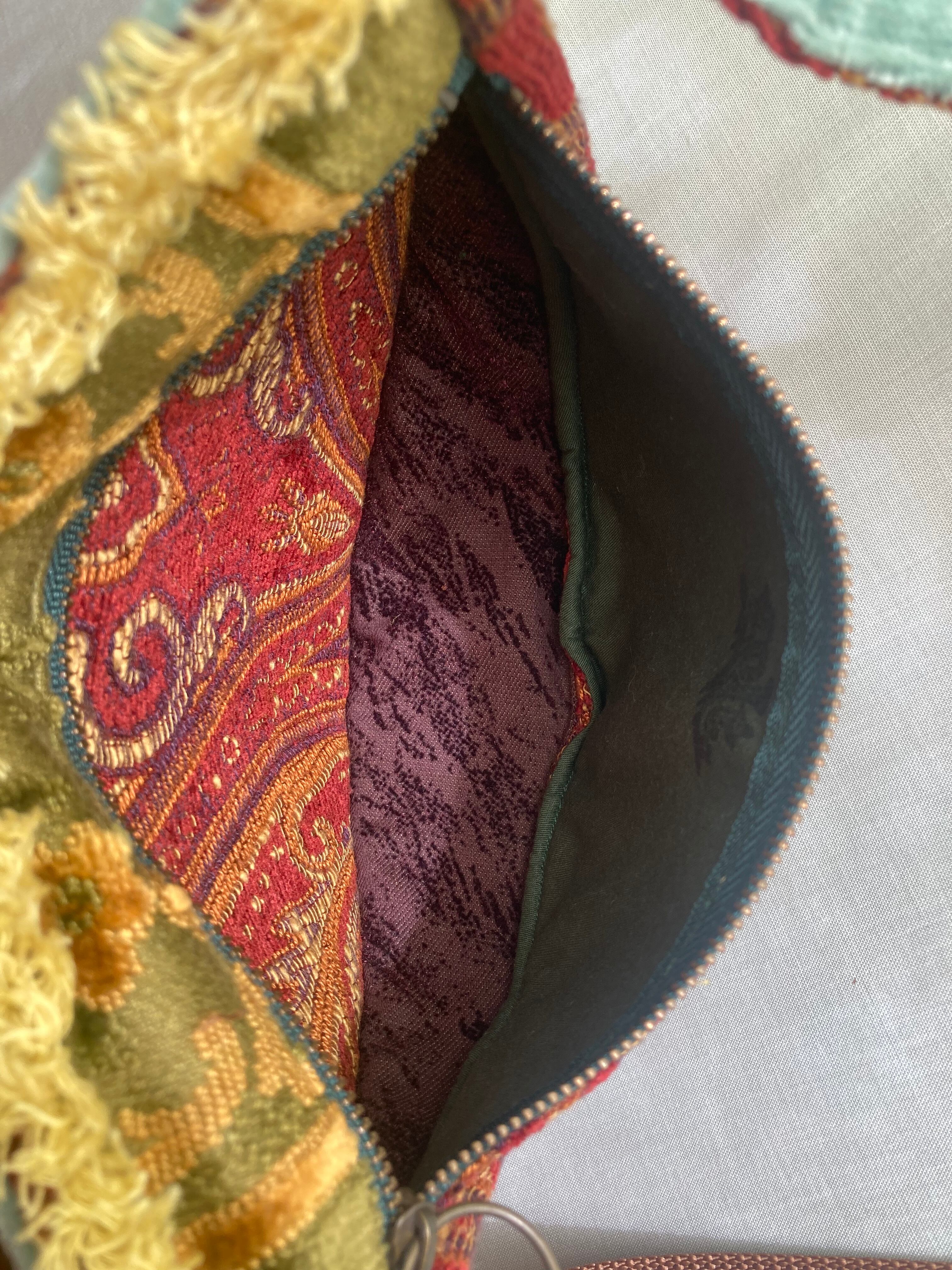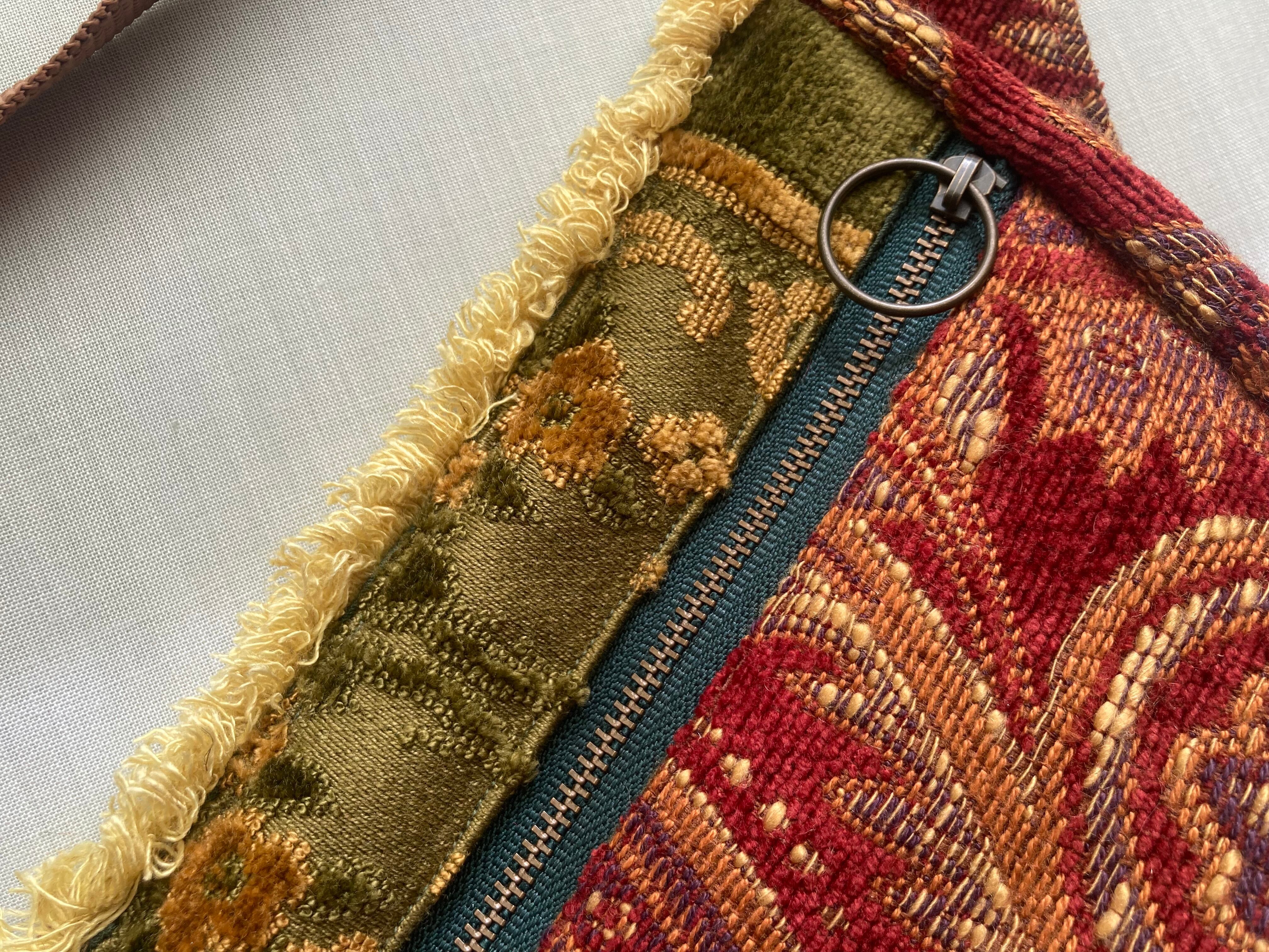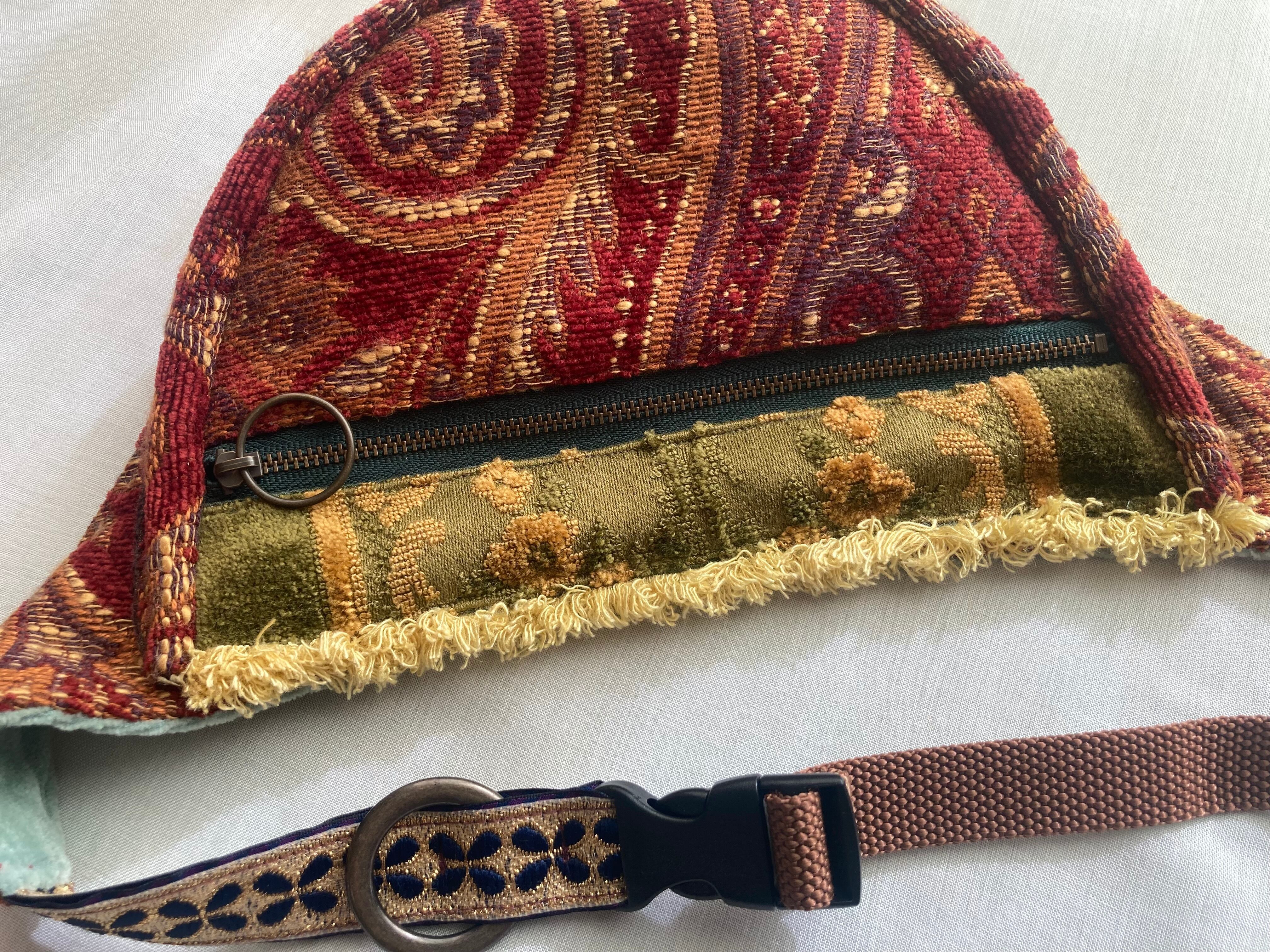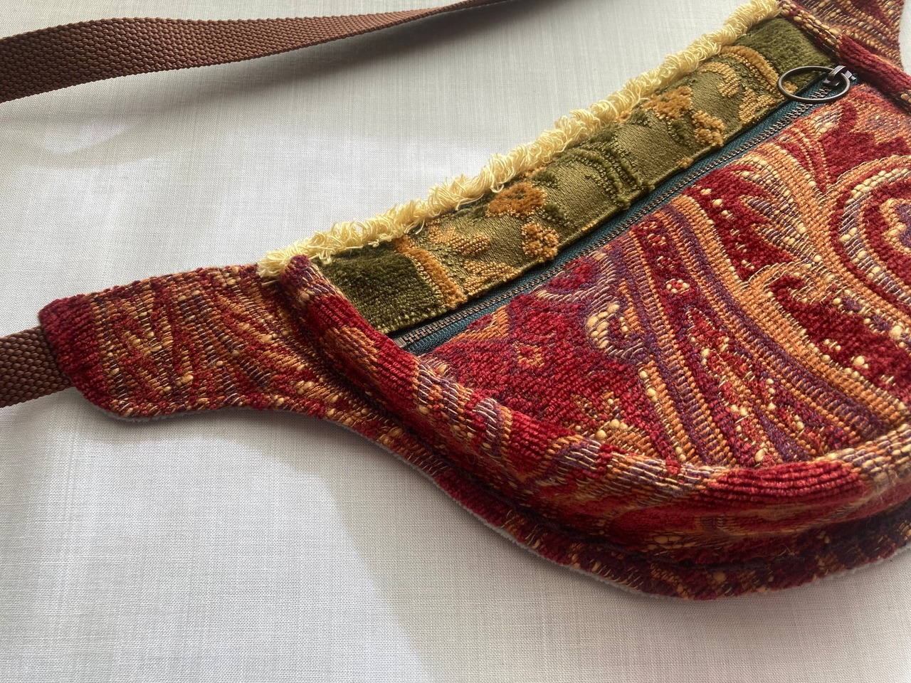 オリジナルデザインのウェストバッグ型ショルダーです。モロッコの生地をメインにmixしてオンリーワンに仕上げています。生地の上質な質感やカラフルな色合わせなどを楽しんでいただけたら嬉しいです。