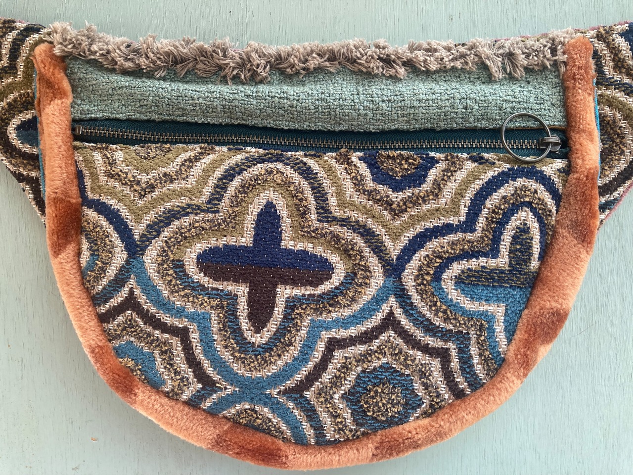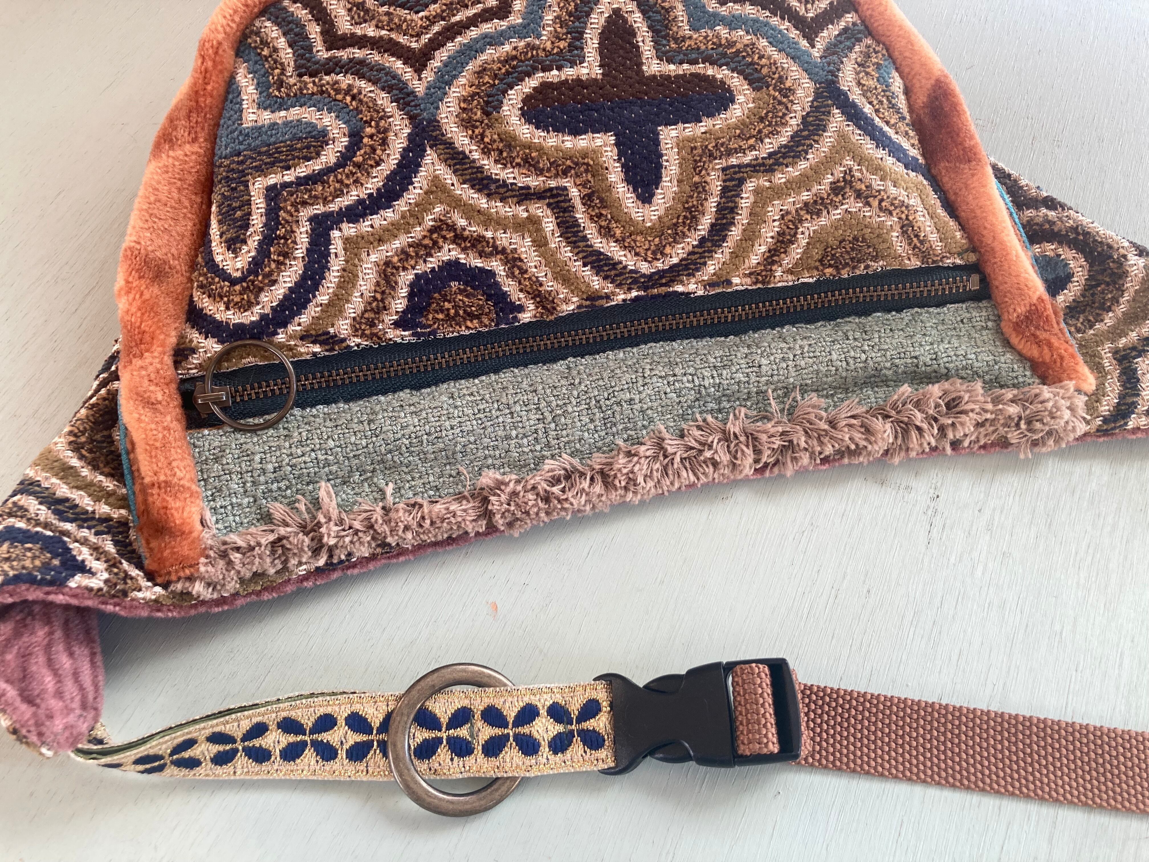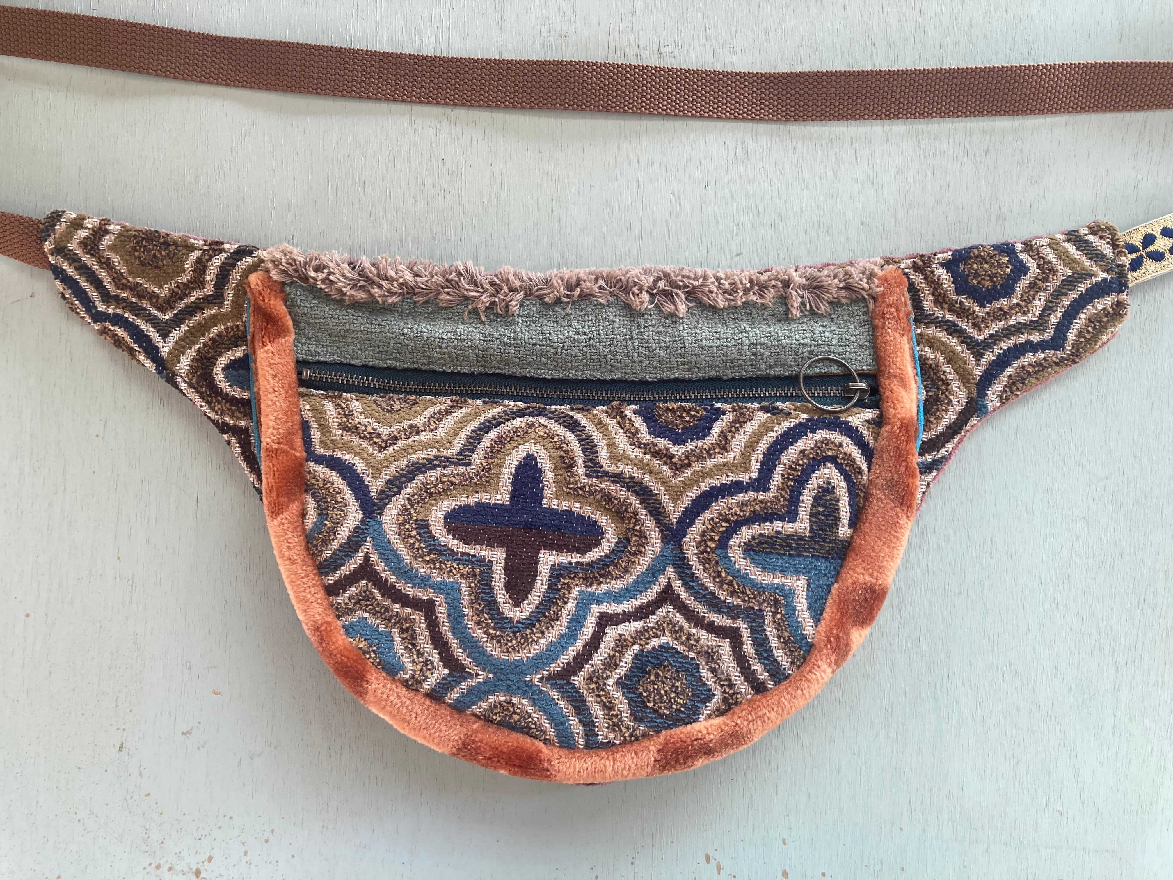 オリジナルデザインのウェストバッグ型ショルダーです。モロッコの生地をメインにmixしてオンリーワンに仕上げていますので、生地の上質な質感やカラフルな色合わせなどを楽しんでいただけたら嬉しいです。