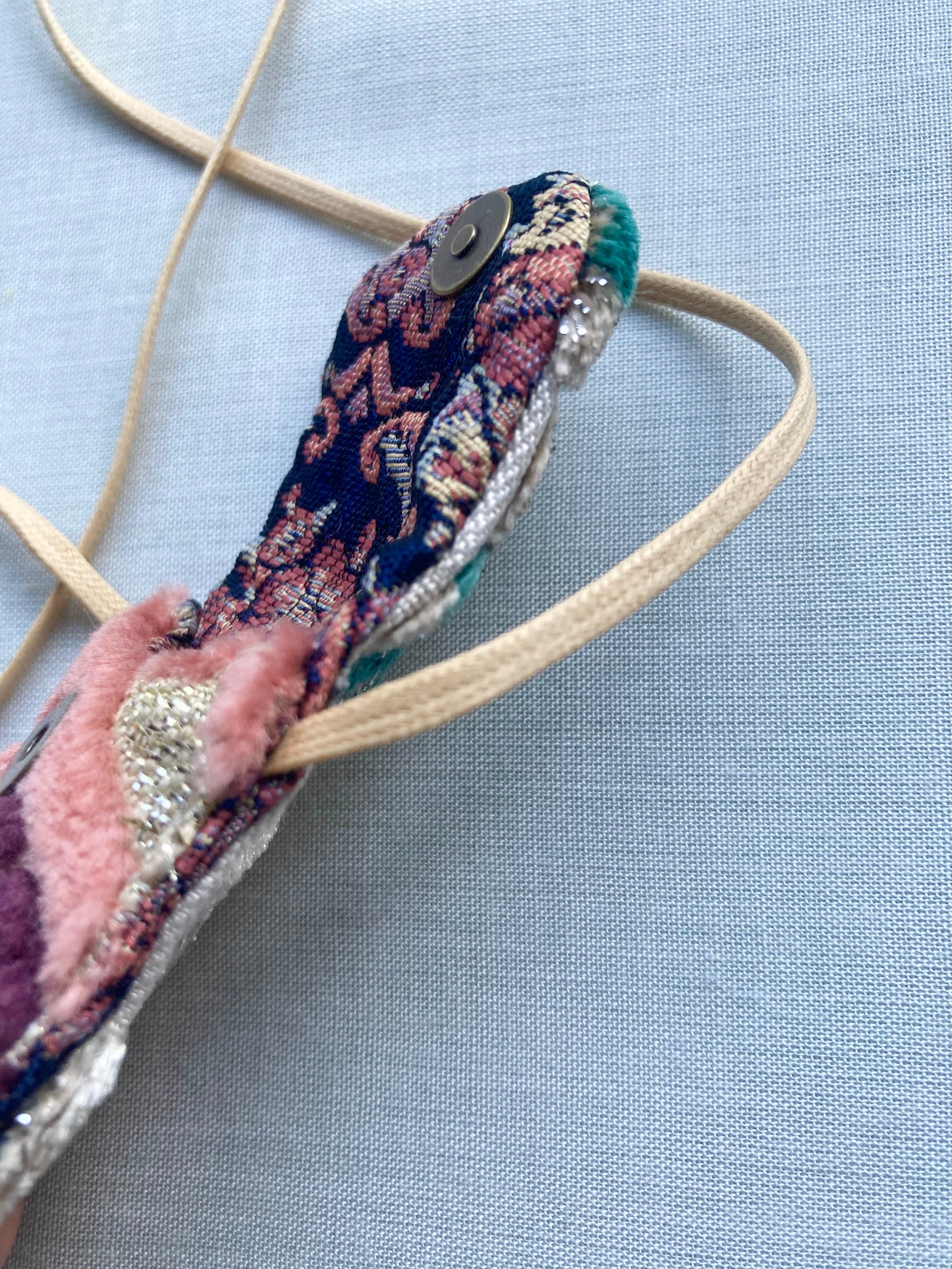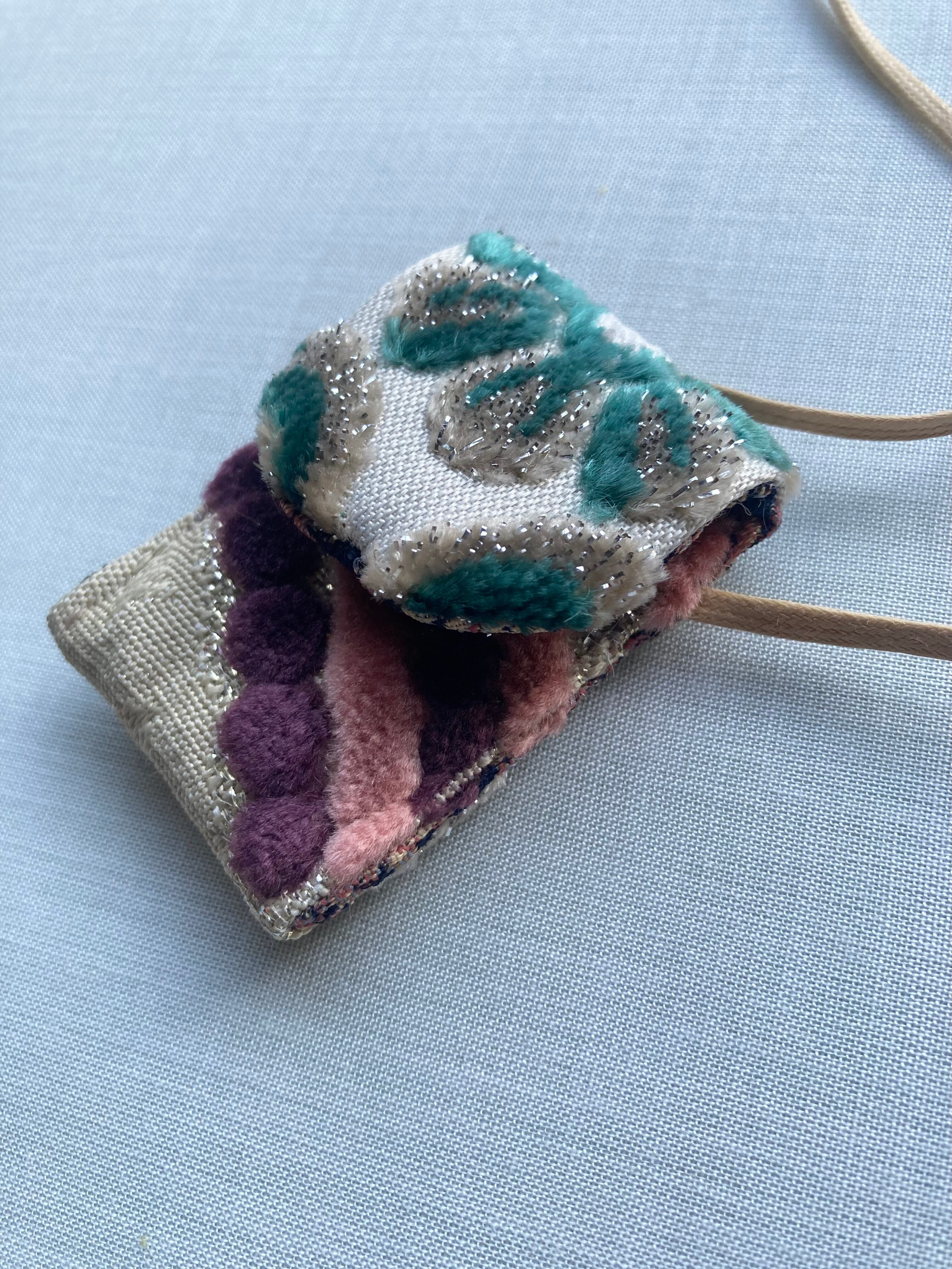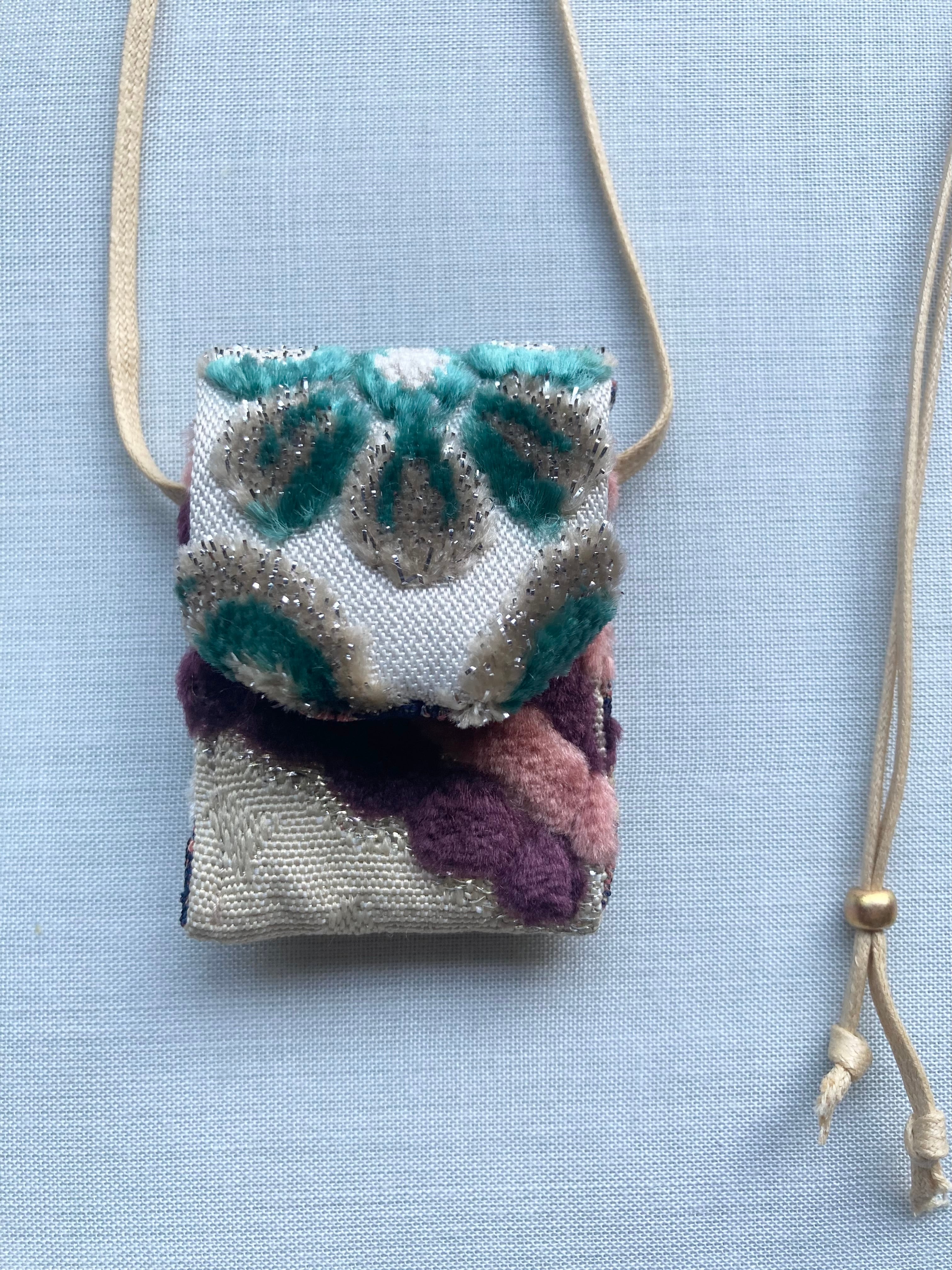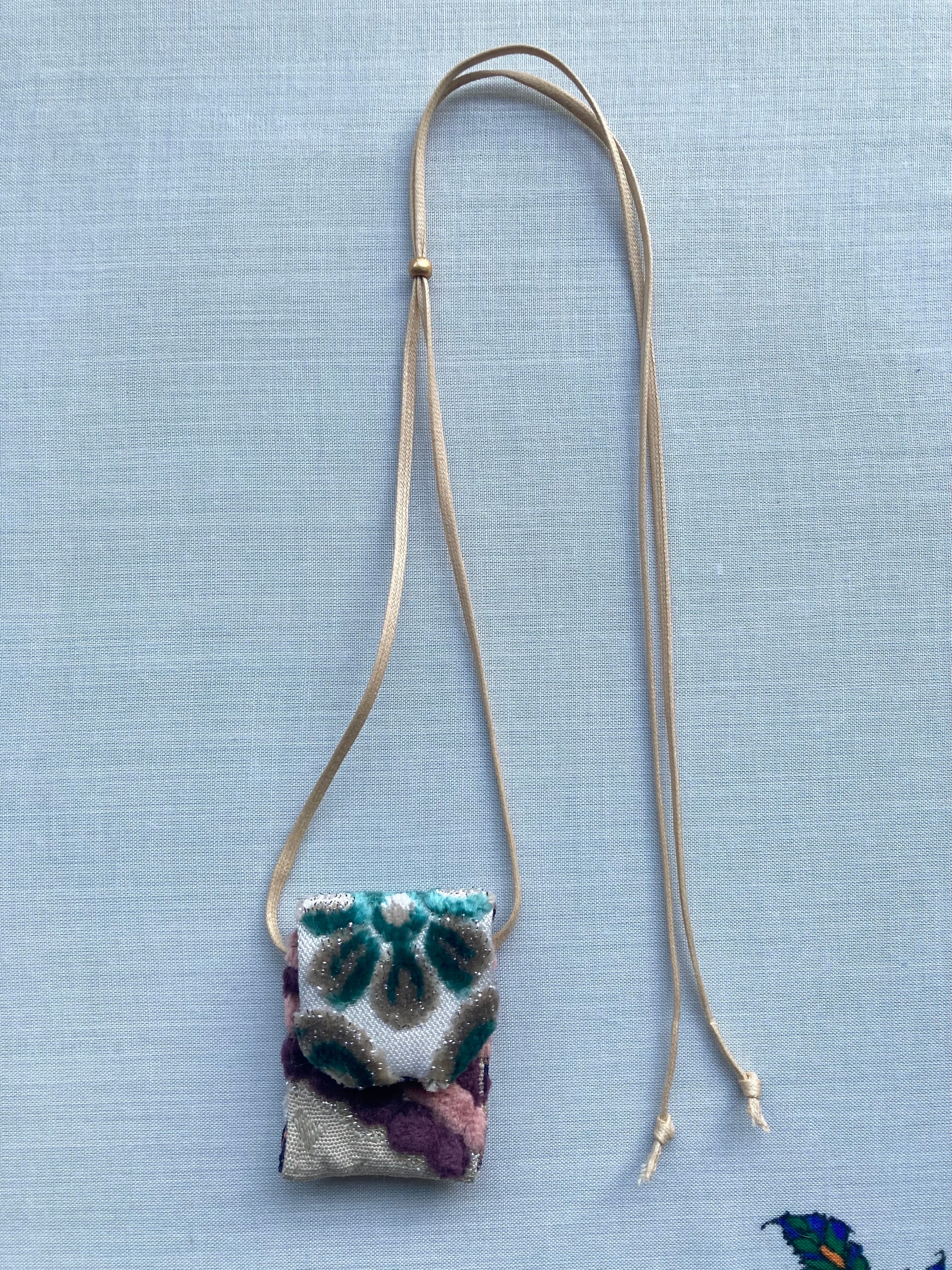 モロッコ生地はベルベットのように厚めでリッチ。繊細なアクセサリーやモバイル充電器、携帯用香水など、、、旅行などの出先でとても重宝します♪