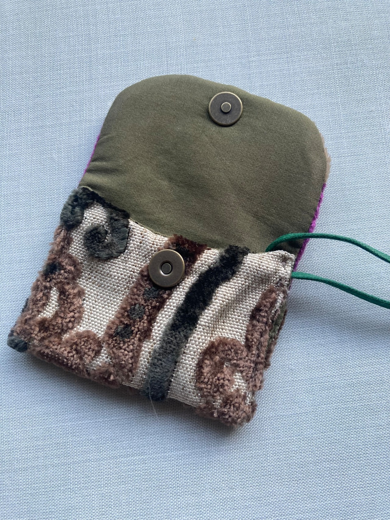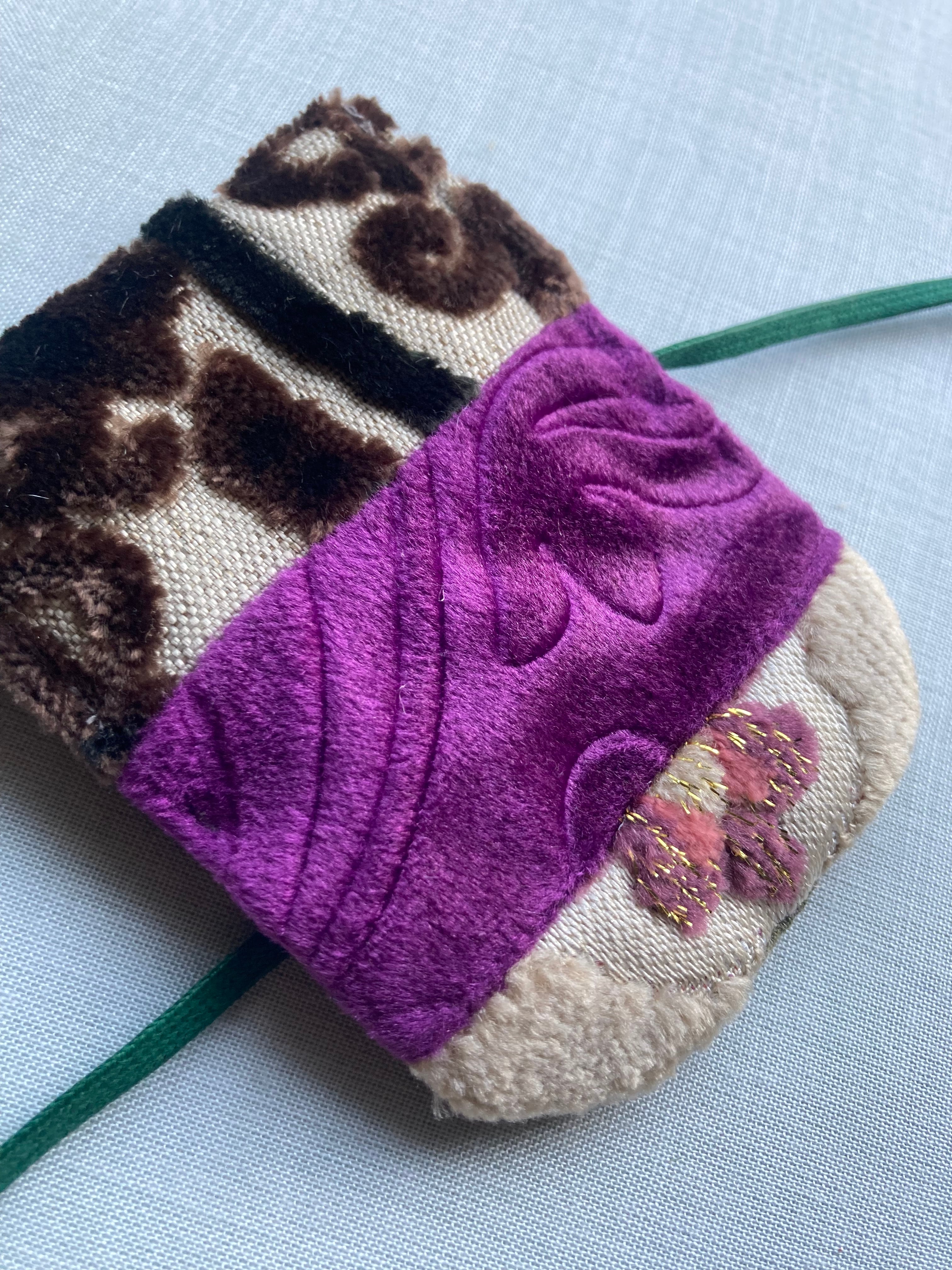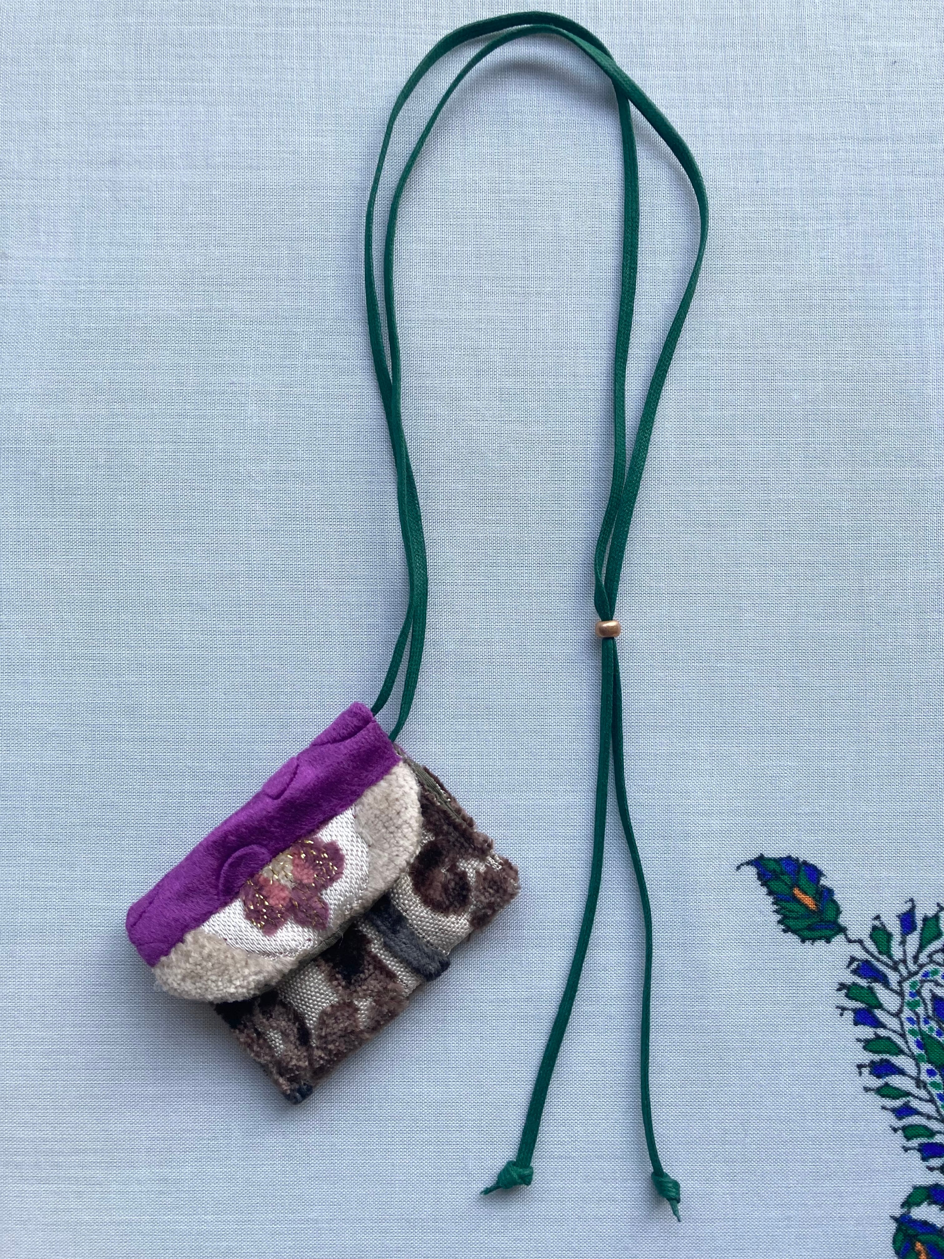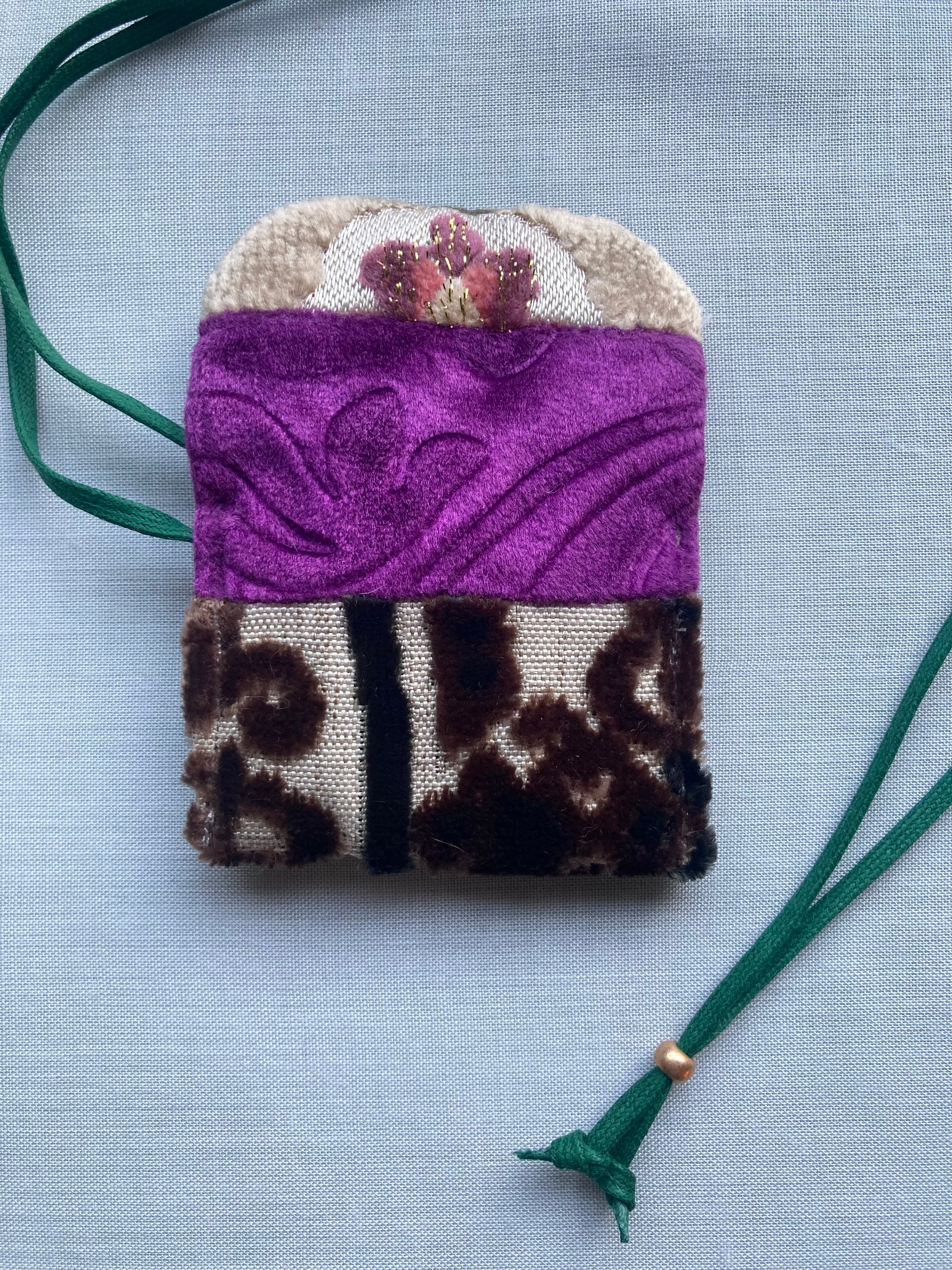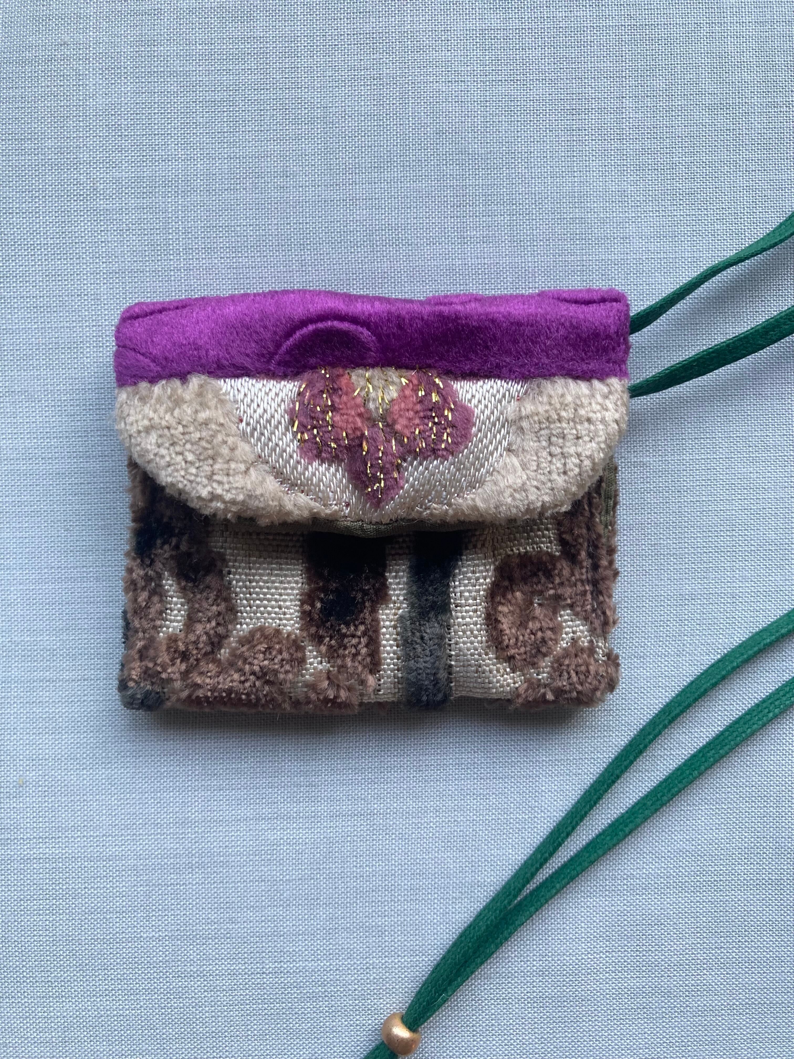 モロッコ生地はベルベットのように厚めでリッチ。繊細なアクセサリーやモバイル充電器、携帯用香水など、、、旅行などの出先でとても重宝します♪