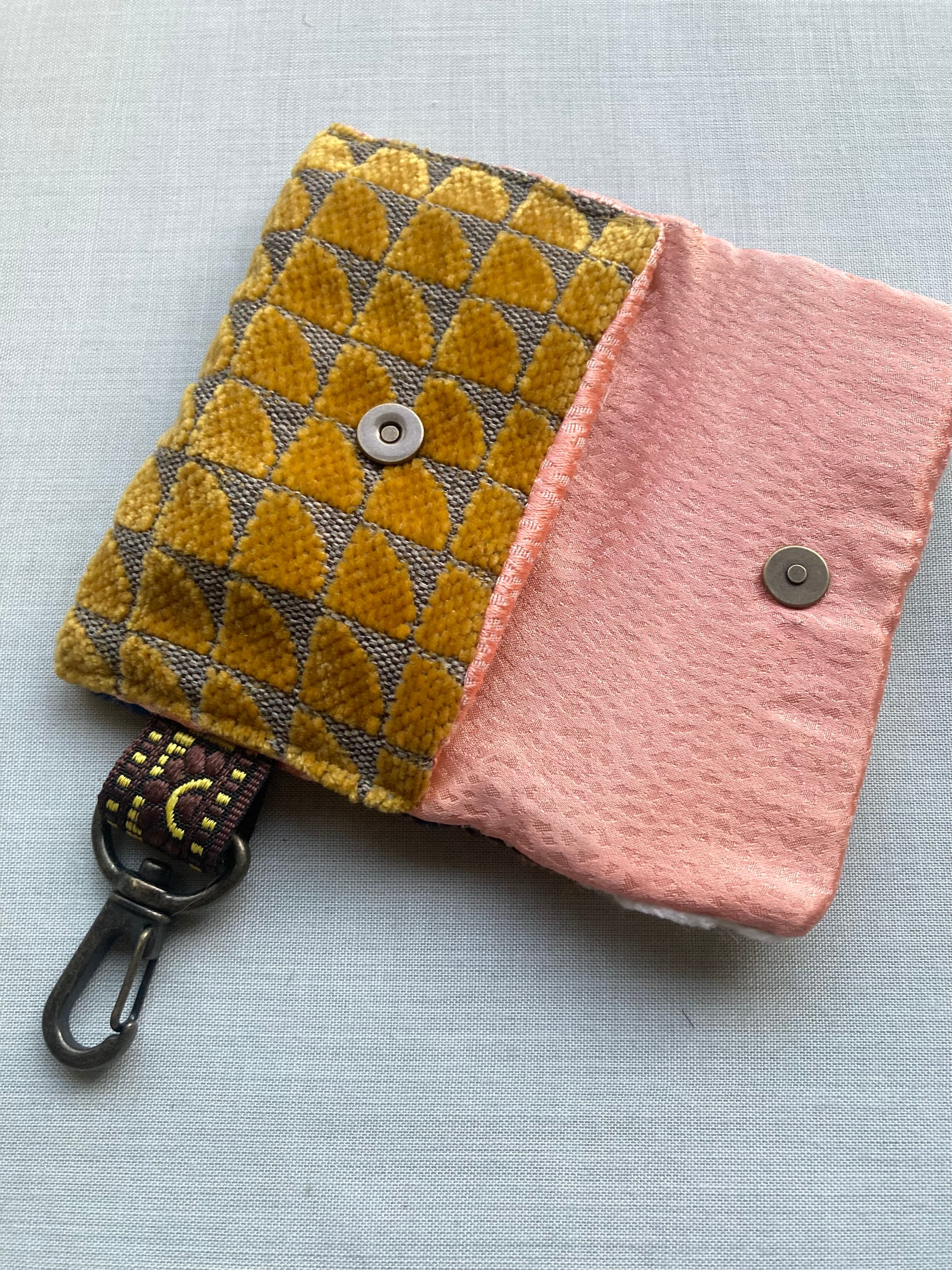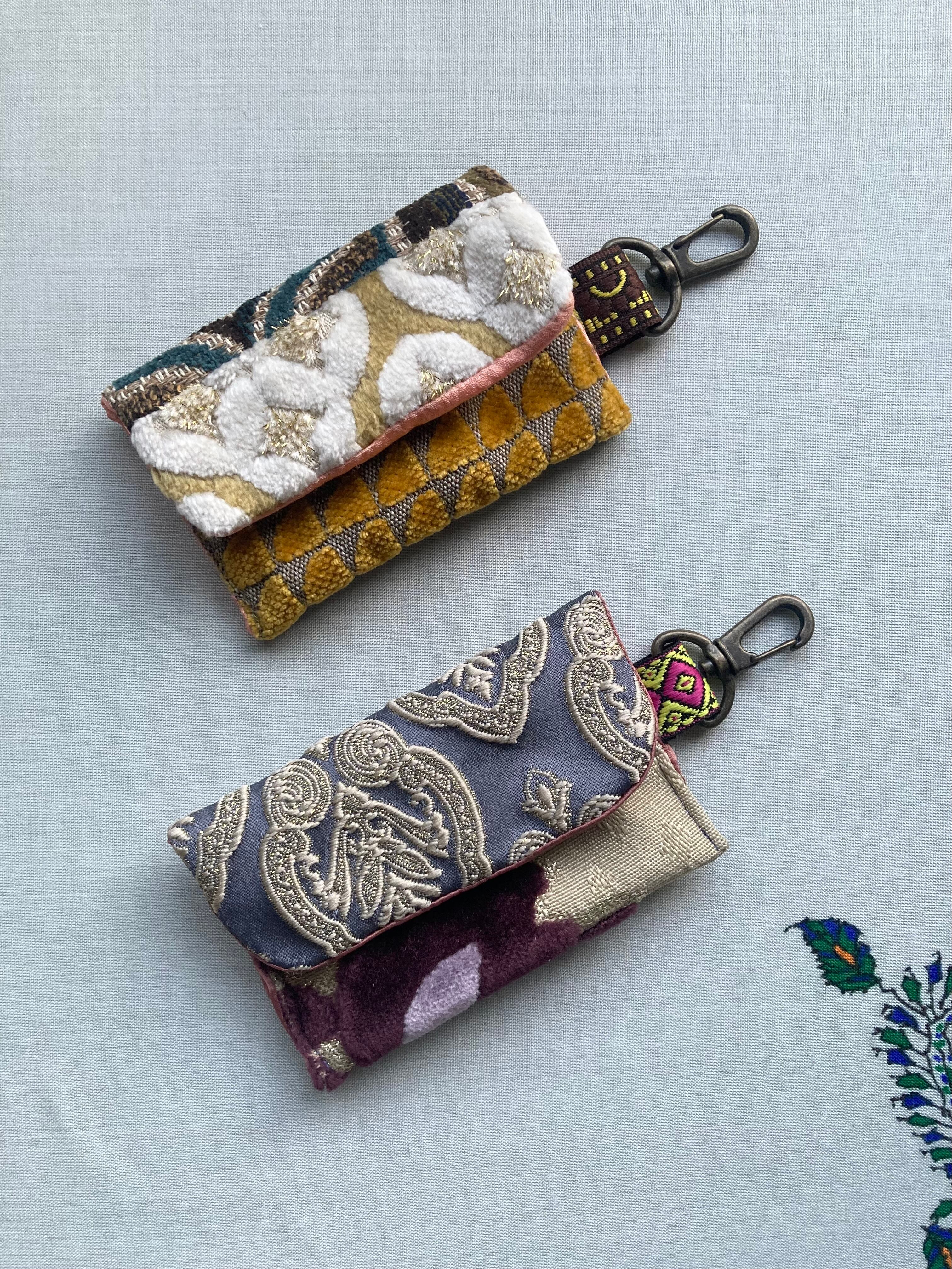 モロッコ生地はベルベットのように厚めでリッチ。繊細なアクセサリーやモバイル充電器、携帯用香水など、、、旅行などの出先でとても重宝します♪