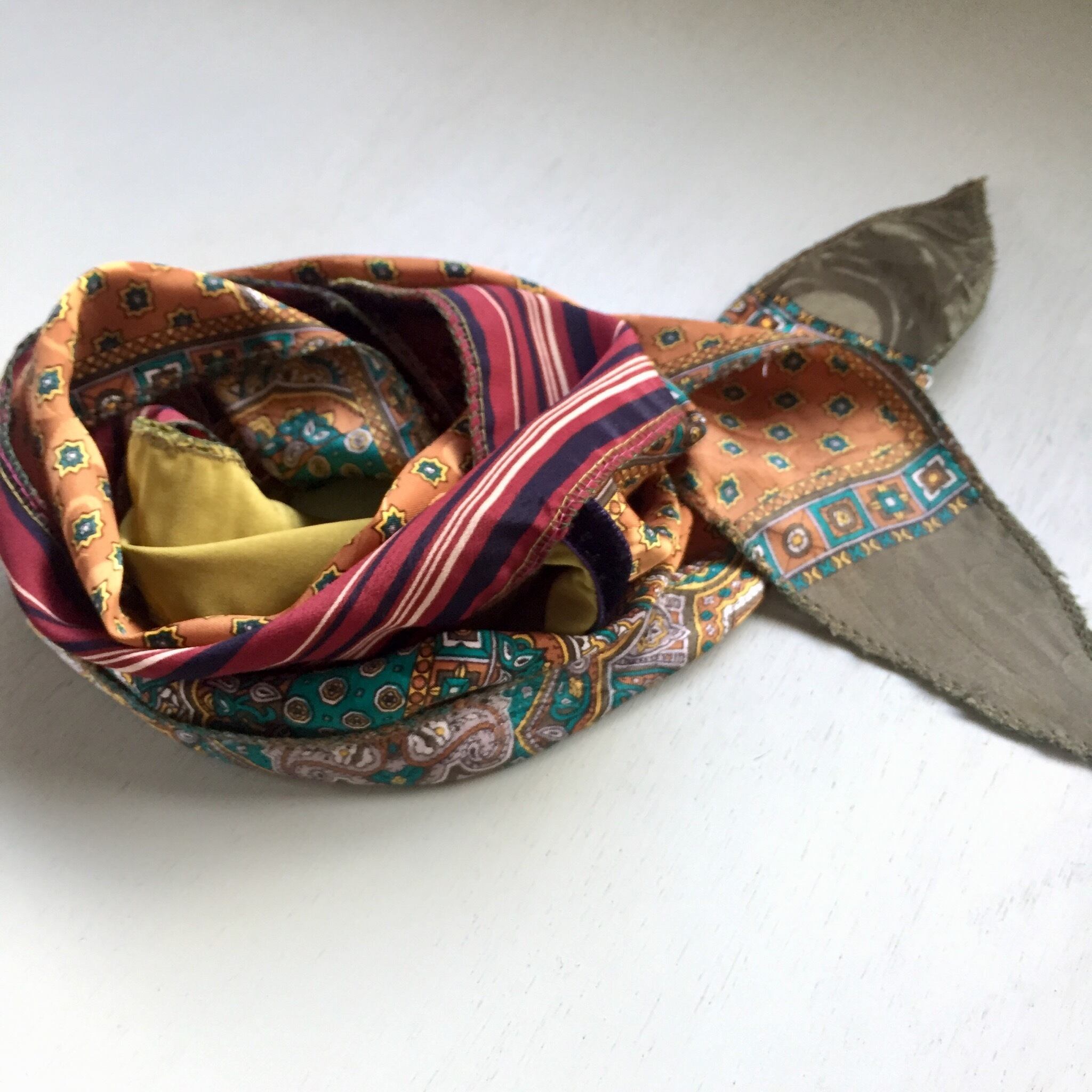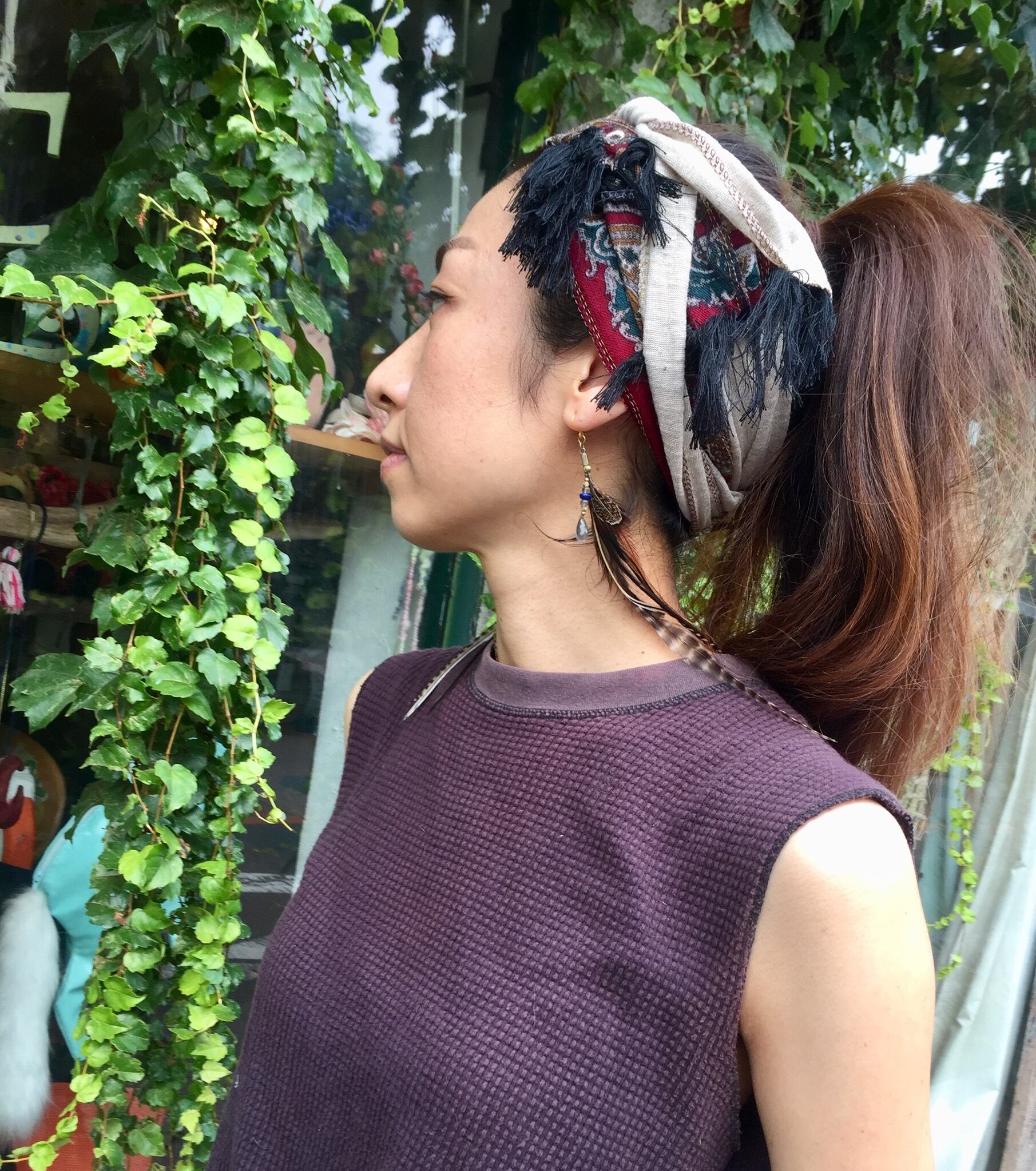 頭に巻く以外にも首元やベルト代わりに、バッグやお持ちの帽子に巻いてカスタムしても♪