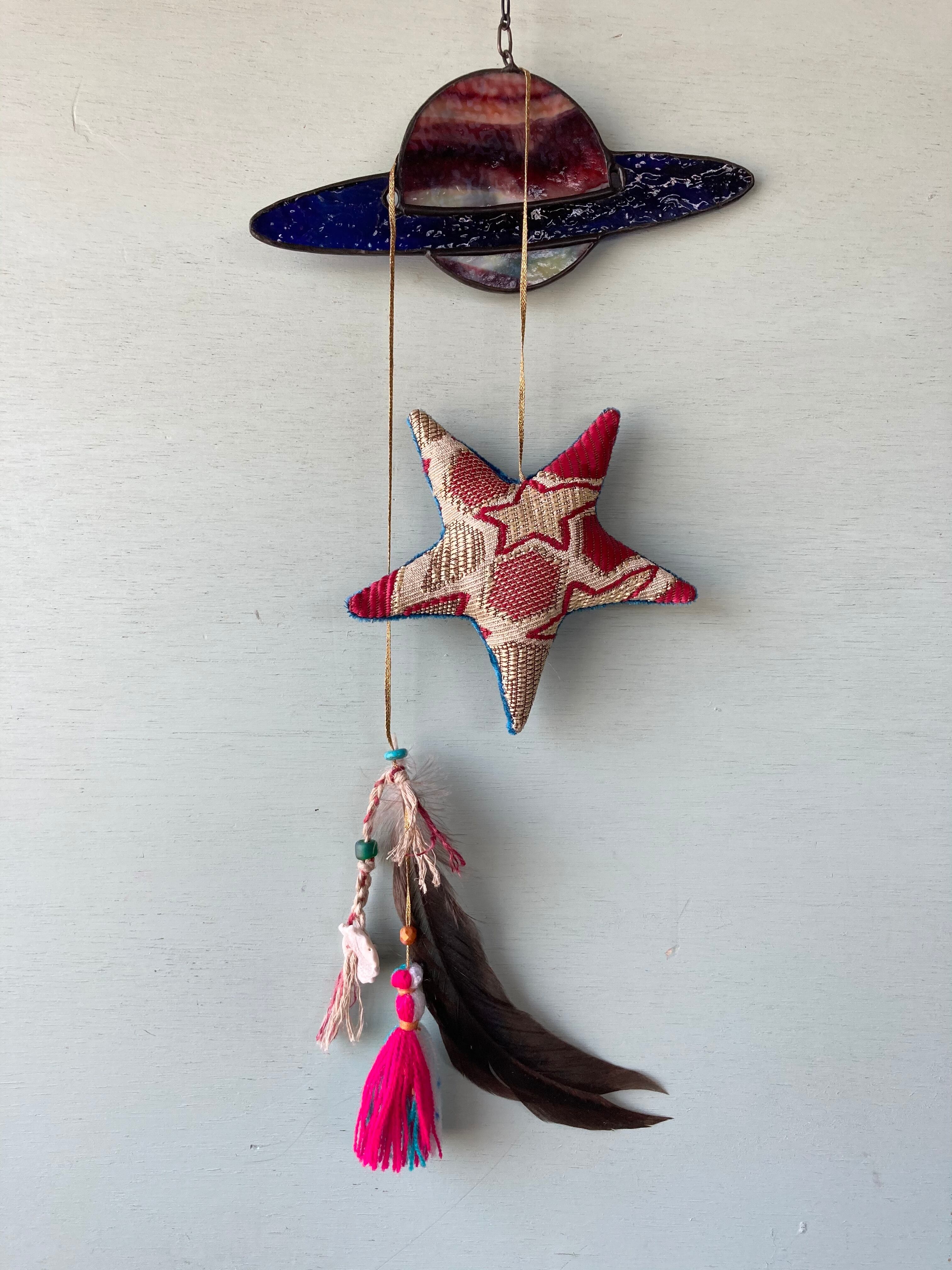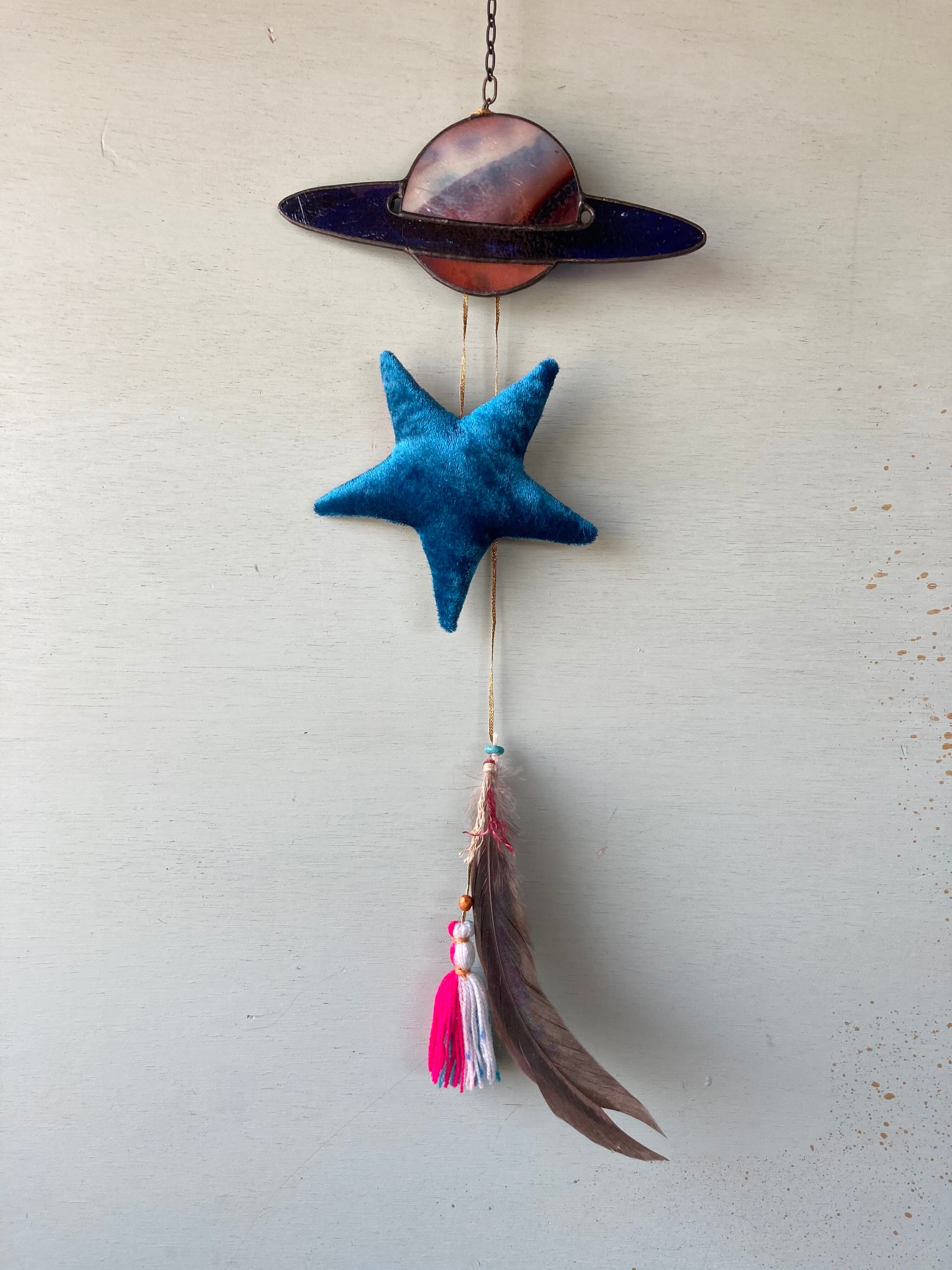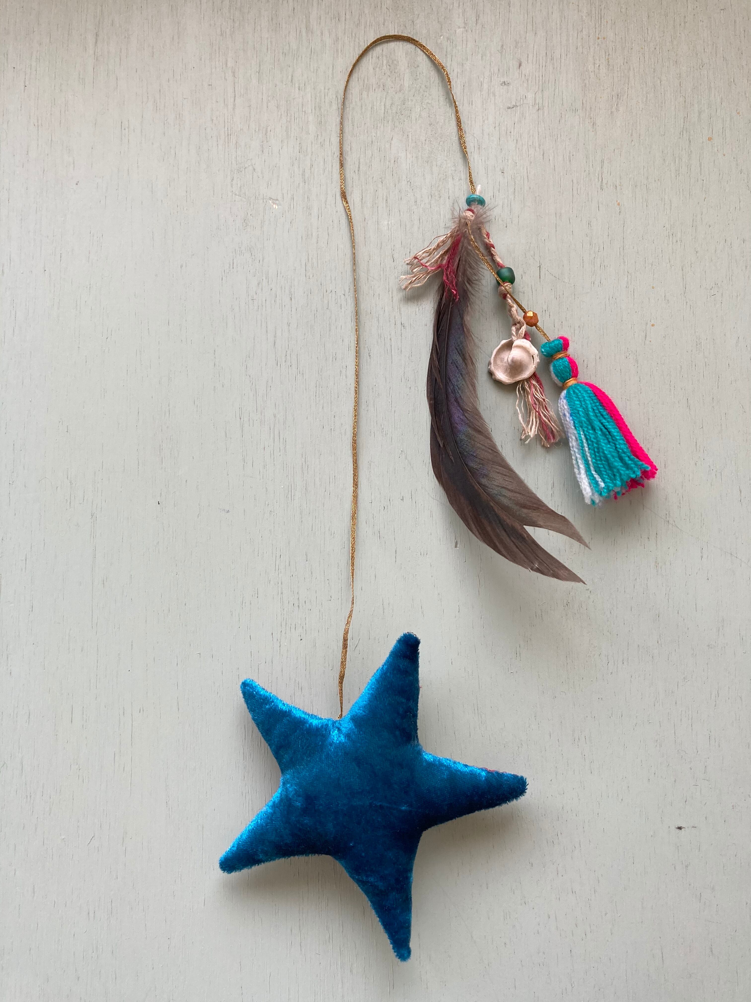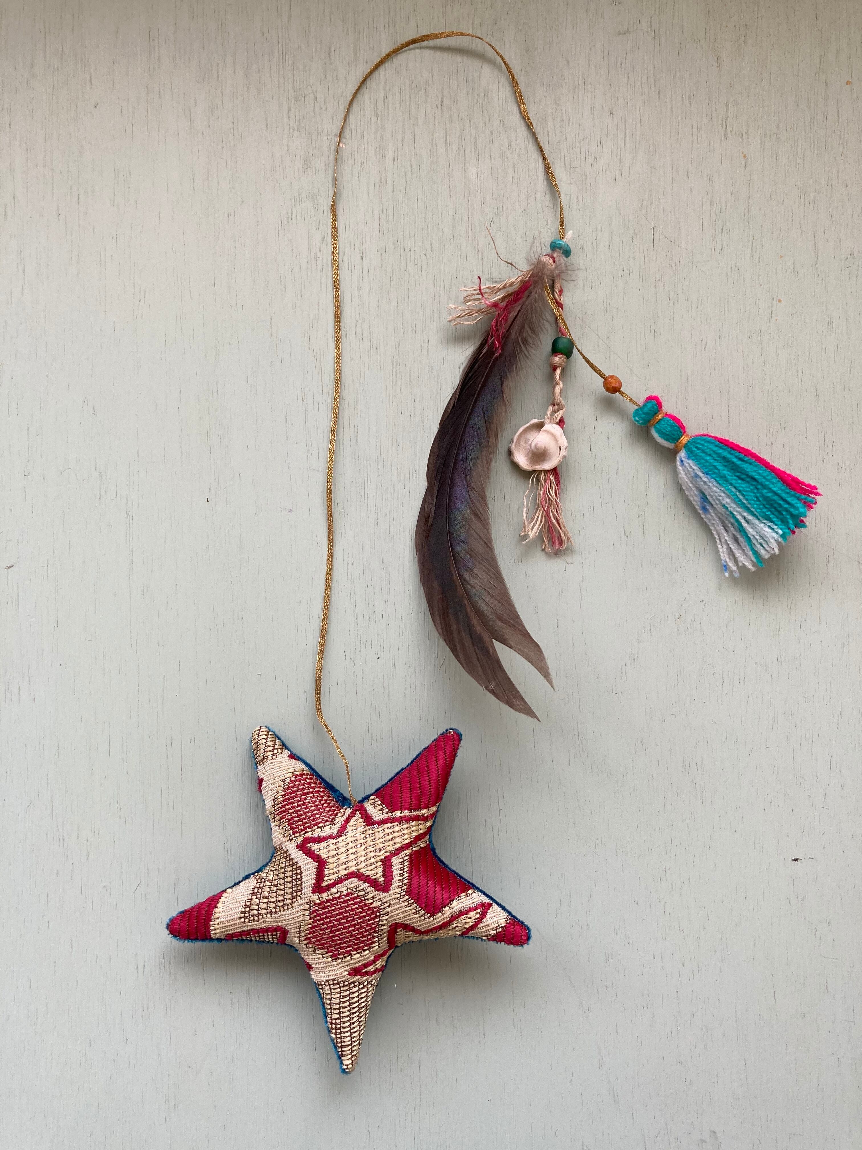 Ornament ☆star w/feather turquoise/red