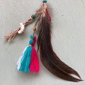こちらはモロッコ生地mixでタッセル部分に羽とhemp付きです。