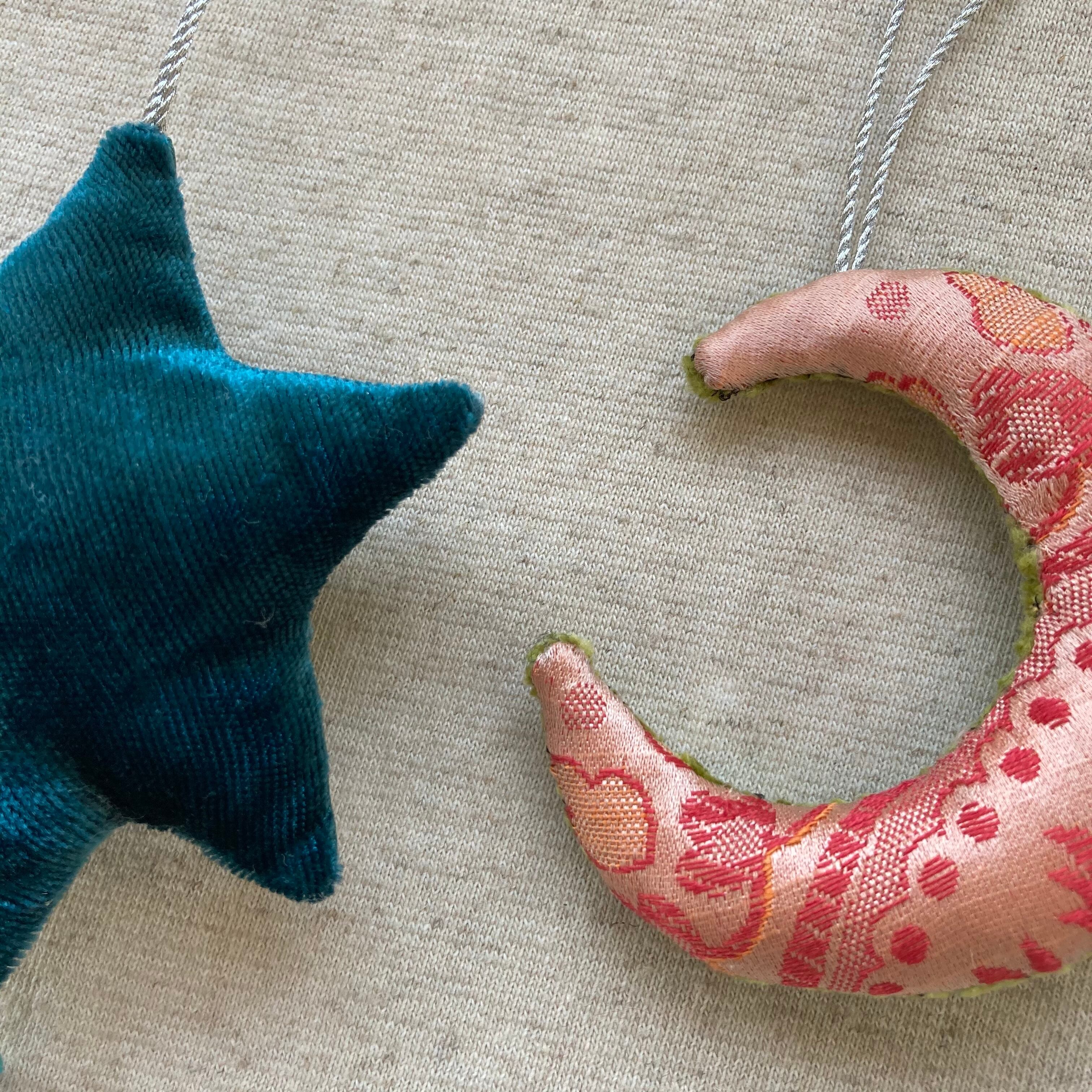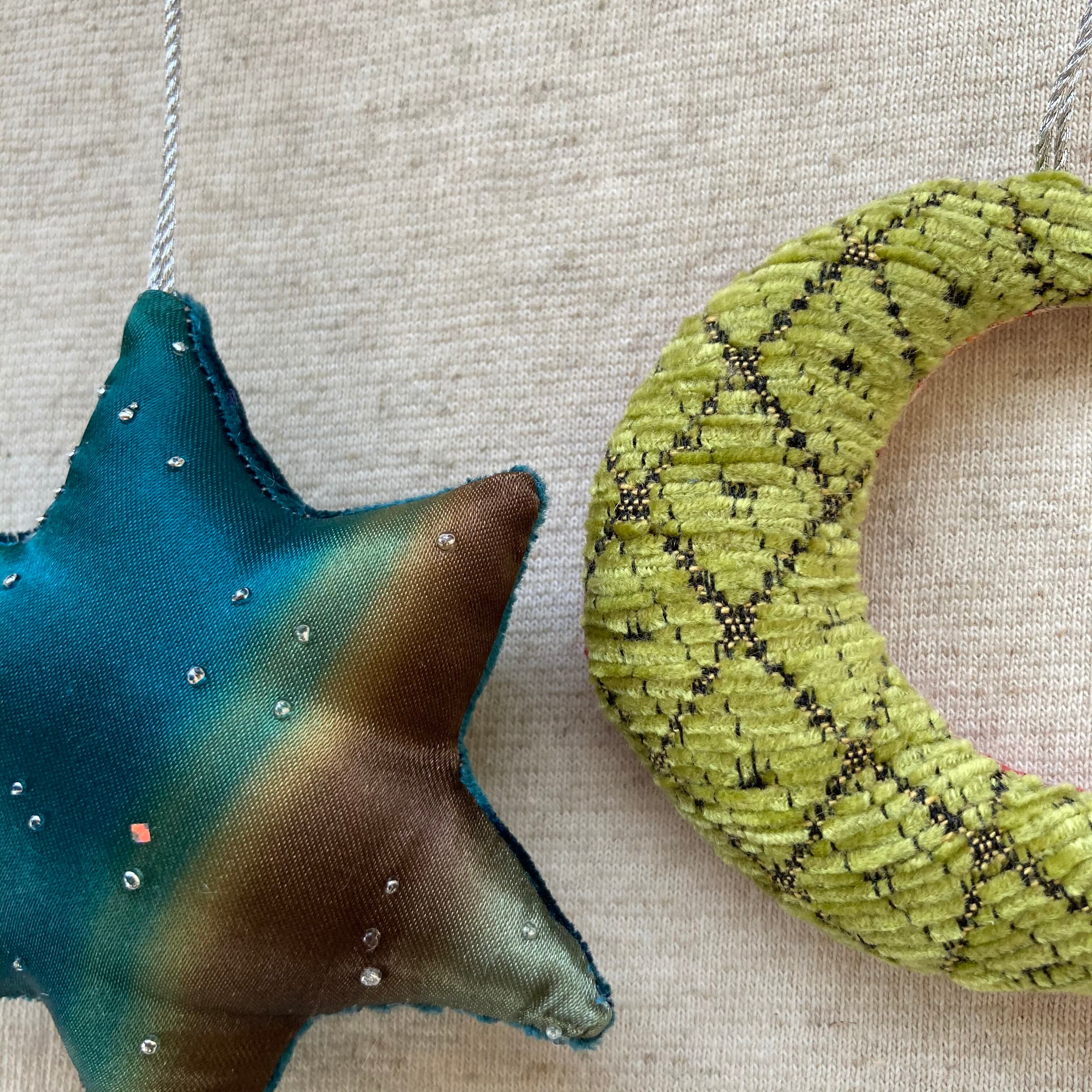 フランスのヴィンテージ生地やベロアなどをmixしたオーナメント。