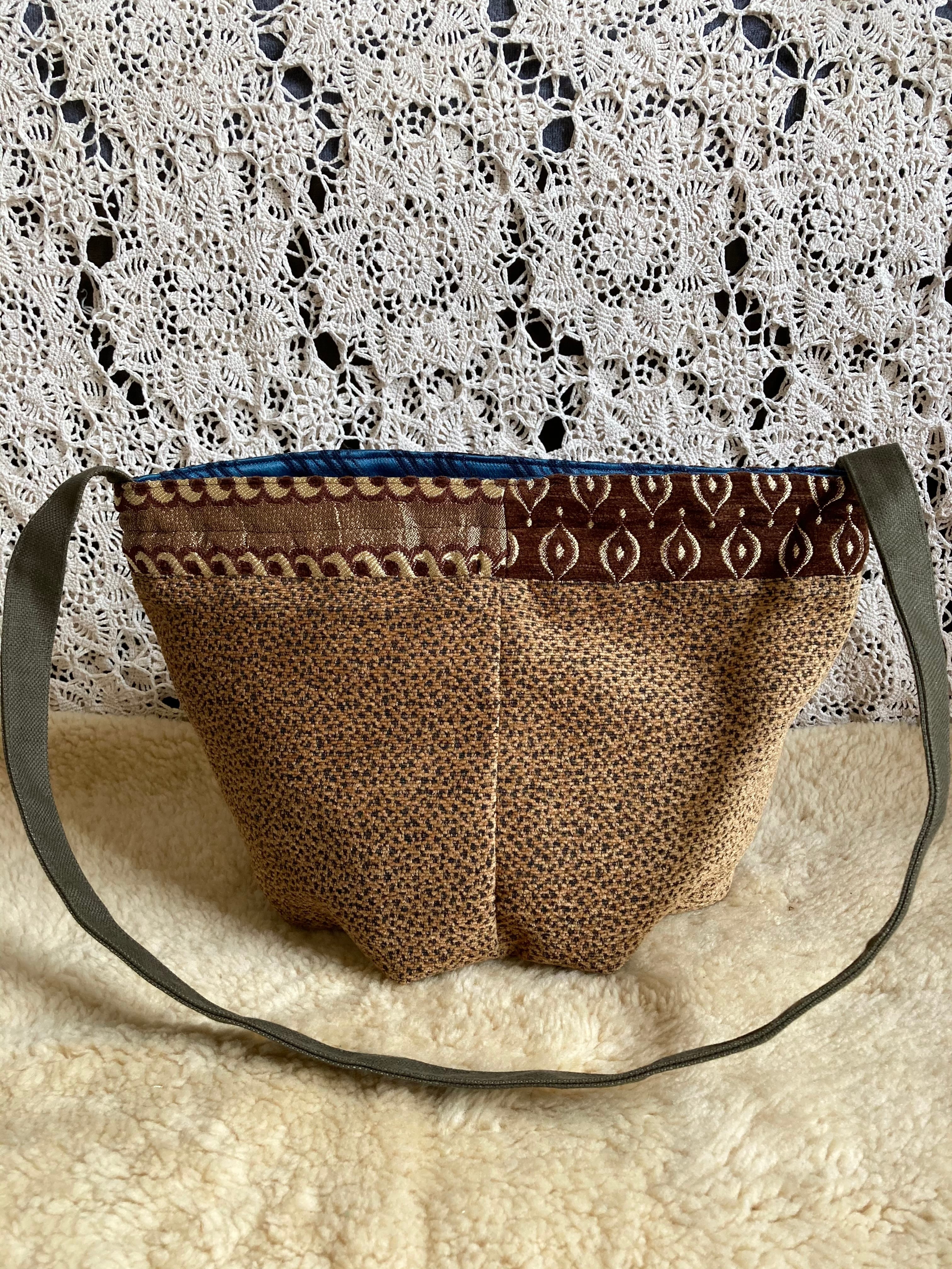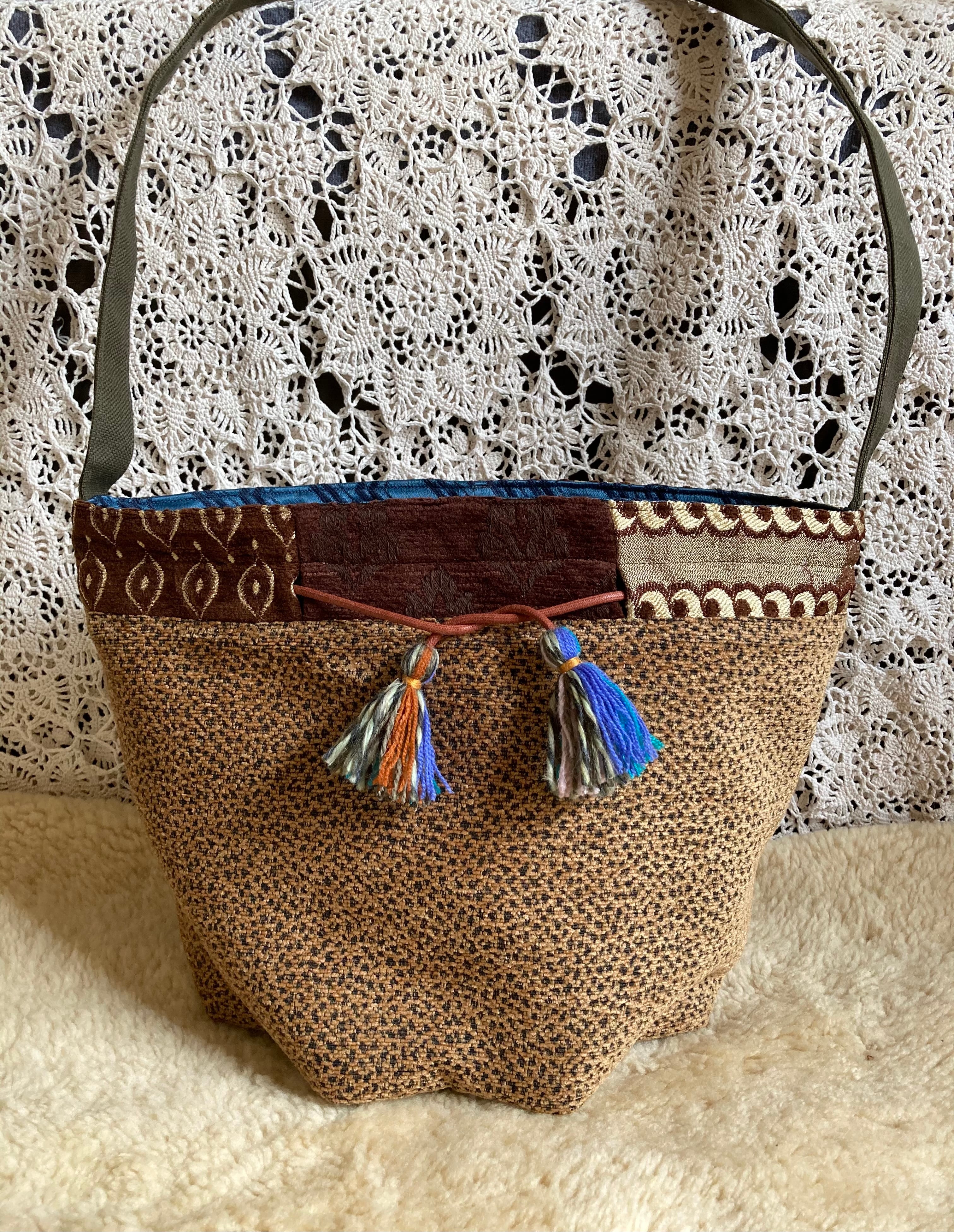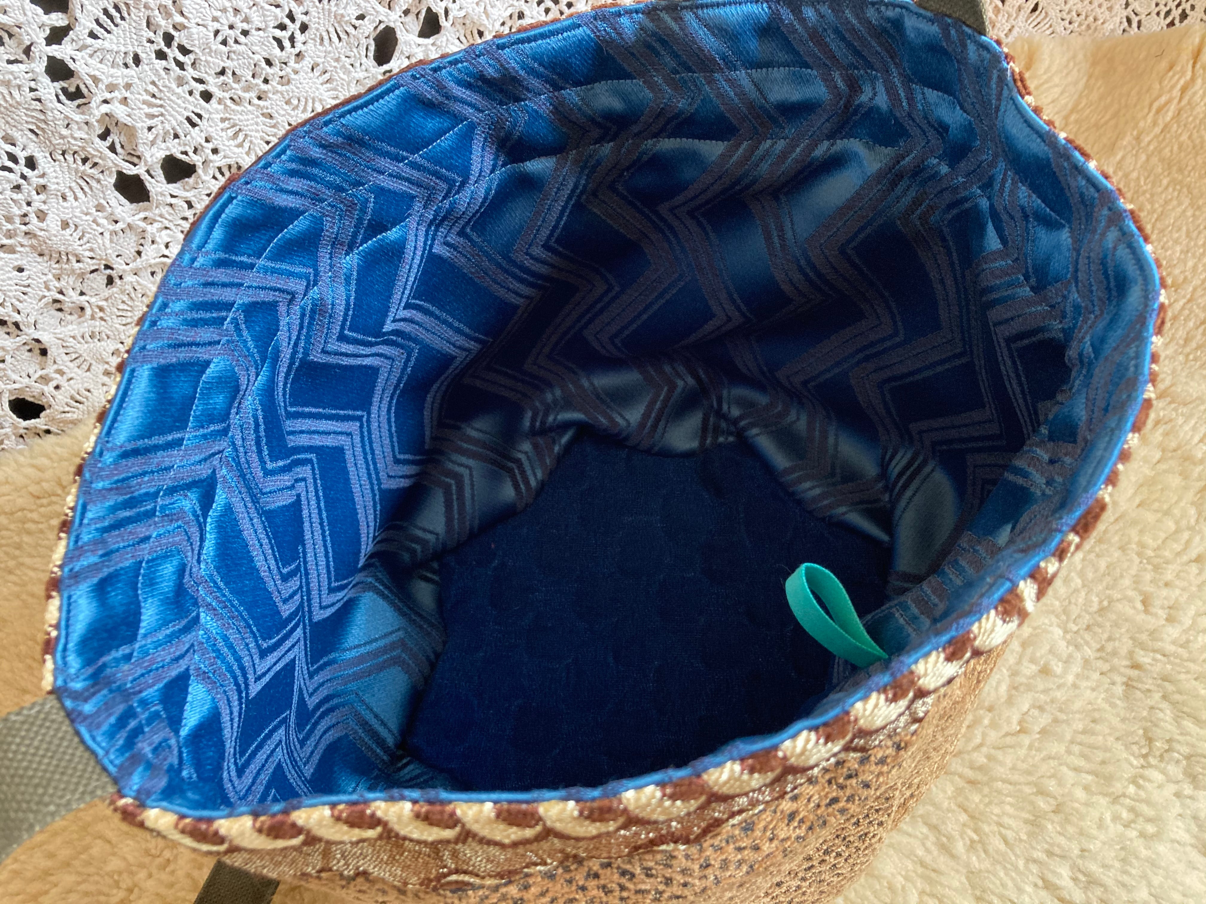 2wayで使える仕様なので、巾着型で肩掛けしたり、ヒモを縛らず斜めがけすればメッセンジャーバッグのように!底が目立ってなんともかわいいです。