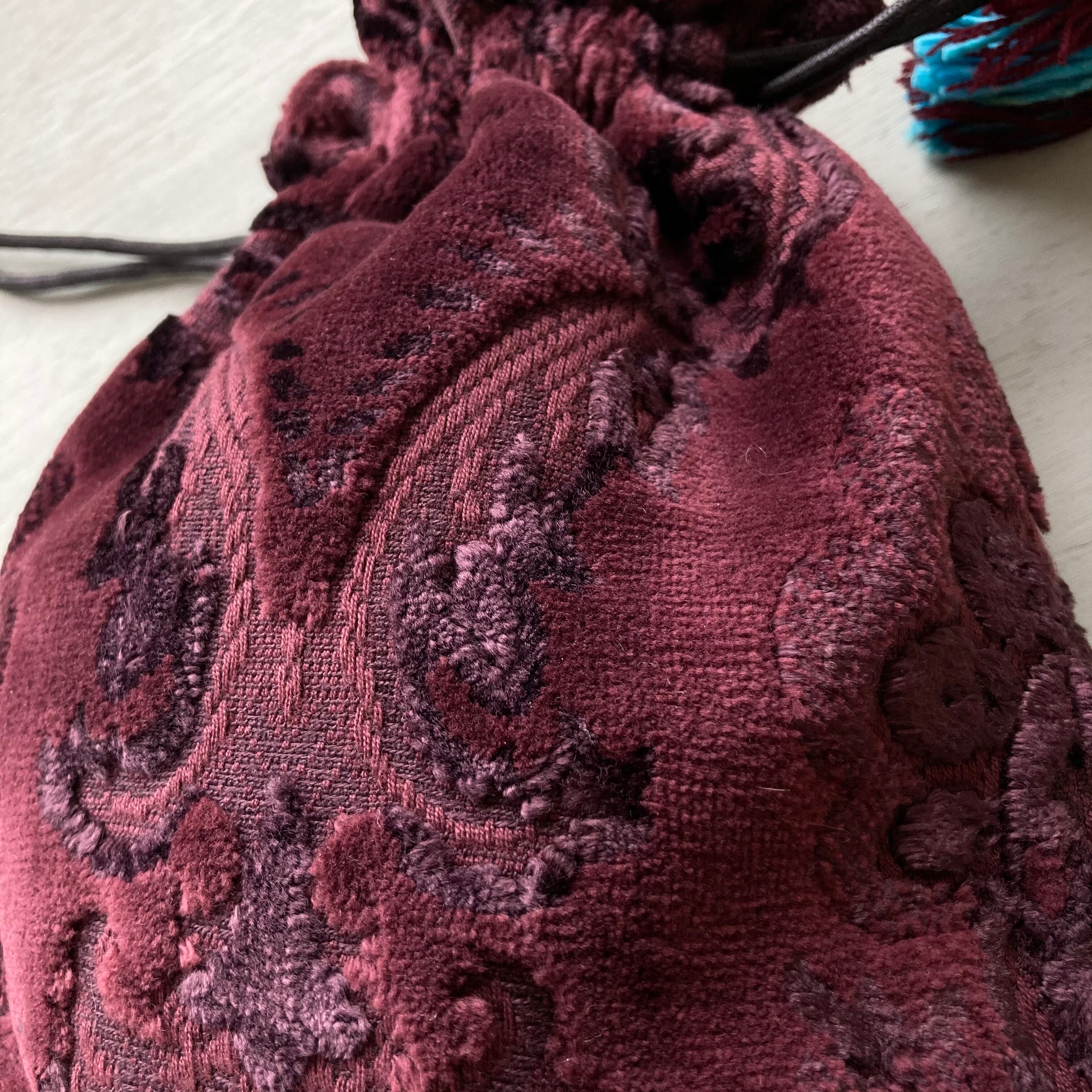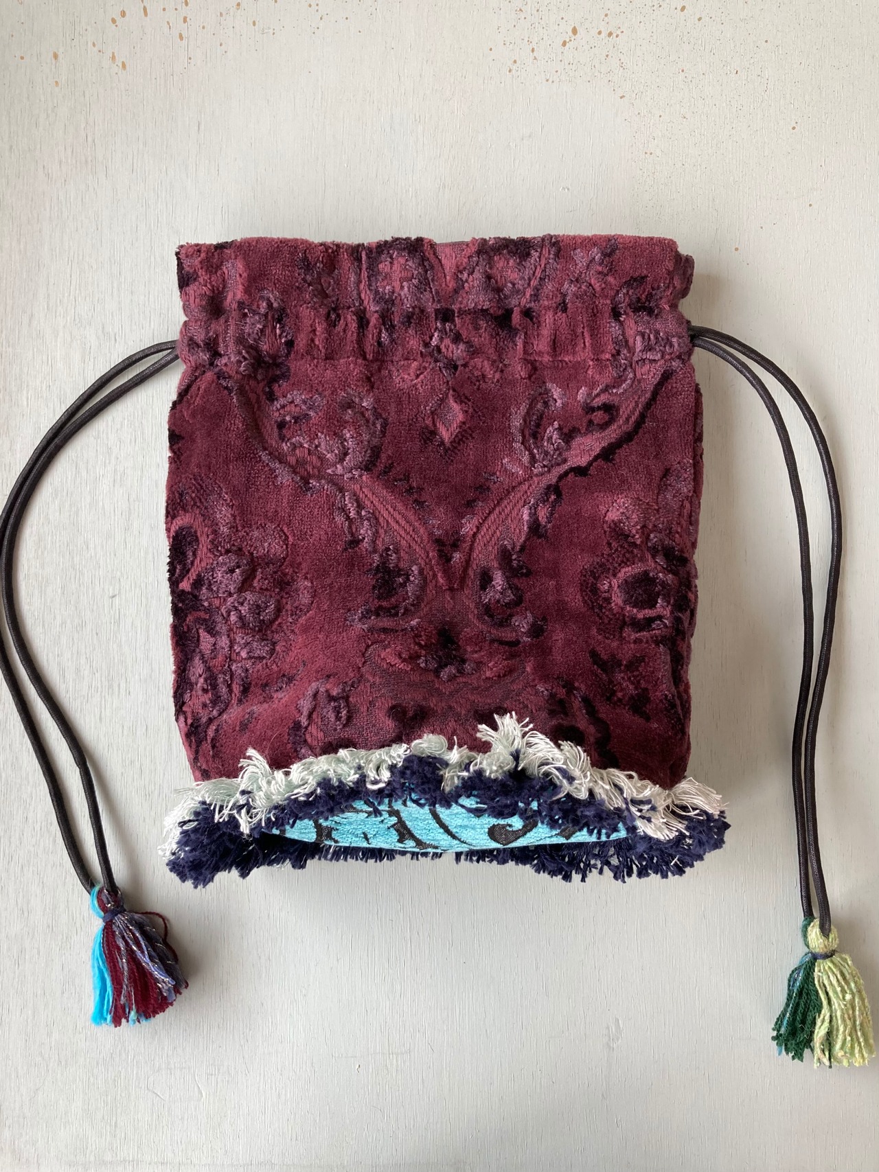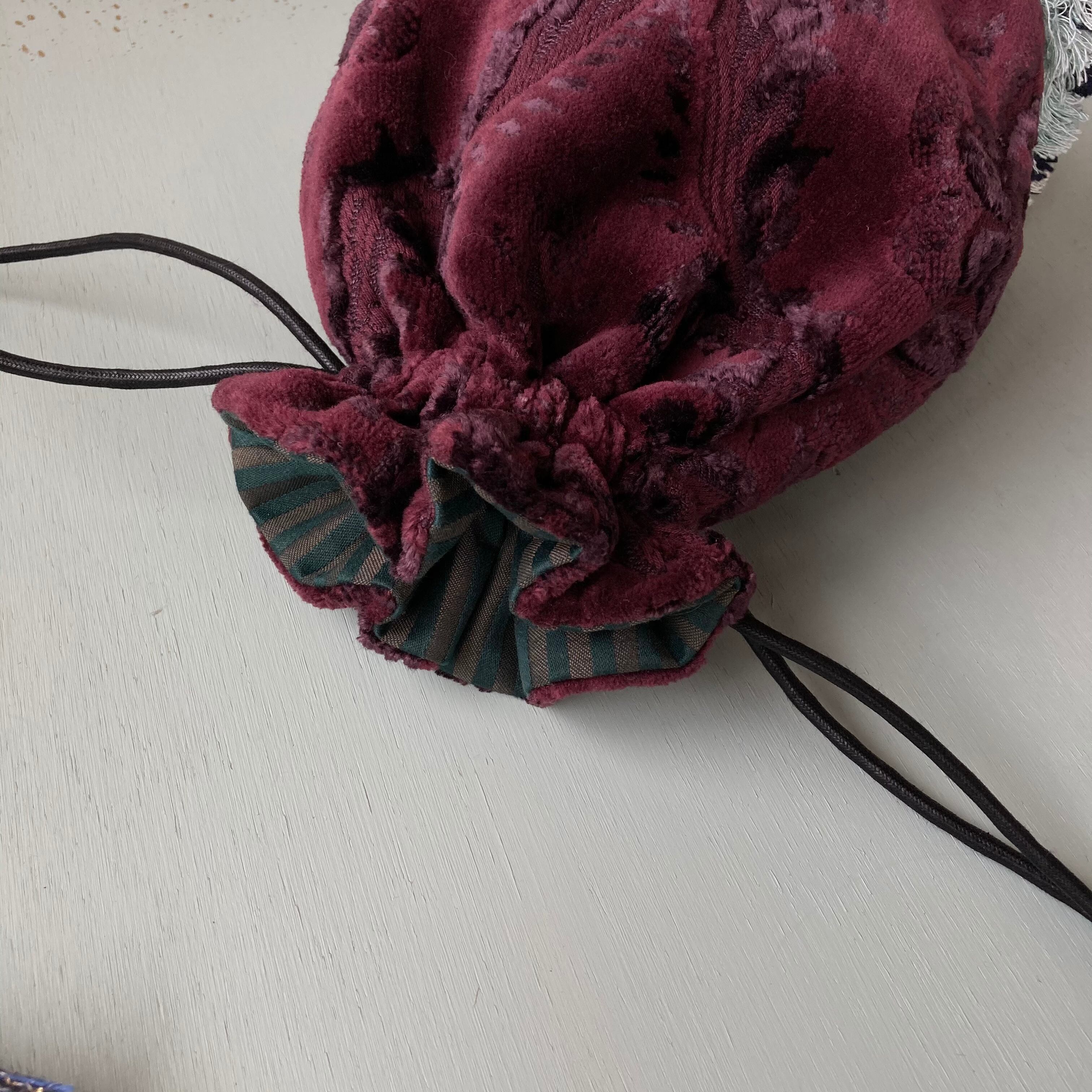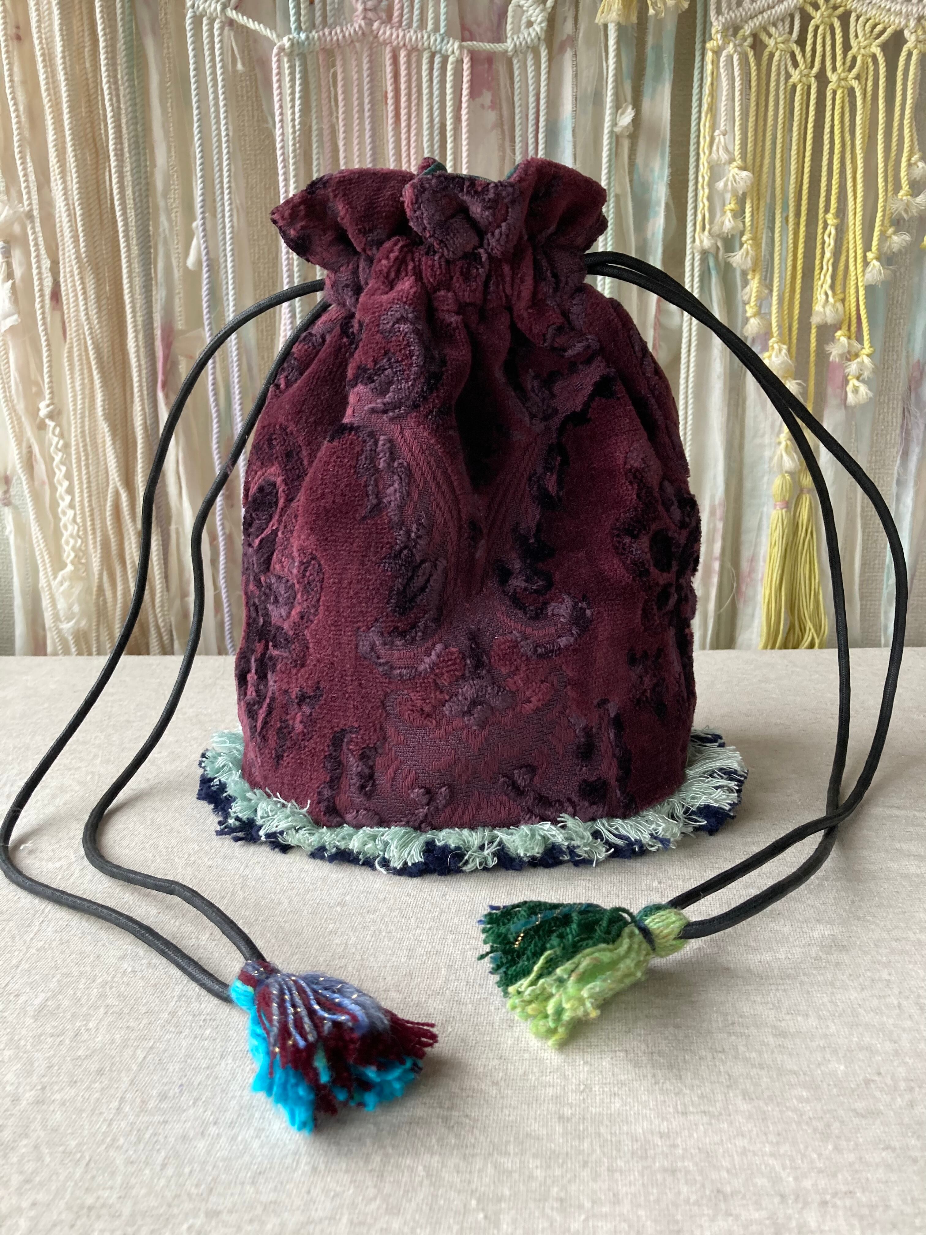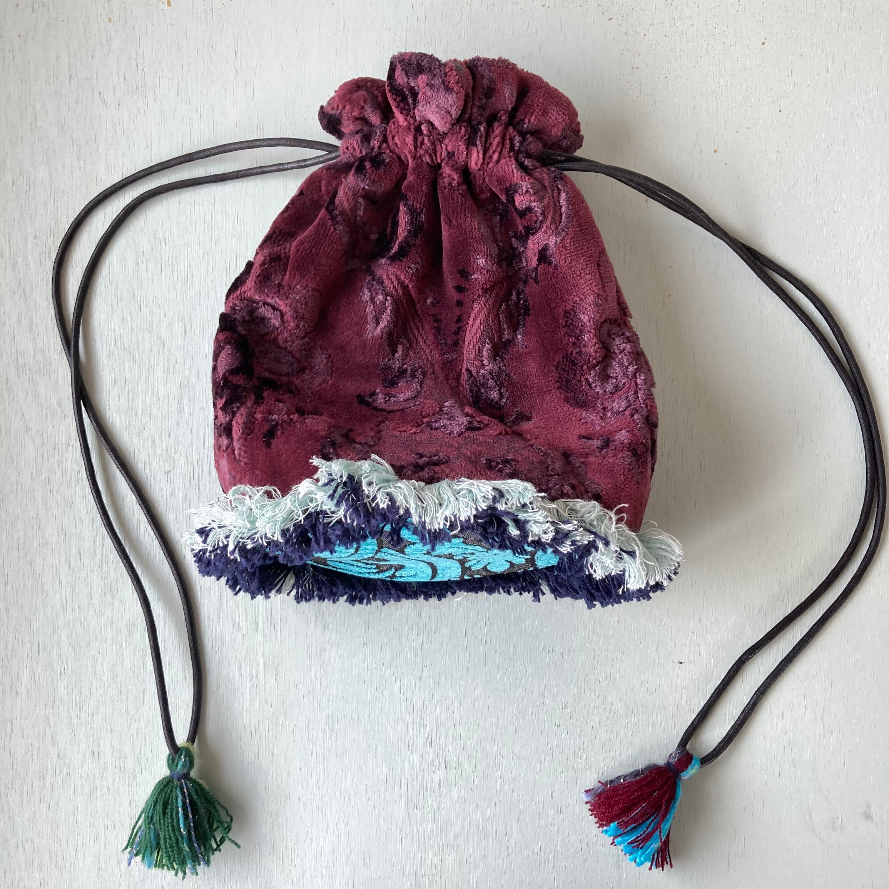 フリンジ巾着バッグ☆burgundy