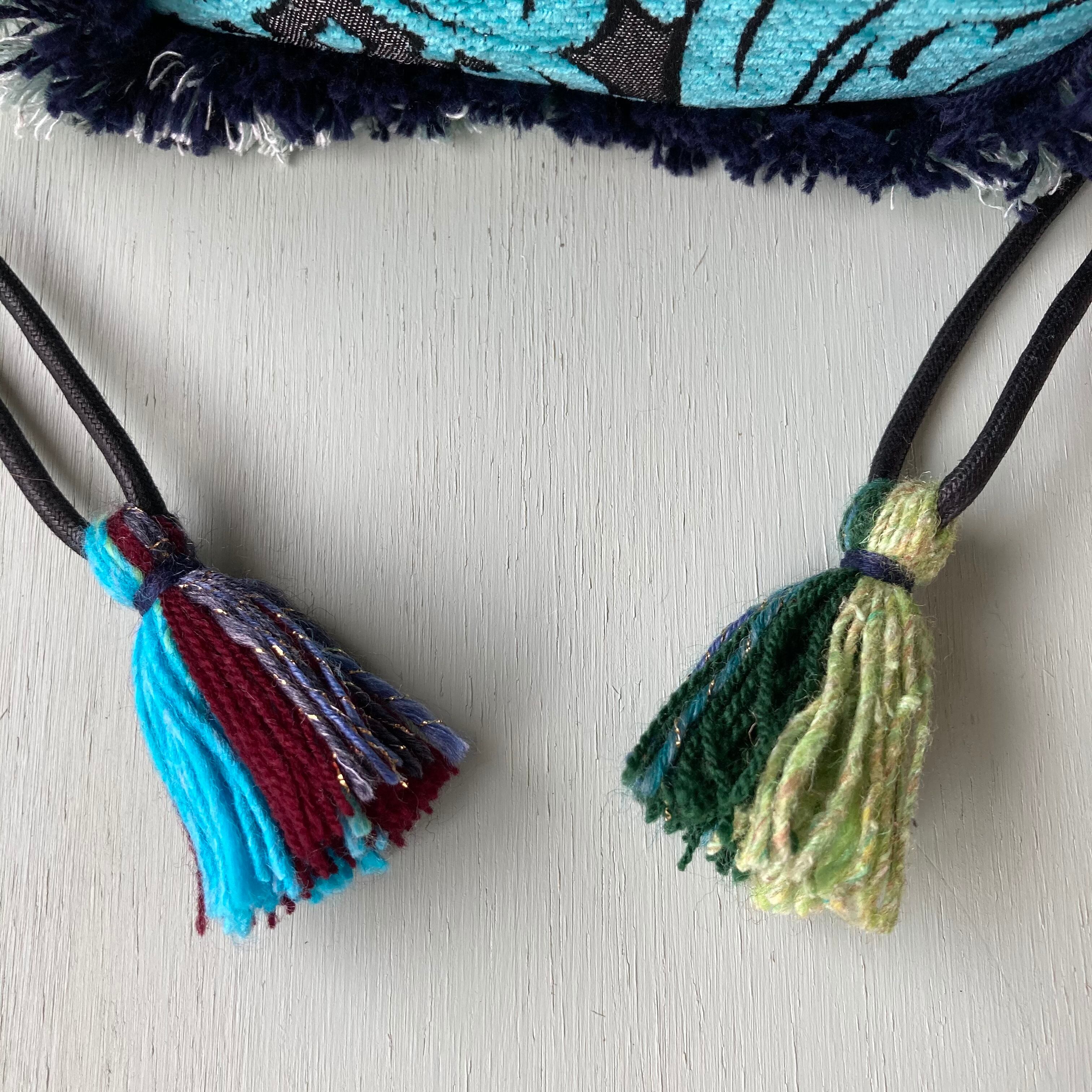 手染めの麻とwoolの2色フリンジがポイント