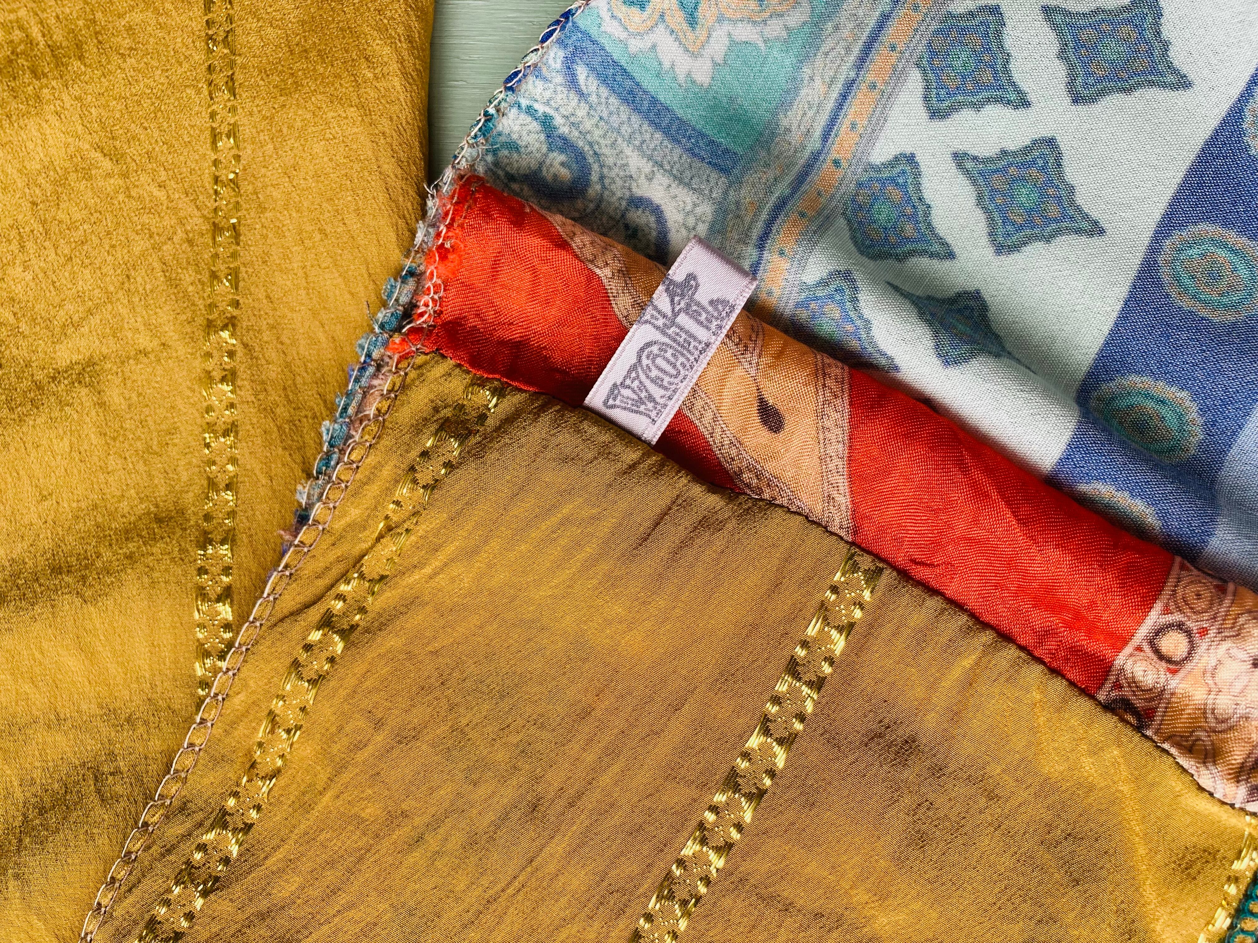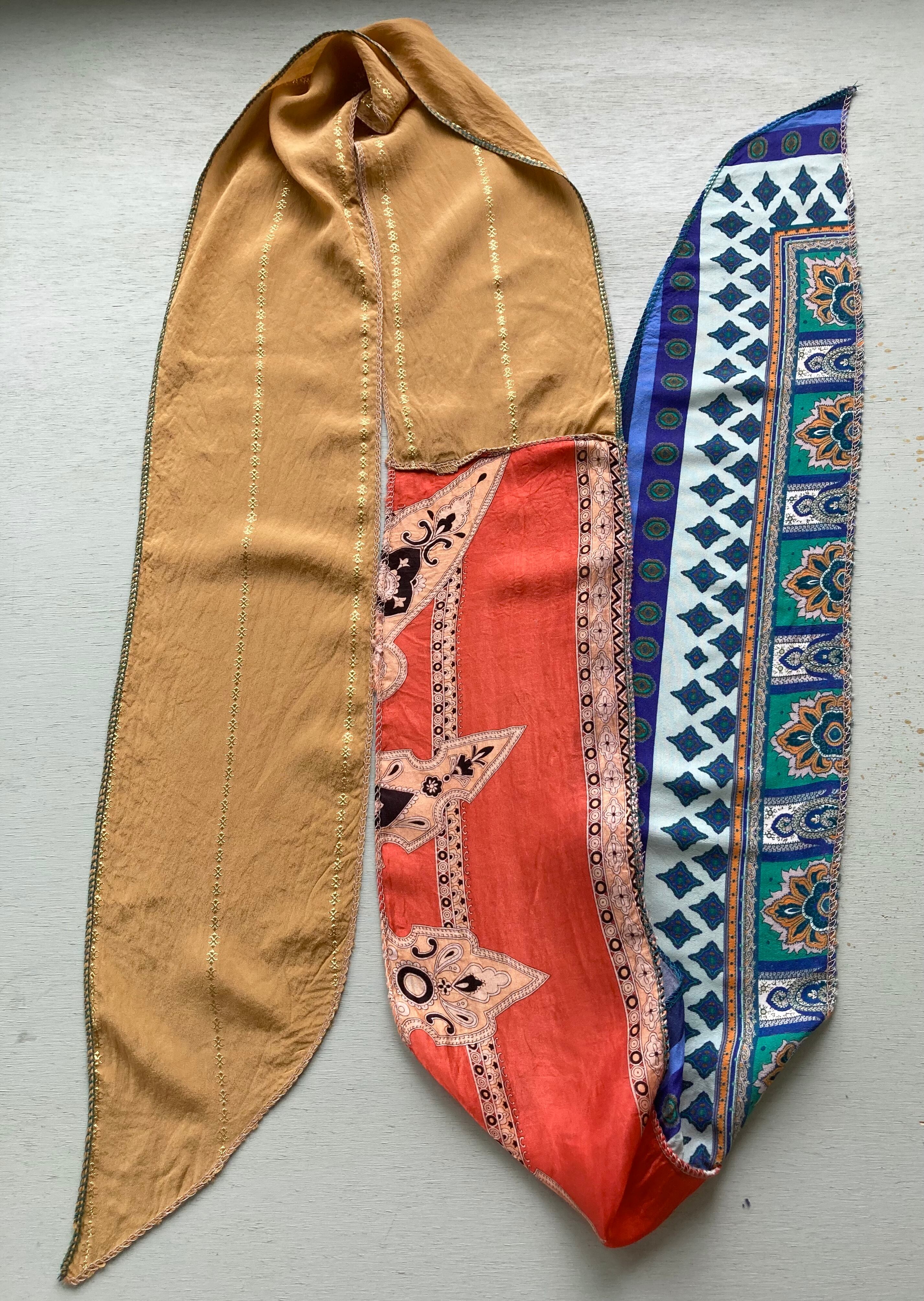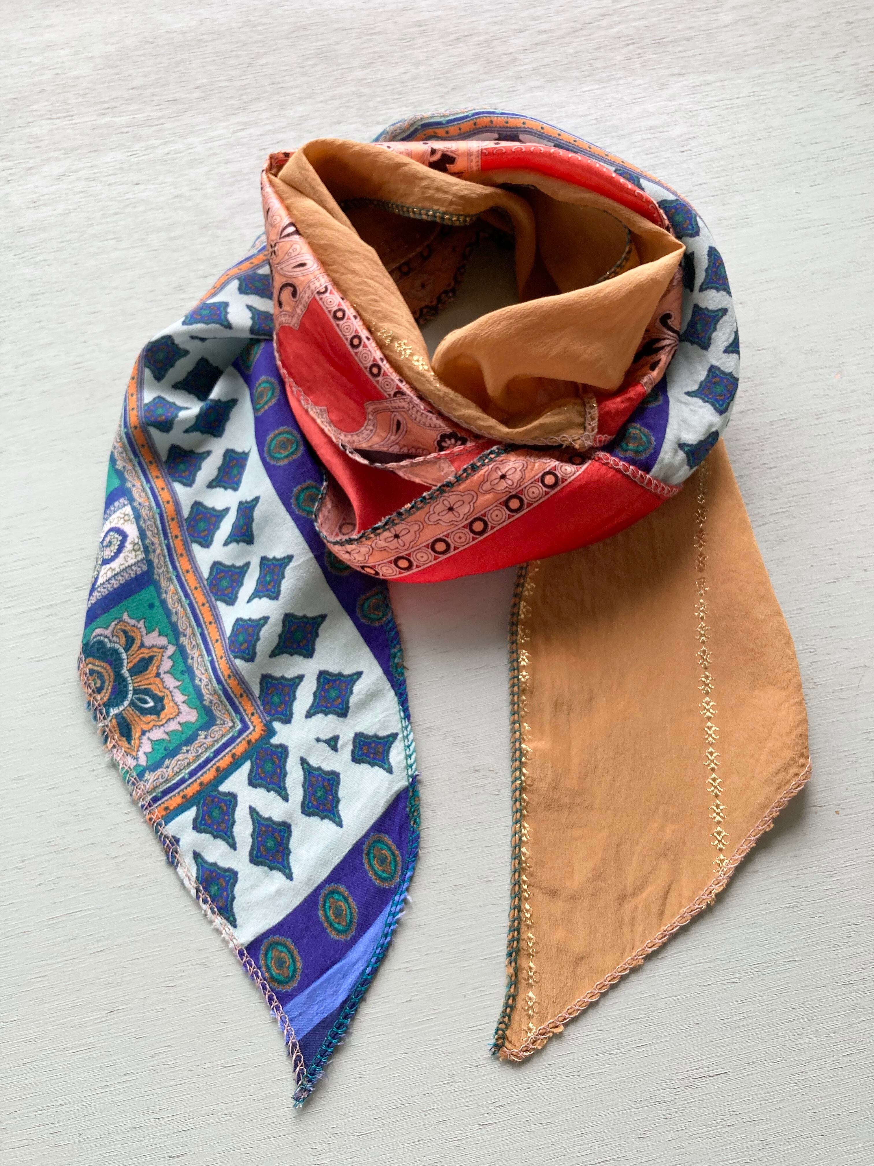 心地良く軽い素材メインでパッチワークしています。silk,cotton,ポリエステルなど