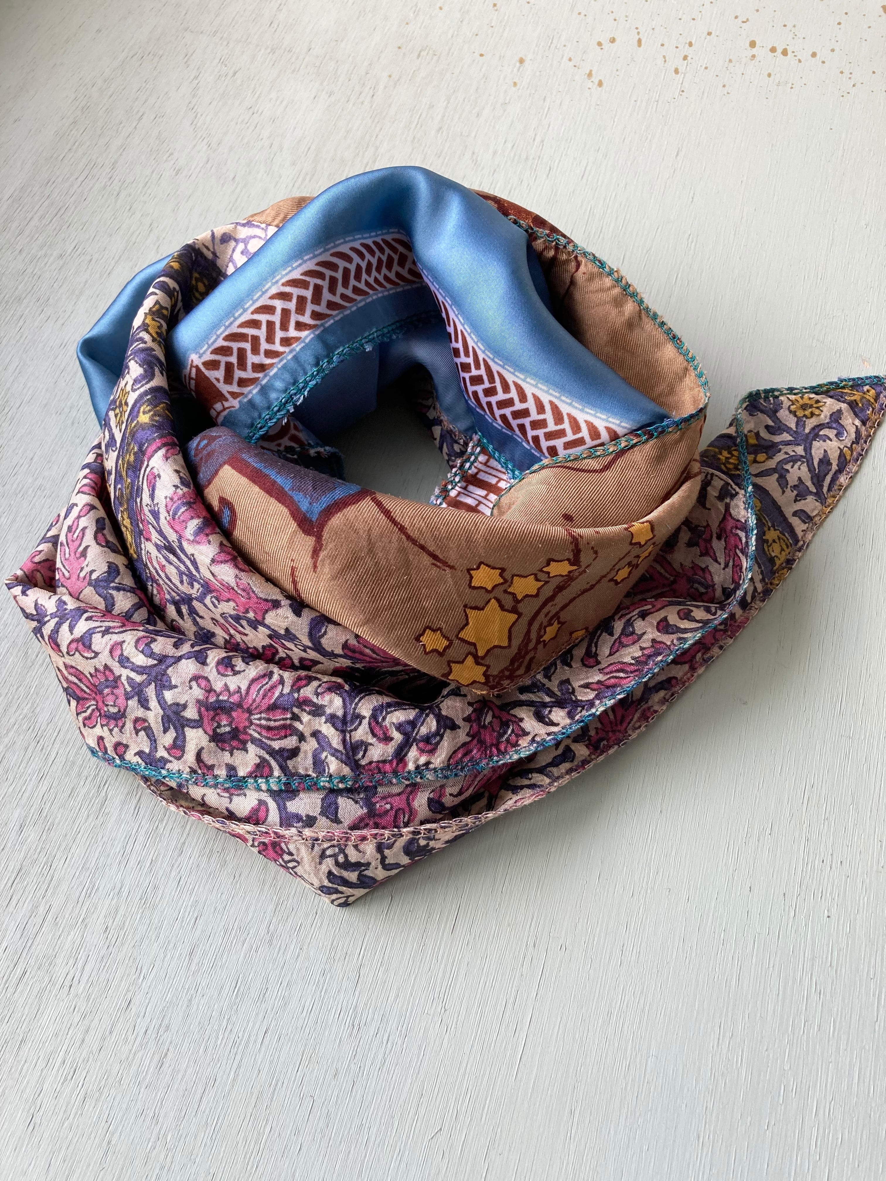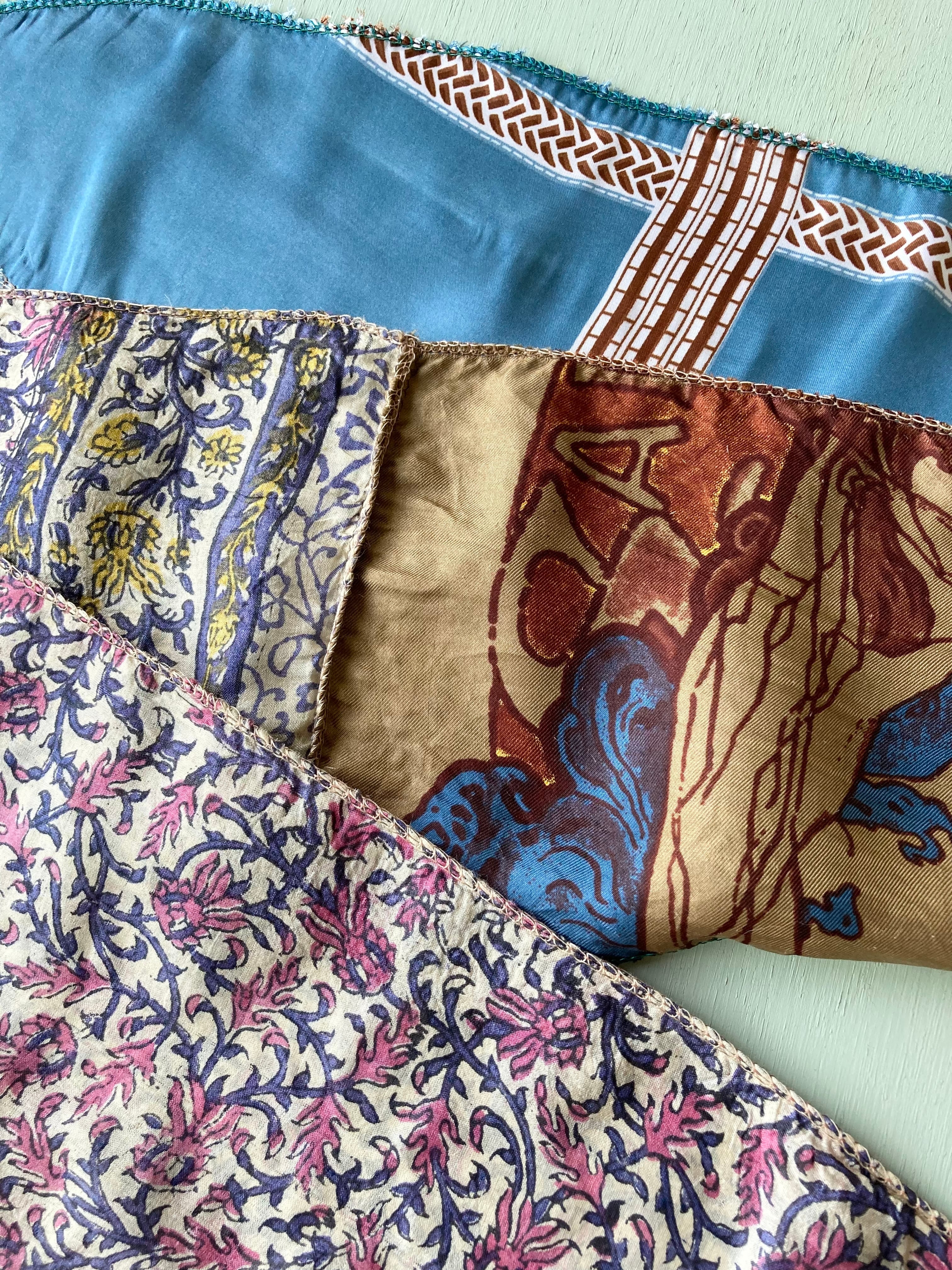 心地良く軽い素材メインでパッチワークしています。silk,cotton,ポリエステルなど