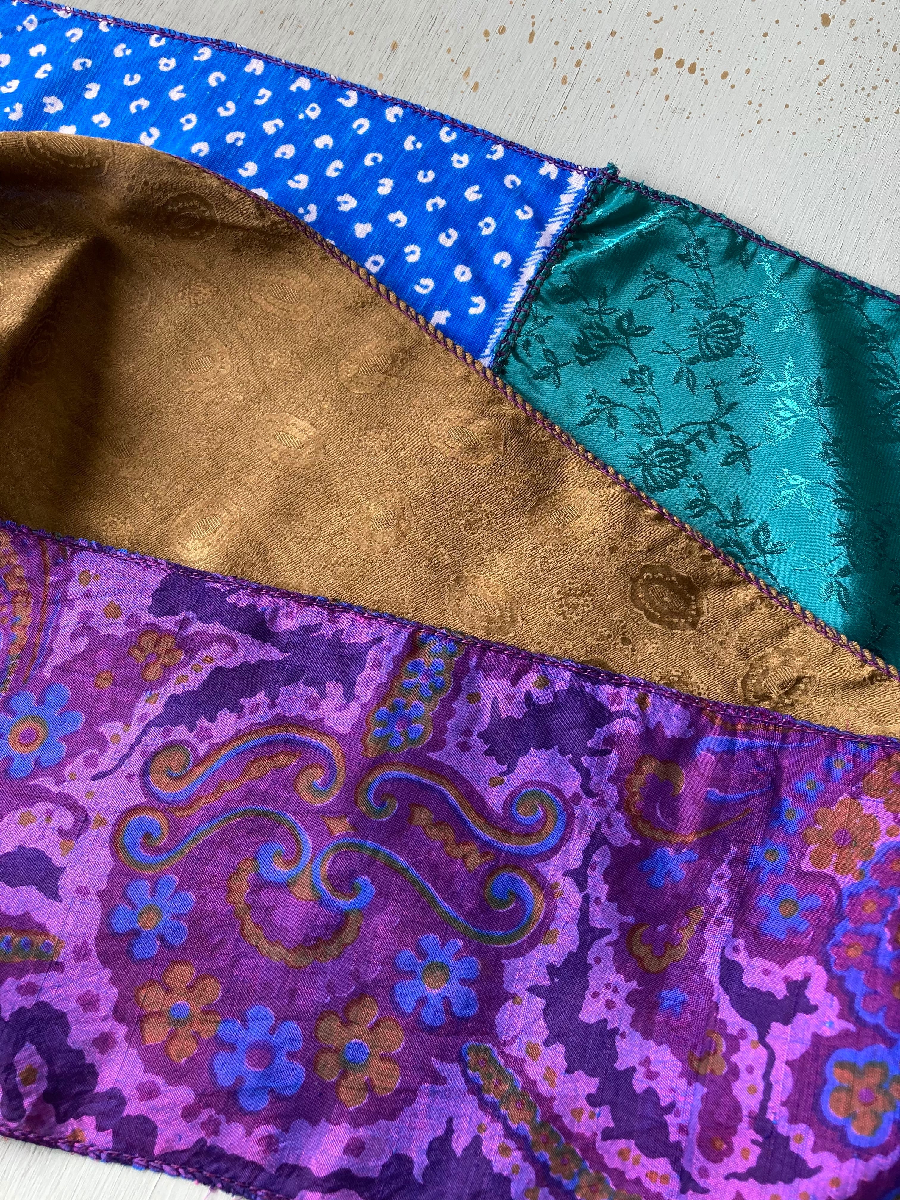 心地良く軽い素材メインでパッチワークしています。silk,cotton,ポリエステルなど