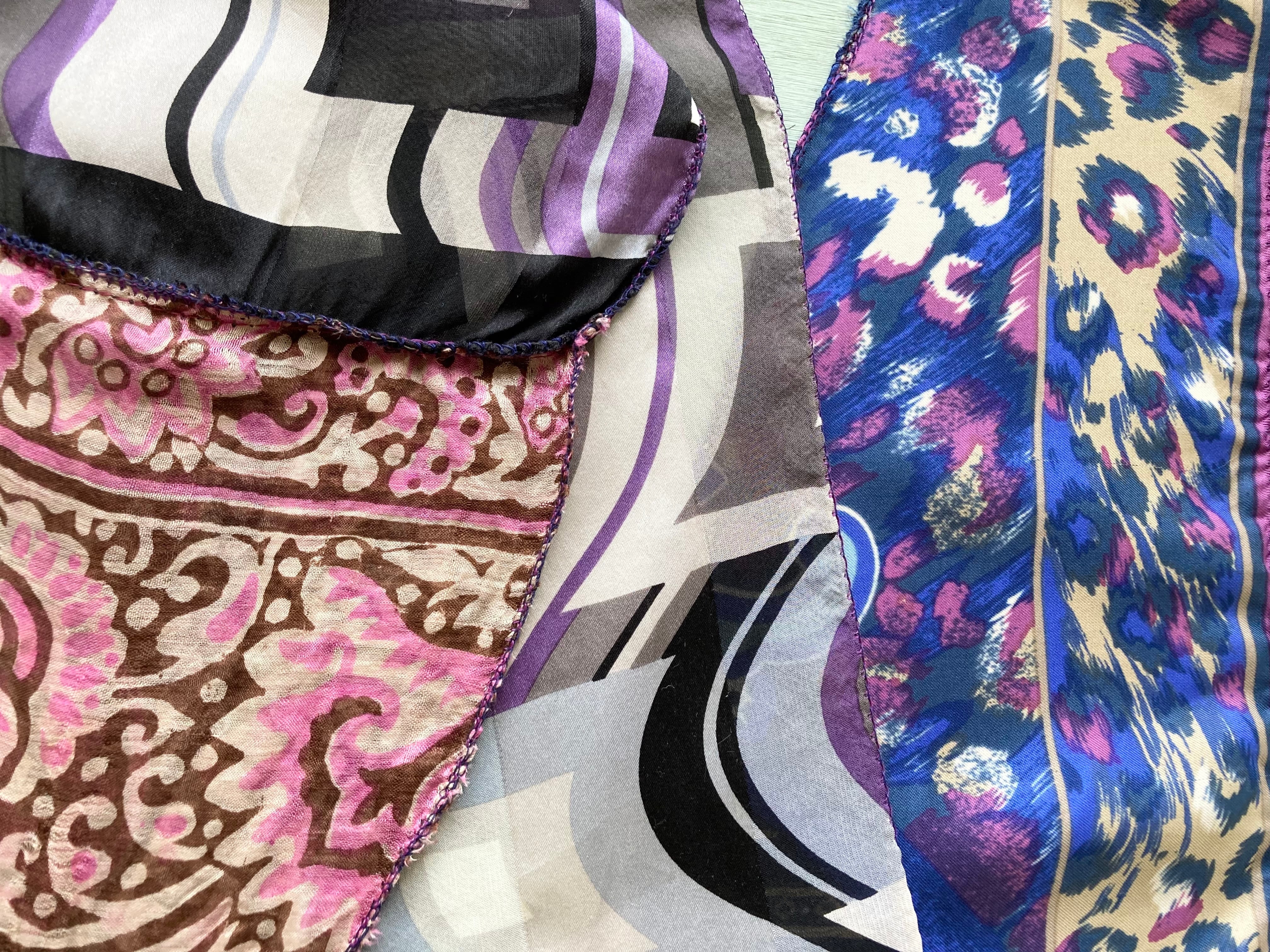 心地良く軽い素材メインでパッチワークしています。silk,cotton,ポリエステルなど