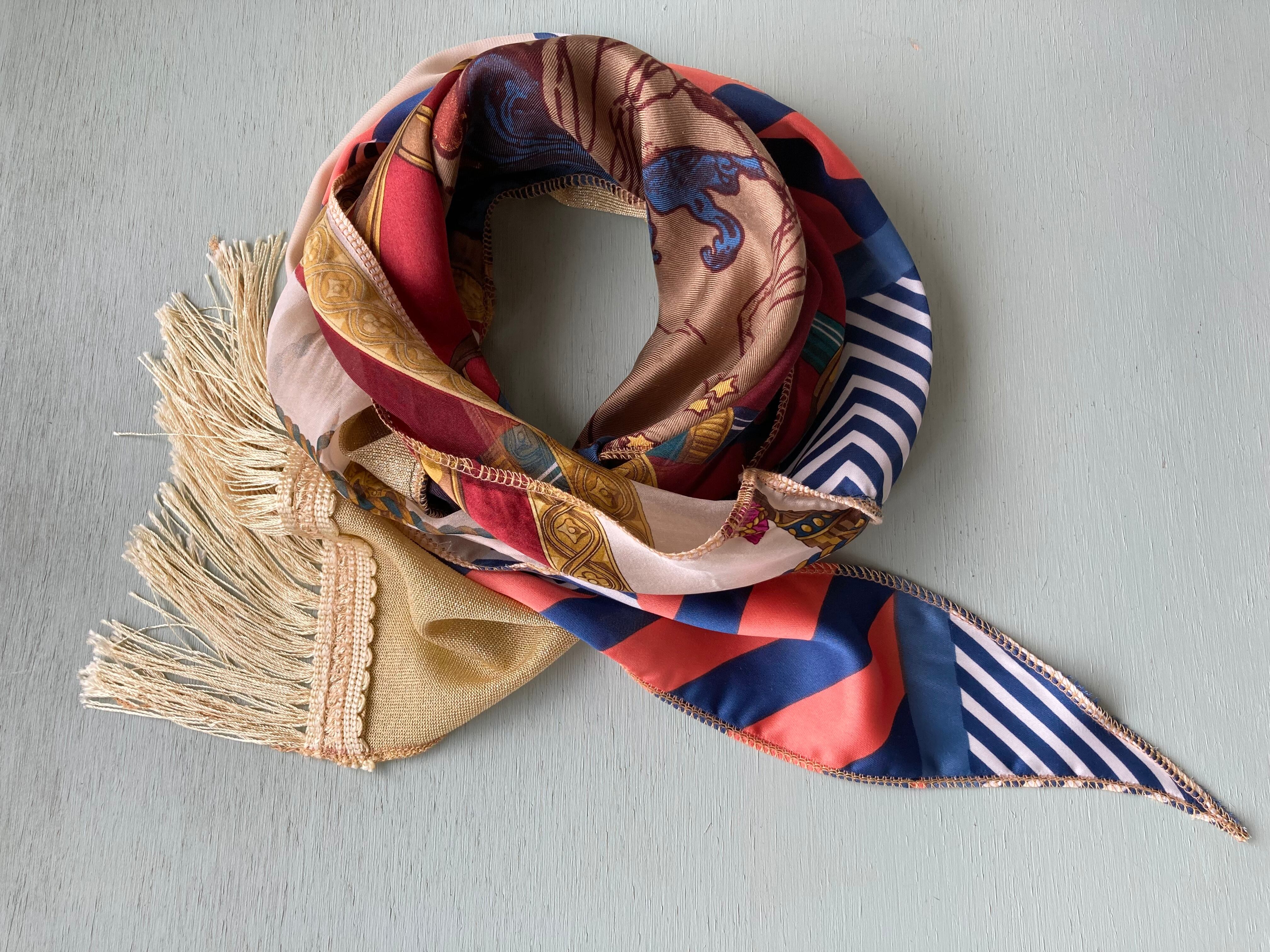 心地良く軽い素材メインでパッチワークしています。silk,cotton,ポリエステルなど