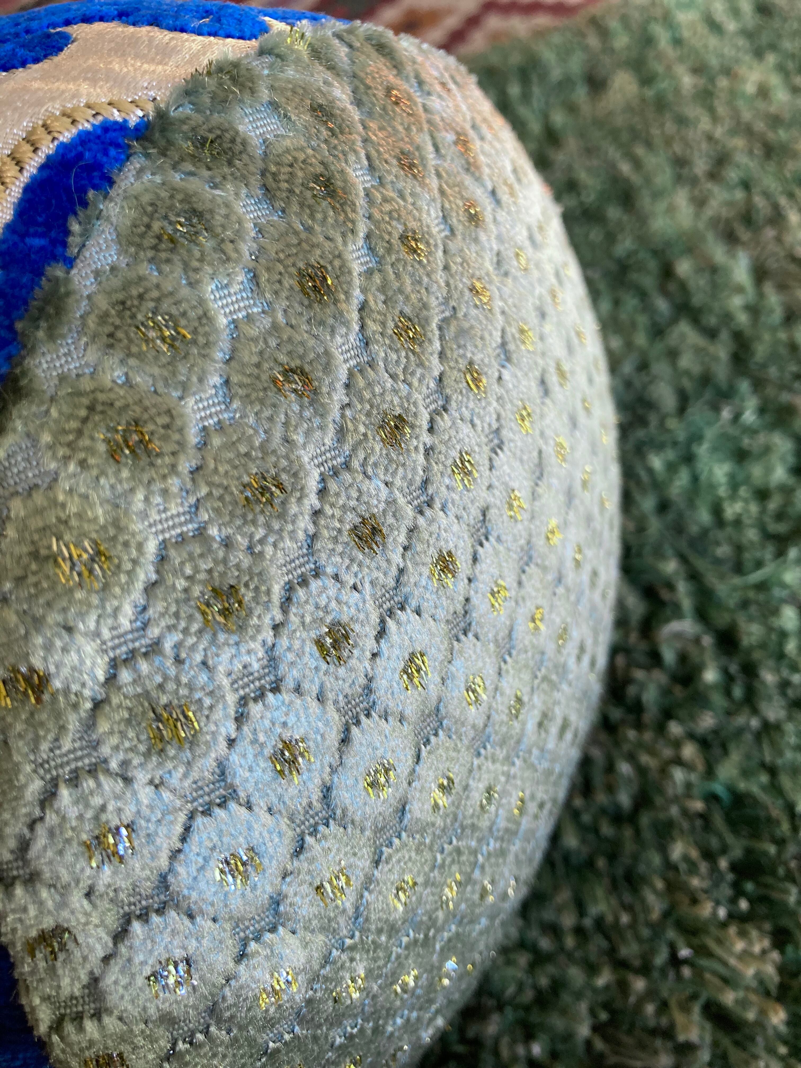 モロッコ直輸入の生地で弾力のあるゴージャスなクッションに仕上げています。