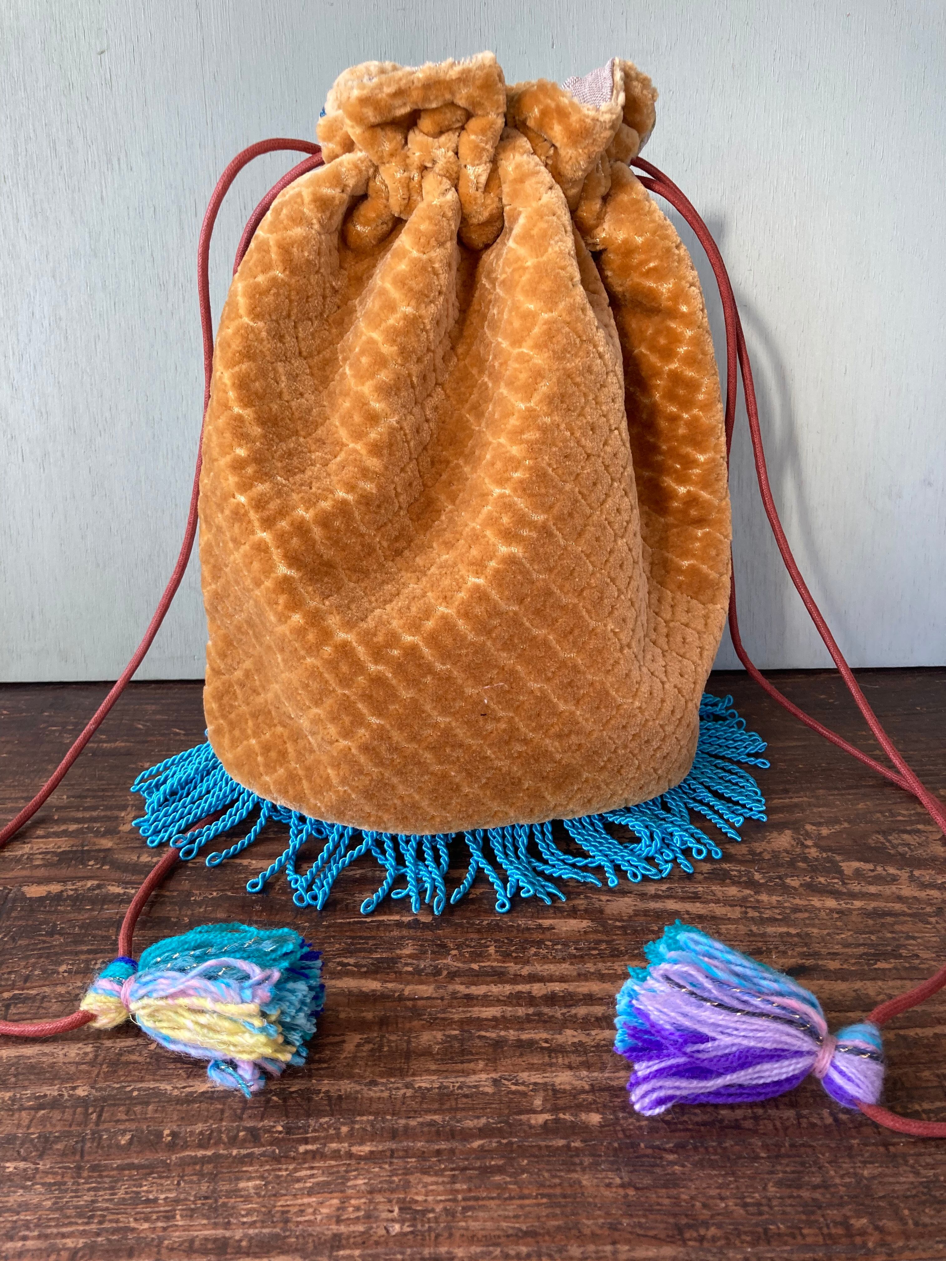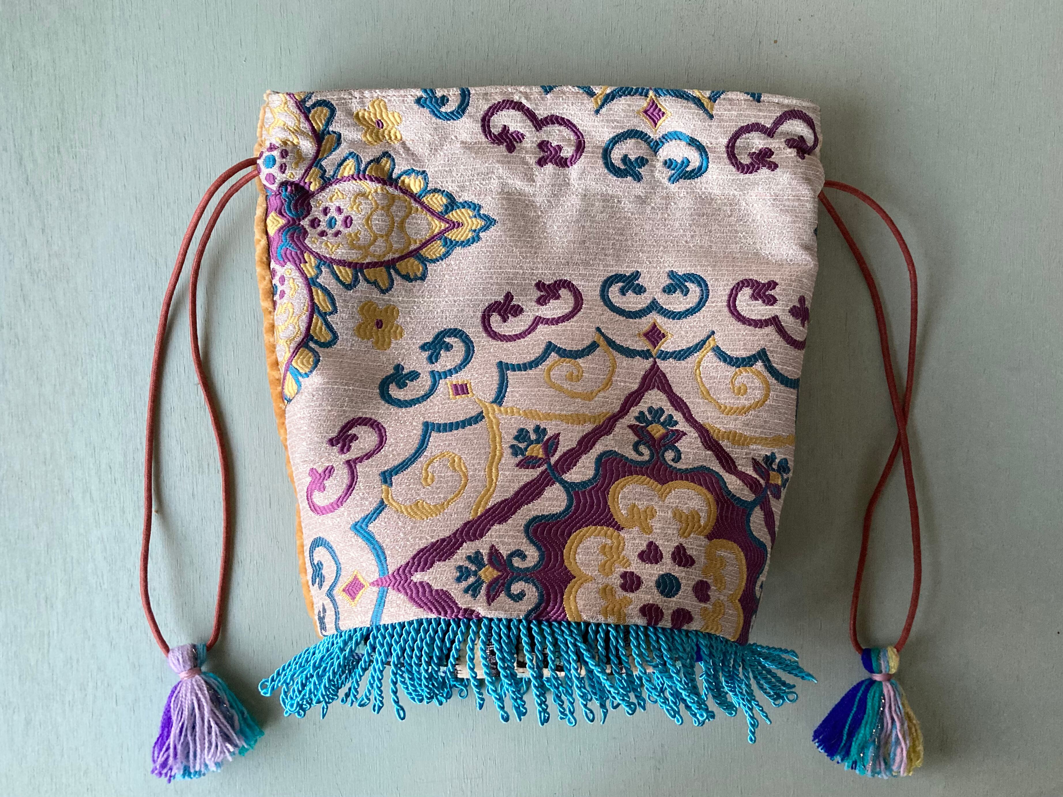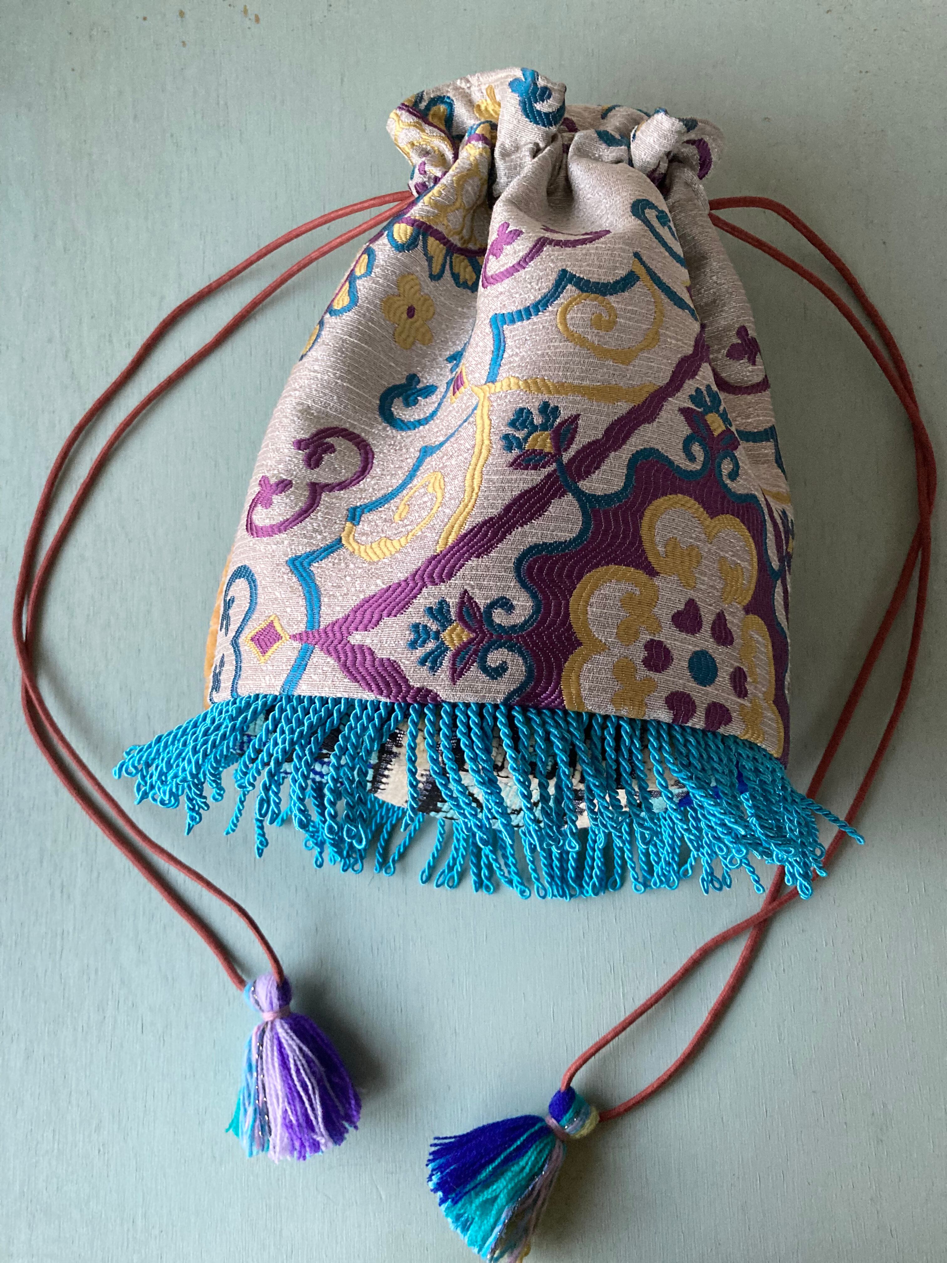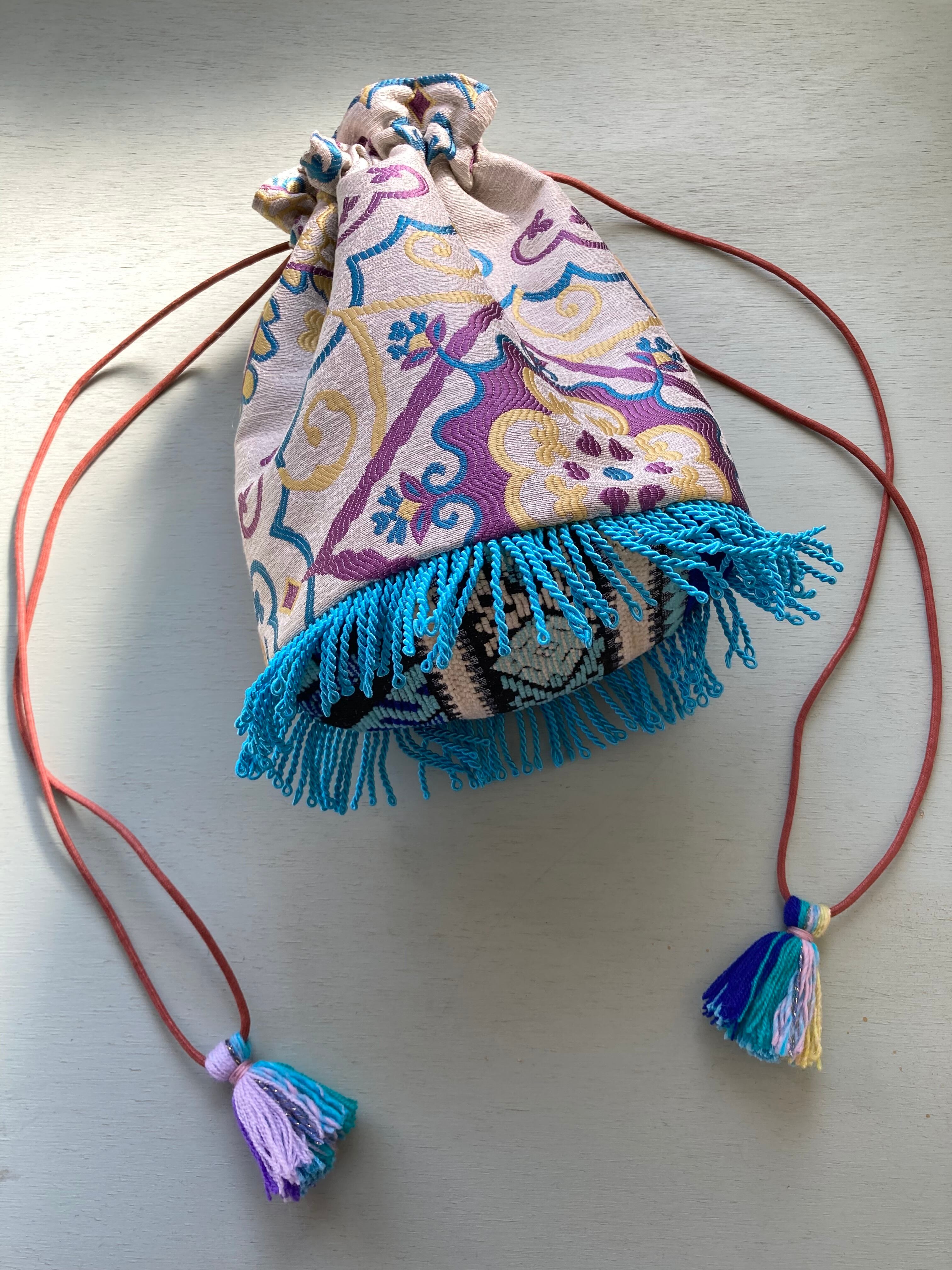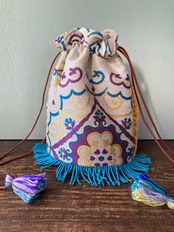 Popな色合いと柄がかわいいモロッコ生地で制作した巾着型バッグです。