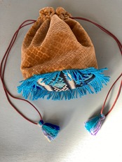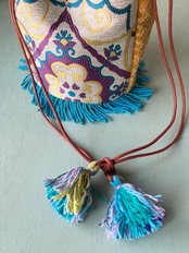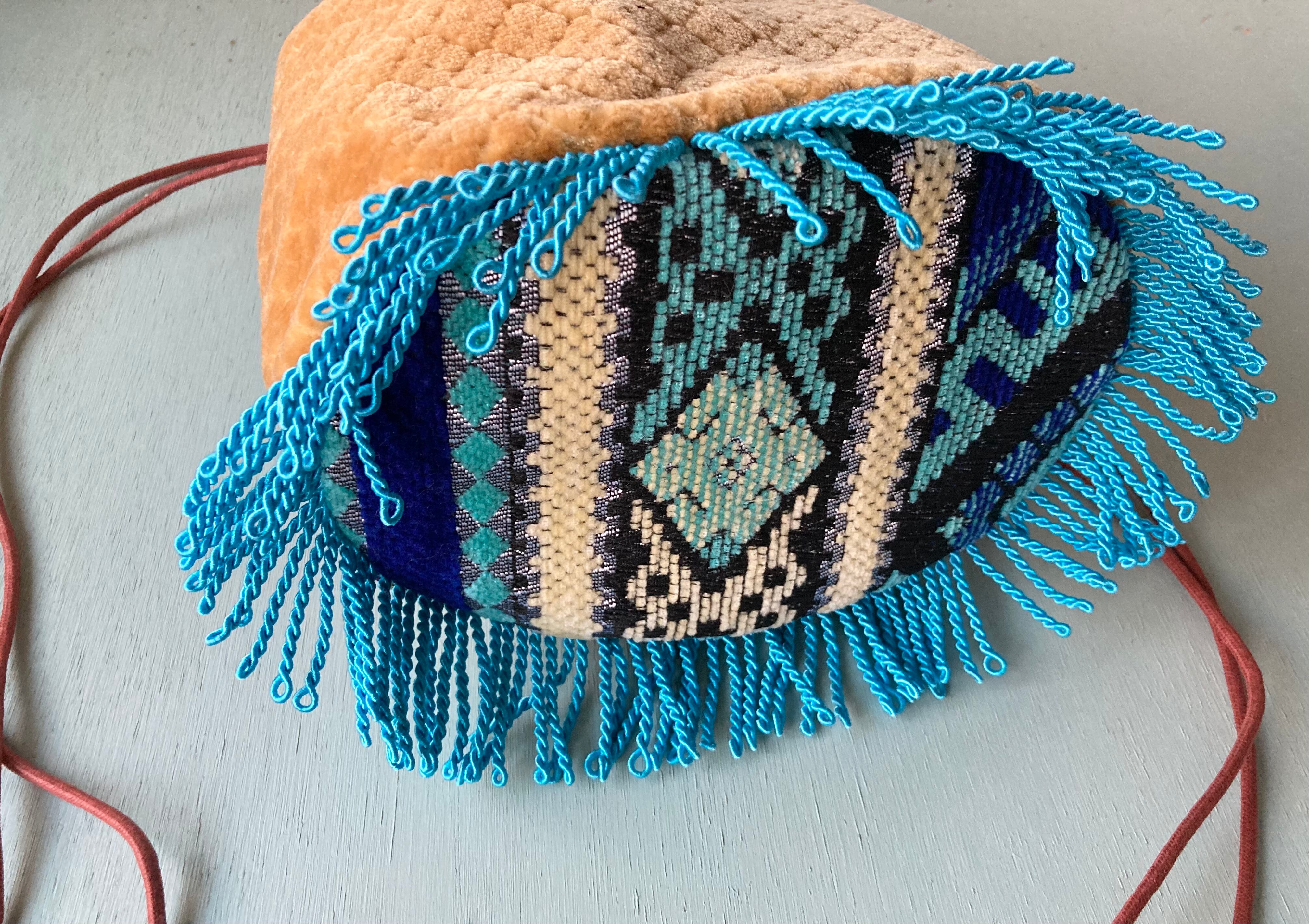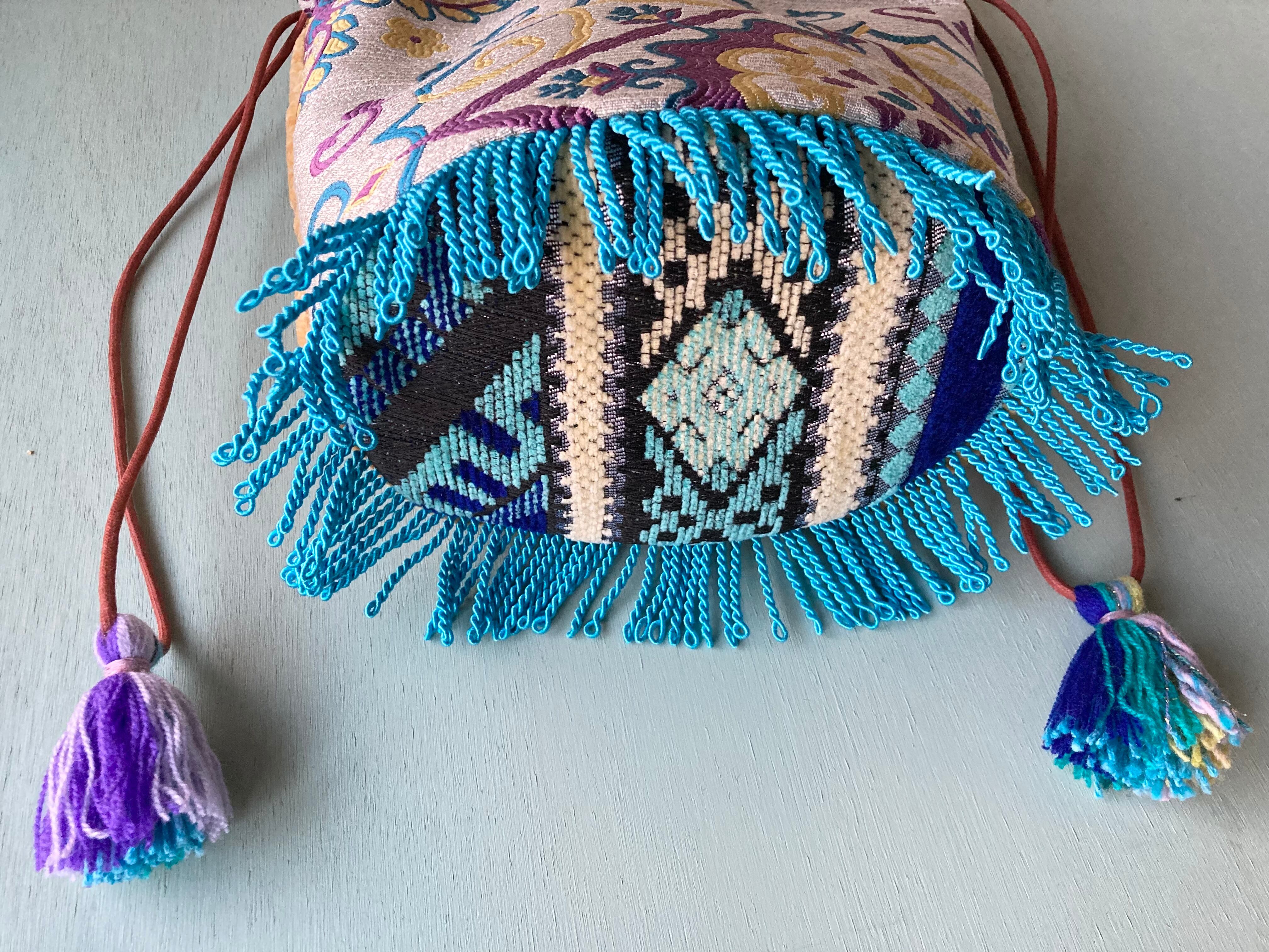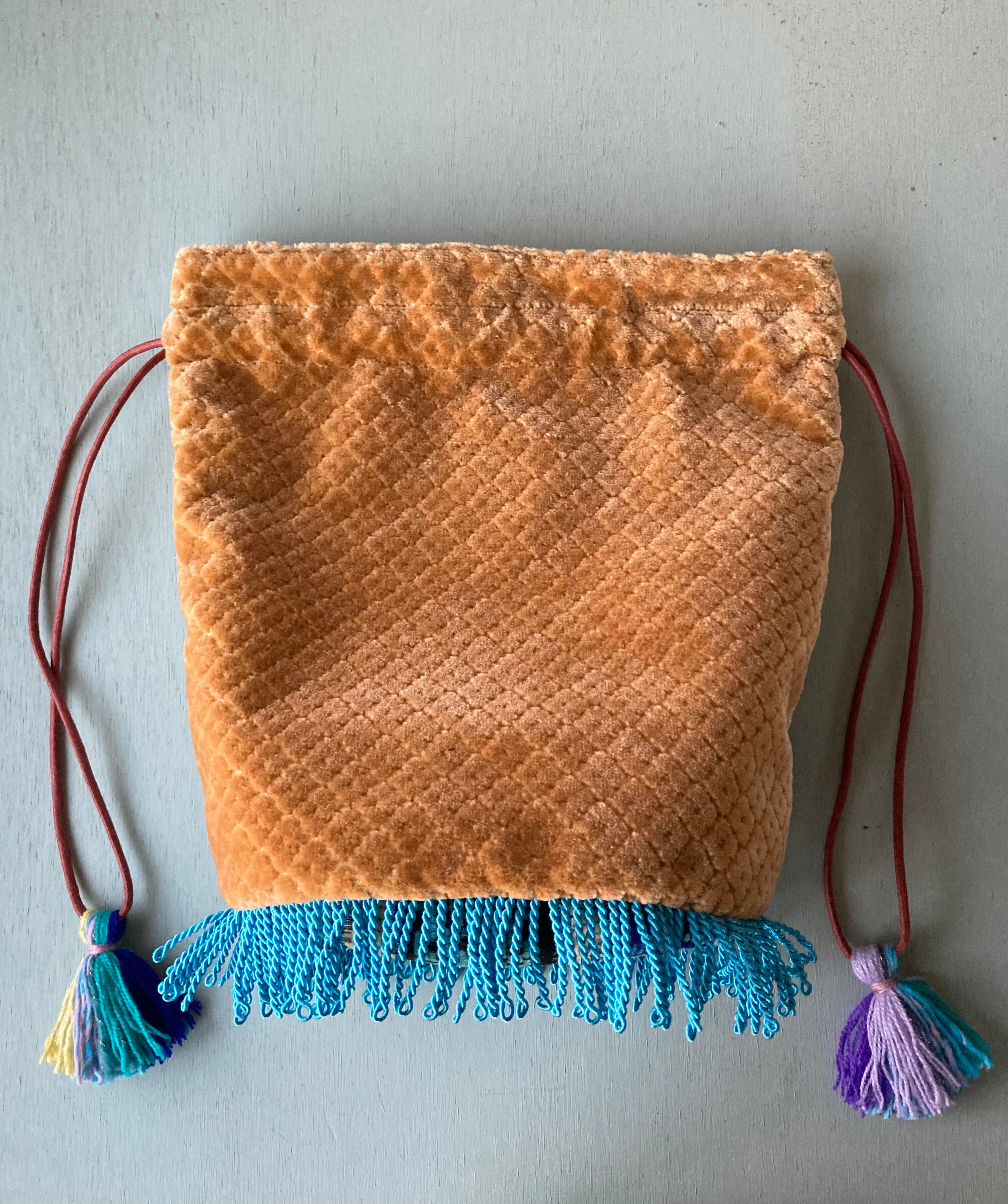Popな色合いと柄がかわいいモロッコ生地で制作した巾着型バッグです。