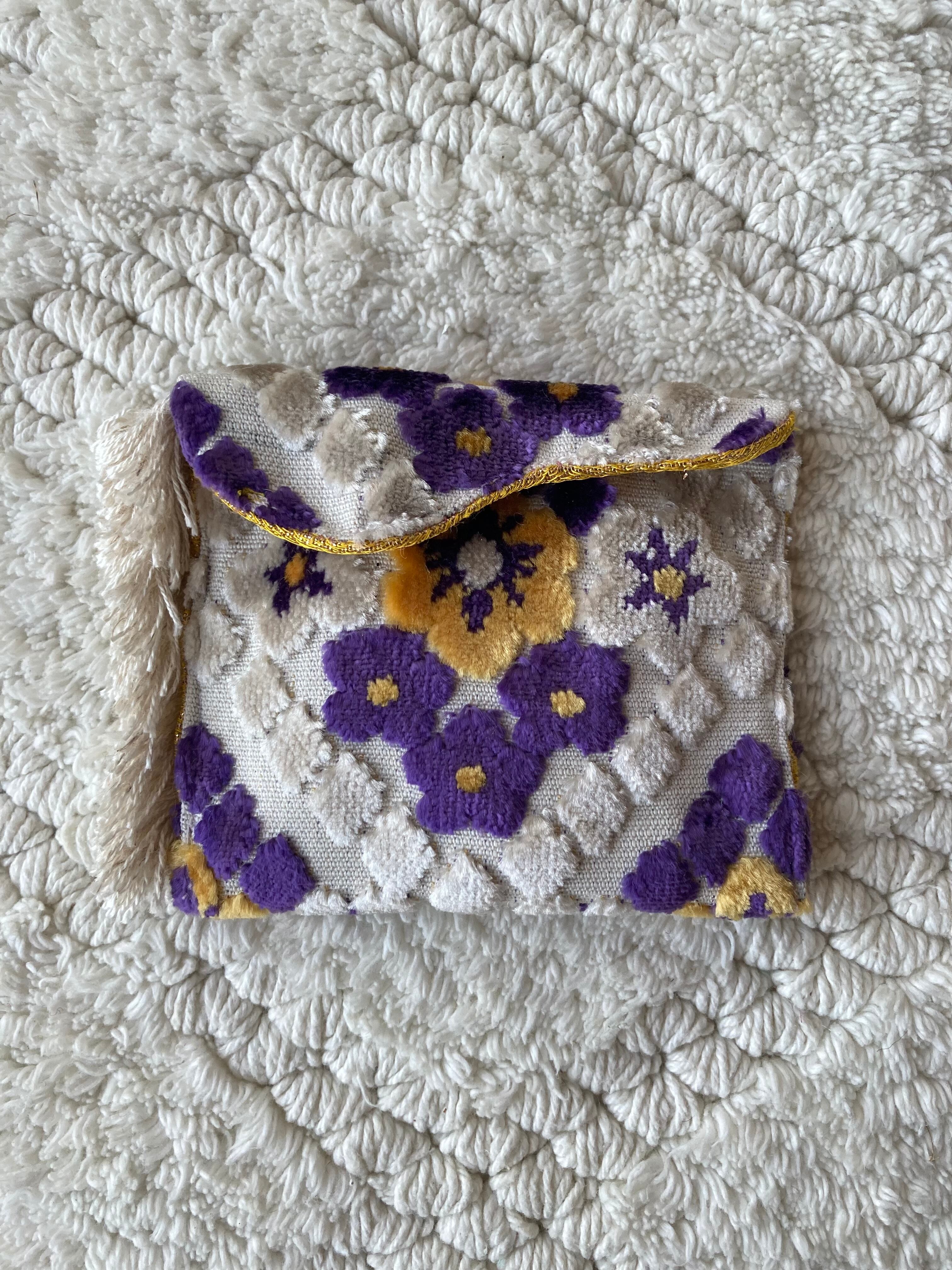 モロッコ生地は厚めで中身が守られるので、繊細なアクセサリーやモバイル充電器、携帯用香水など、、、旅行などの出先でとても重宝します!