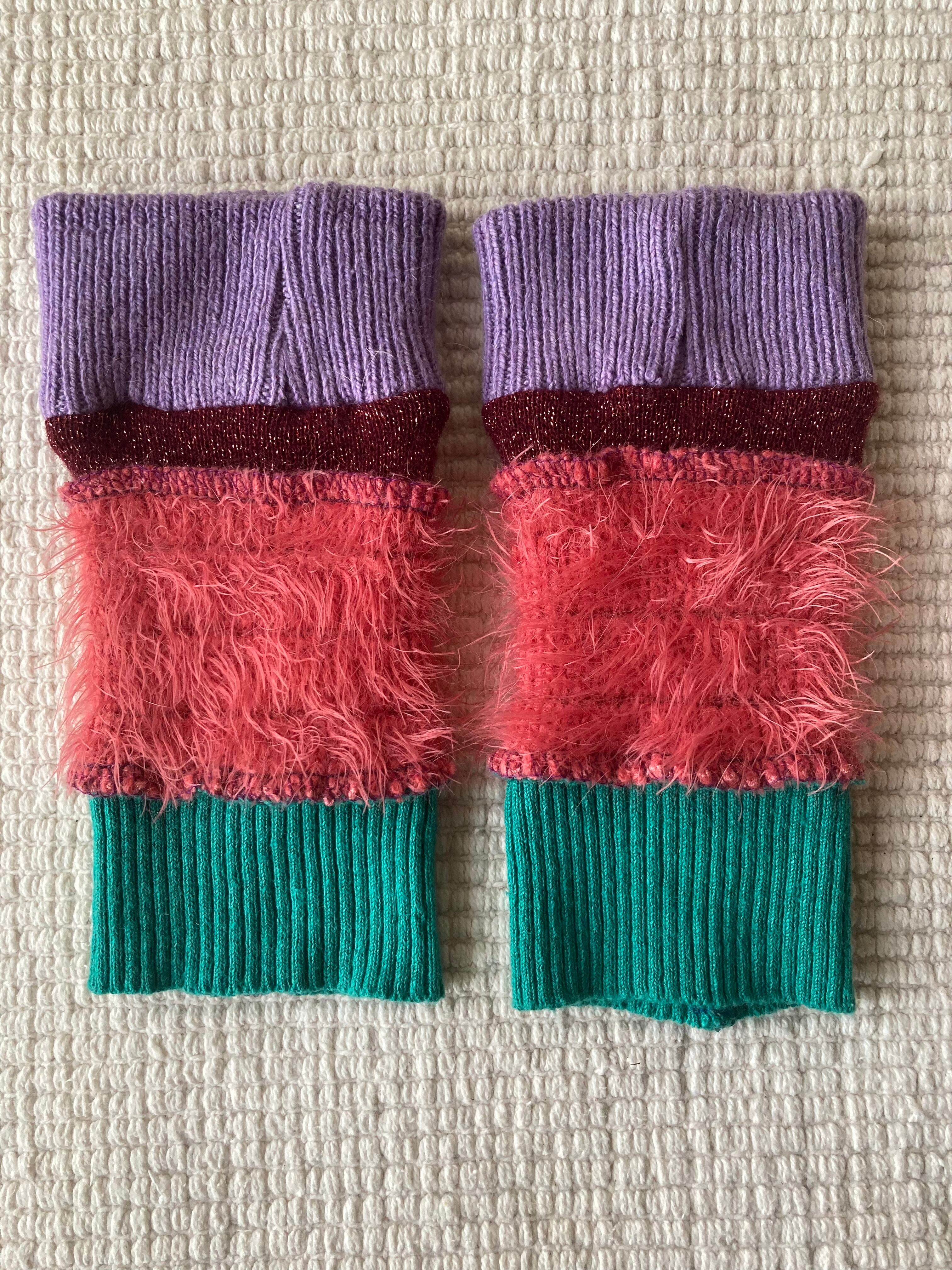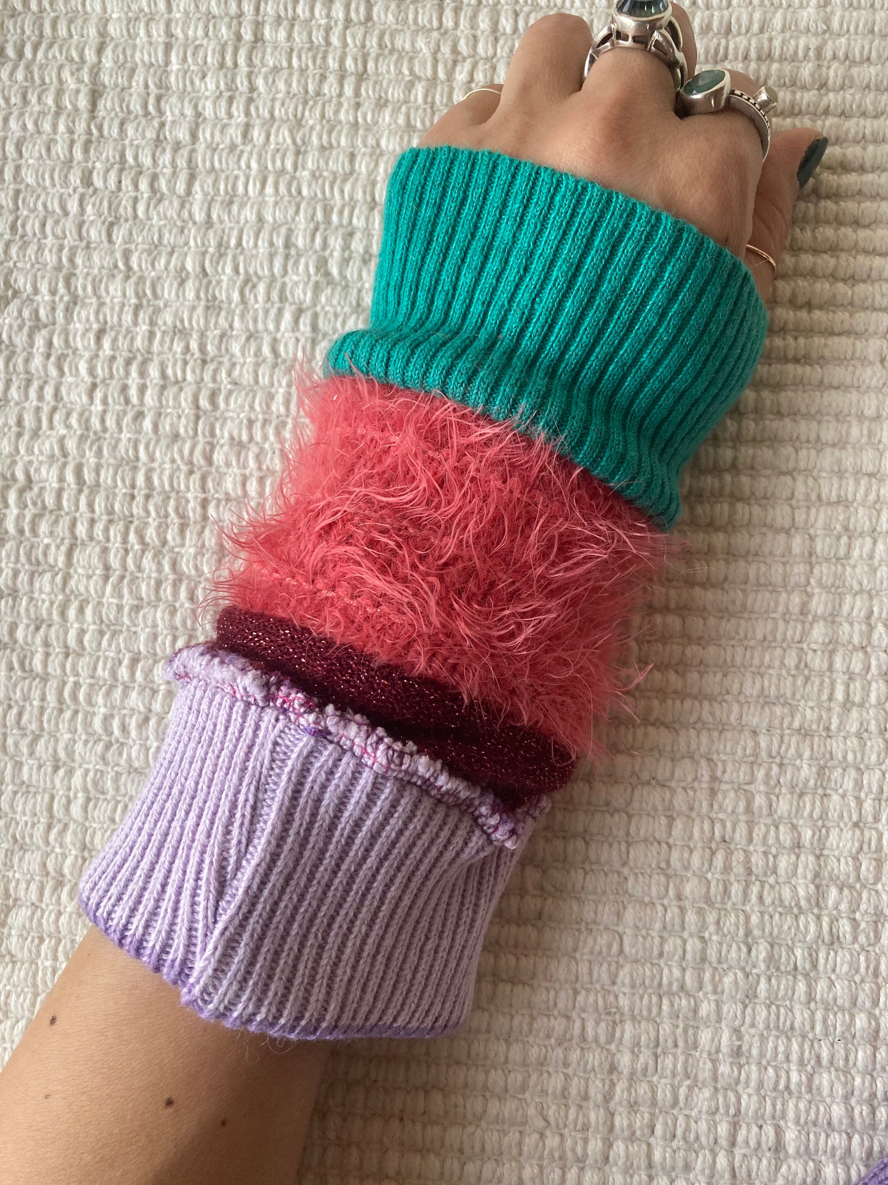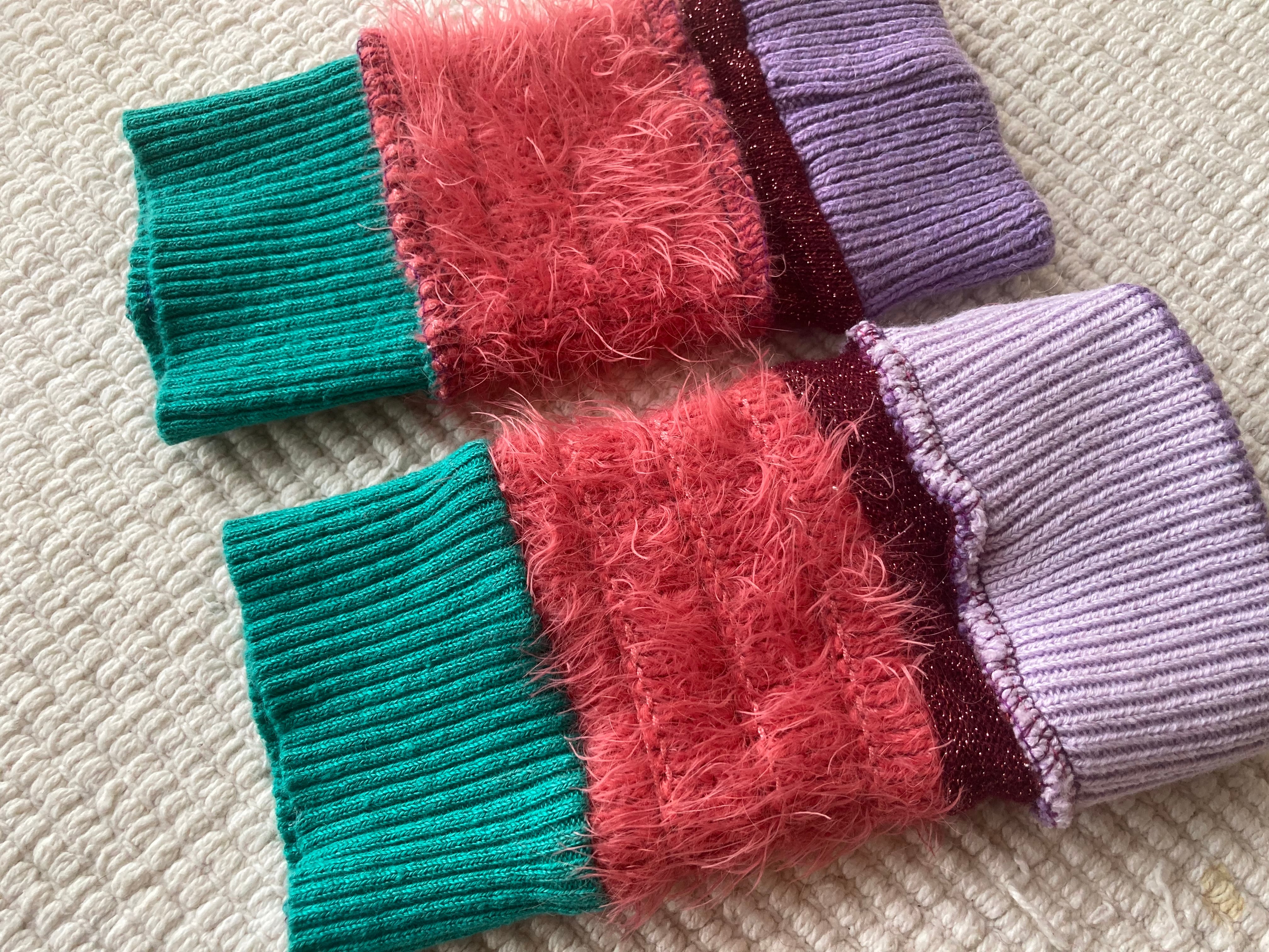 Arm warmers☆pink/turquoise 麻knit mix