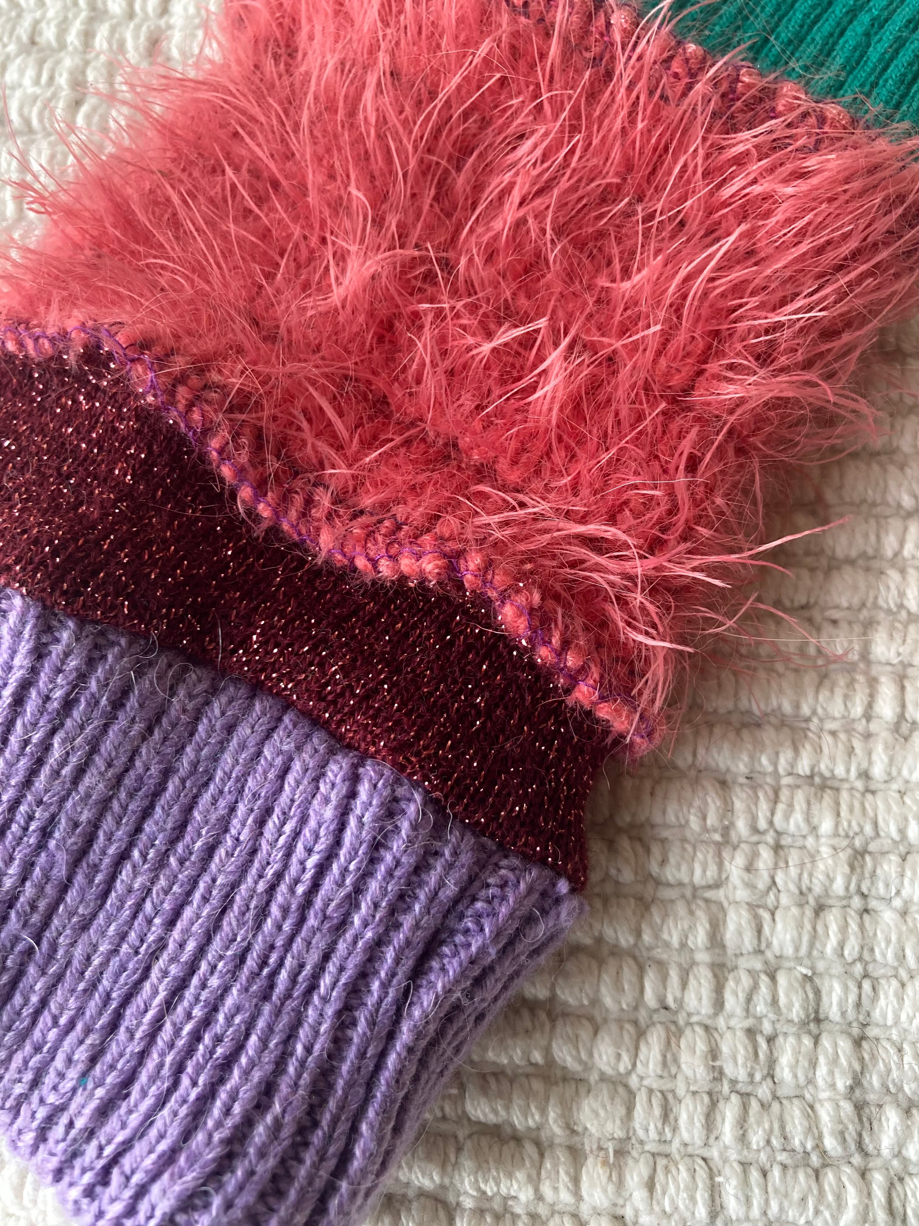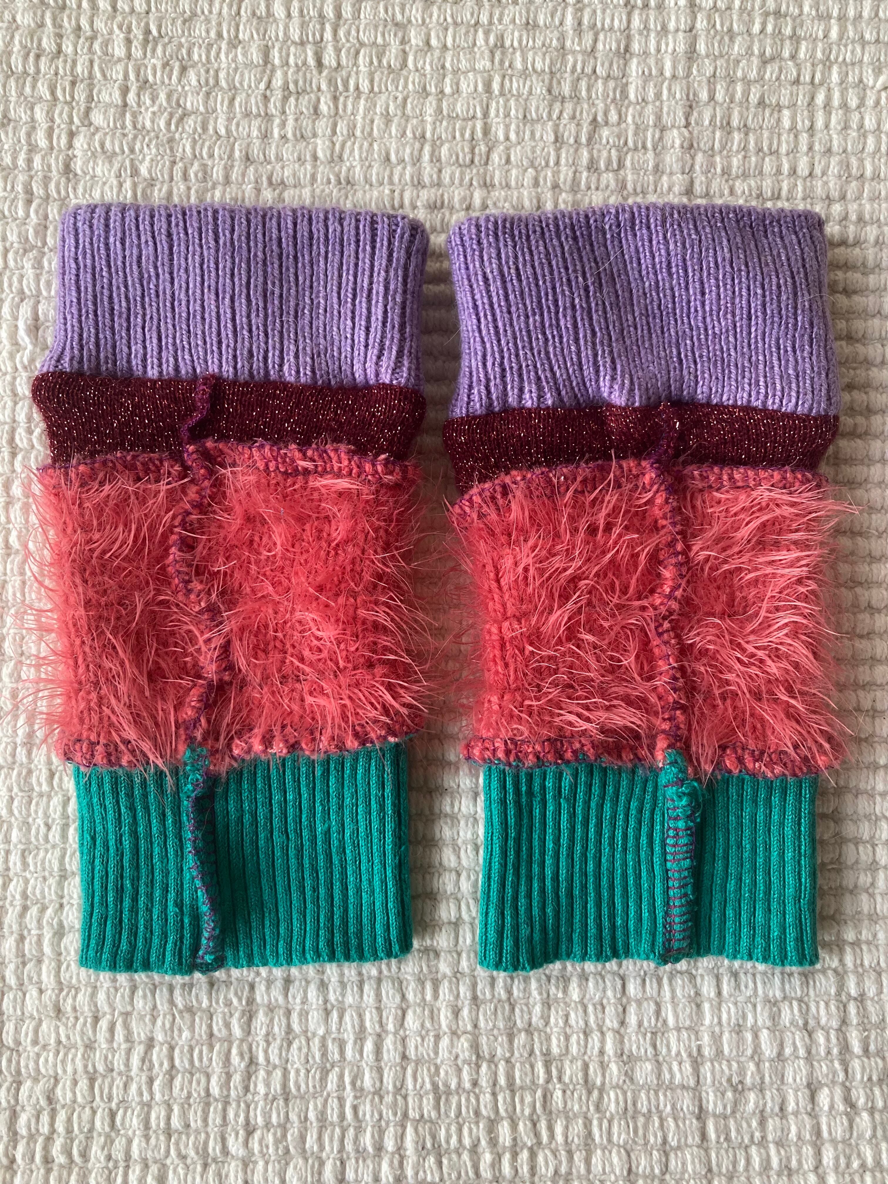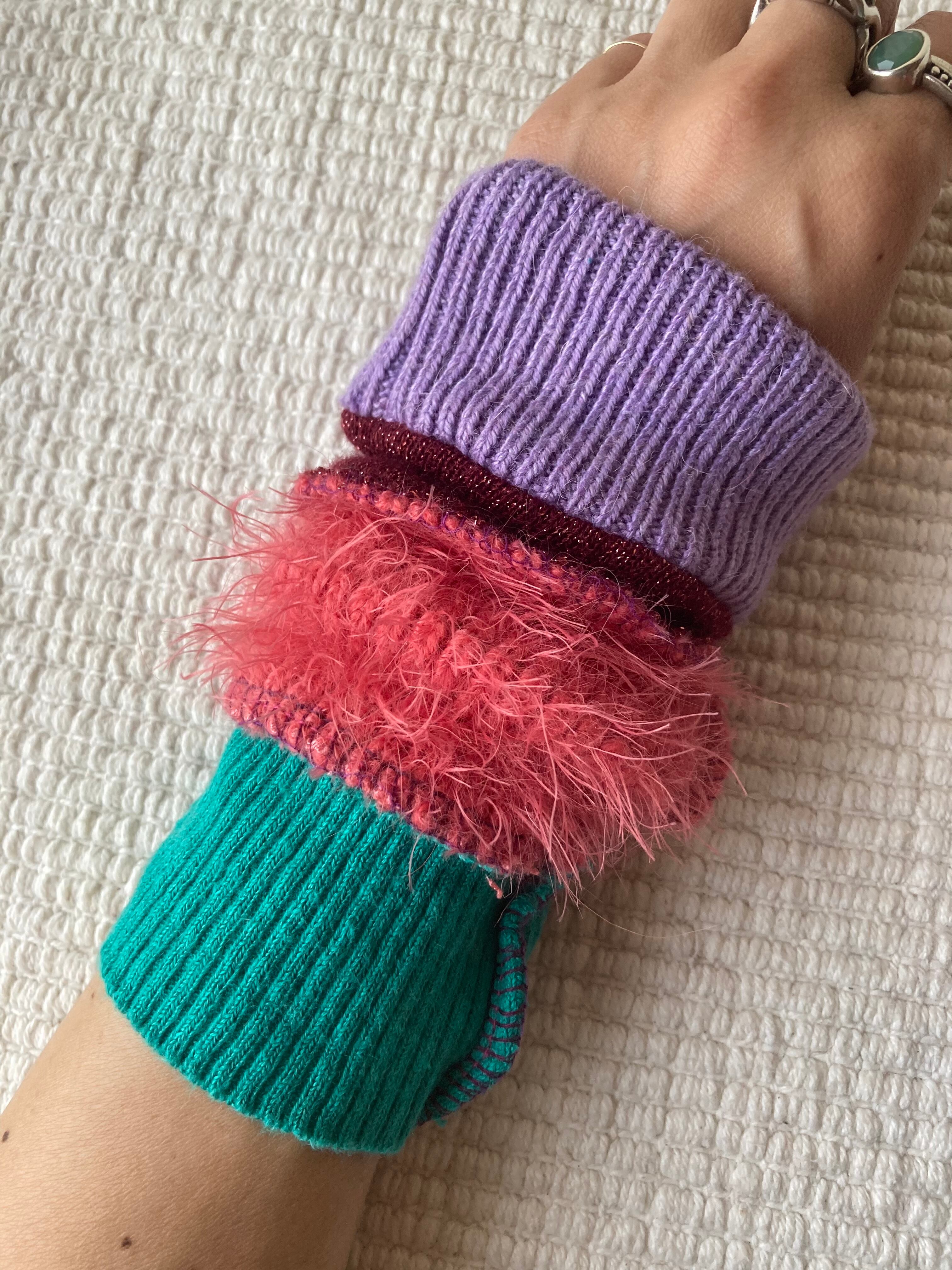 Arm warmers☆pink/turquoise 麻knit mix