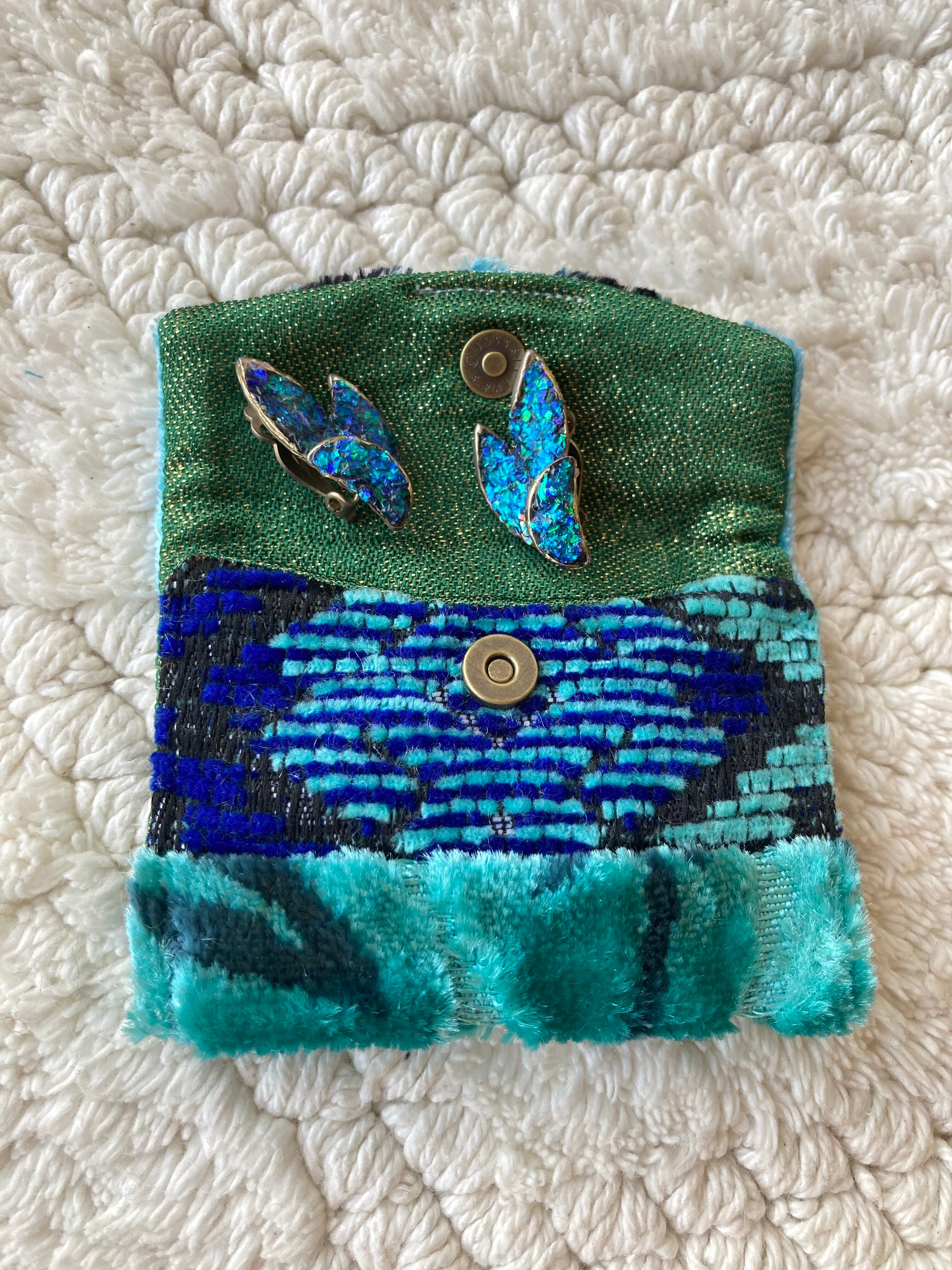 モロッコ生地は厚めで中身が守られるので、繊細なアクセサリーやモバイル充電器、携帯用香水など、、、旅行などの出先でとても重宝します!
