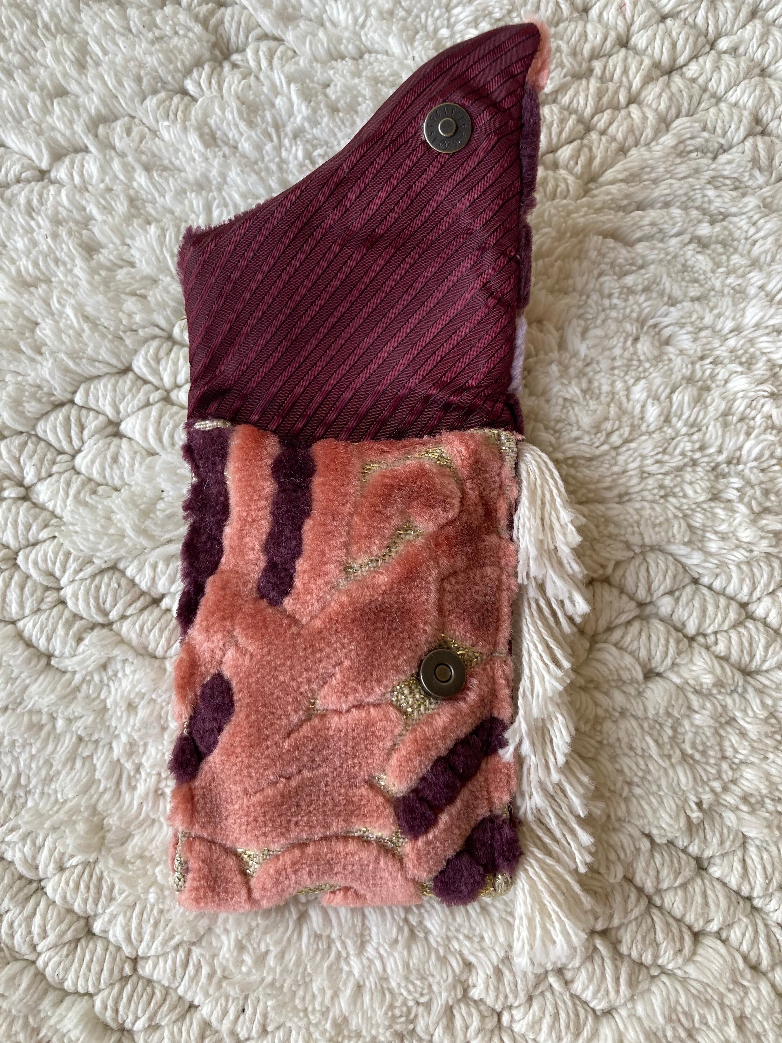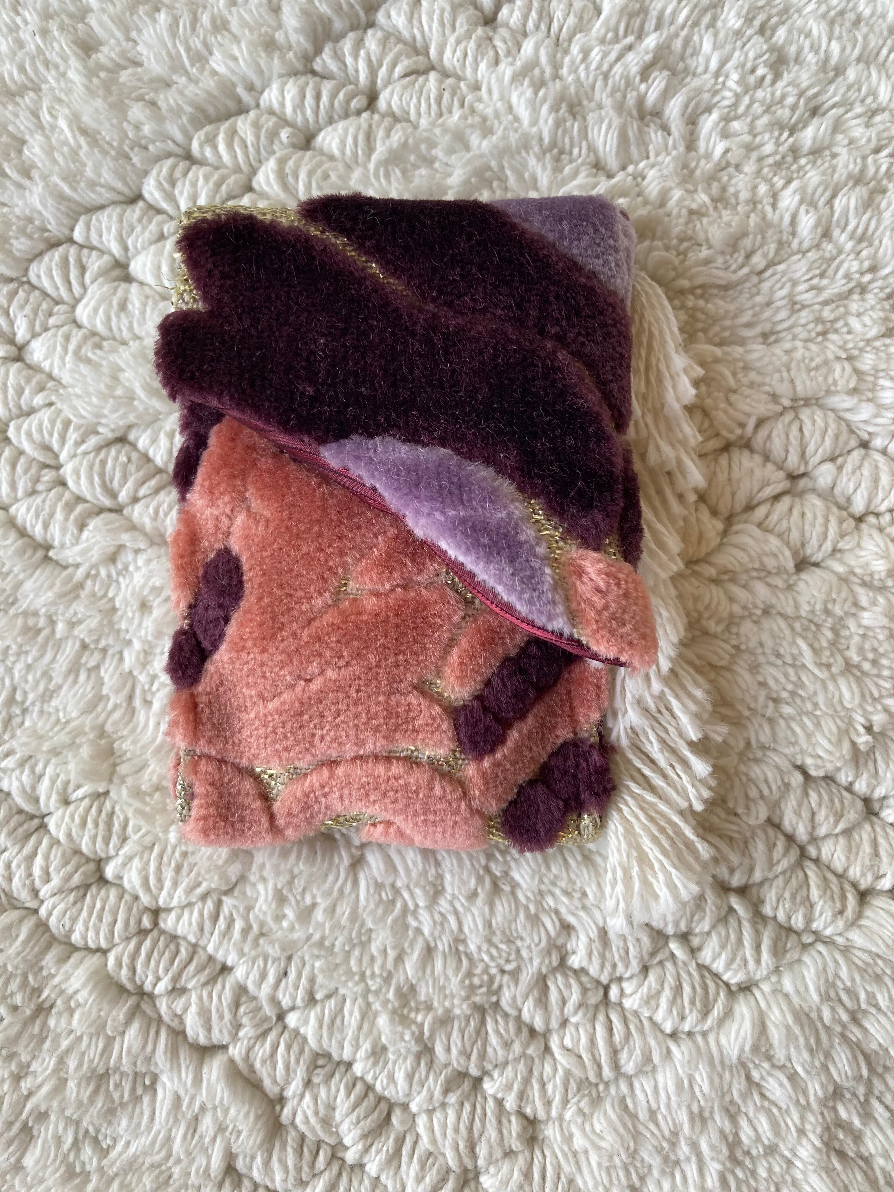 モロッコ生地は厚めで中身が守られるので、繊細なアクセサリーやモバイル充電器、携帯用香水など、、、旅行などの出先でとても重宝します!