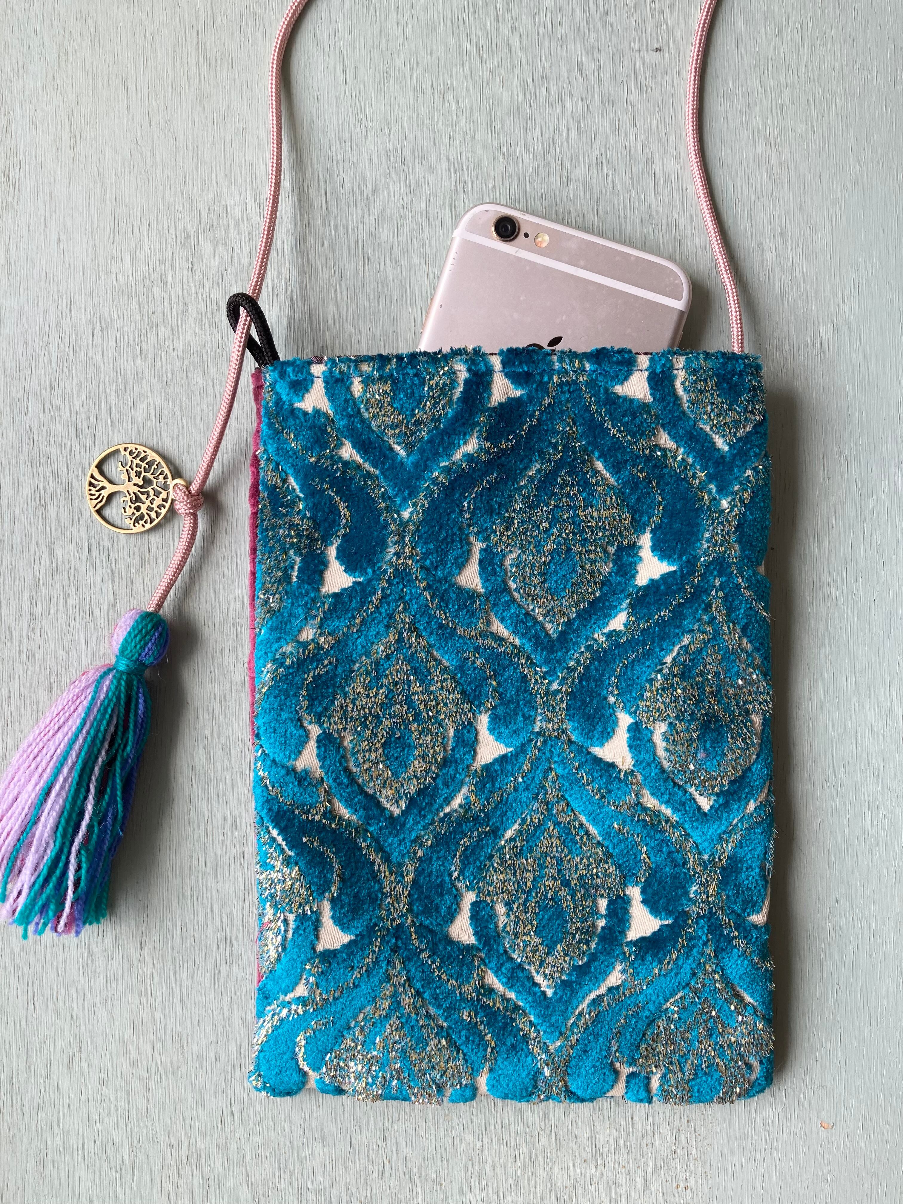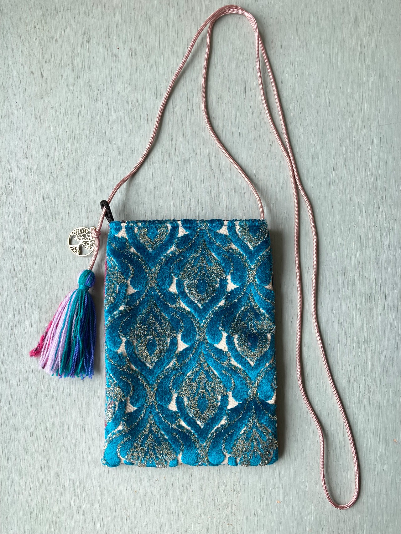 モロッコ生地で作ったミニサコッシュです。