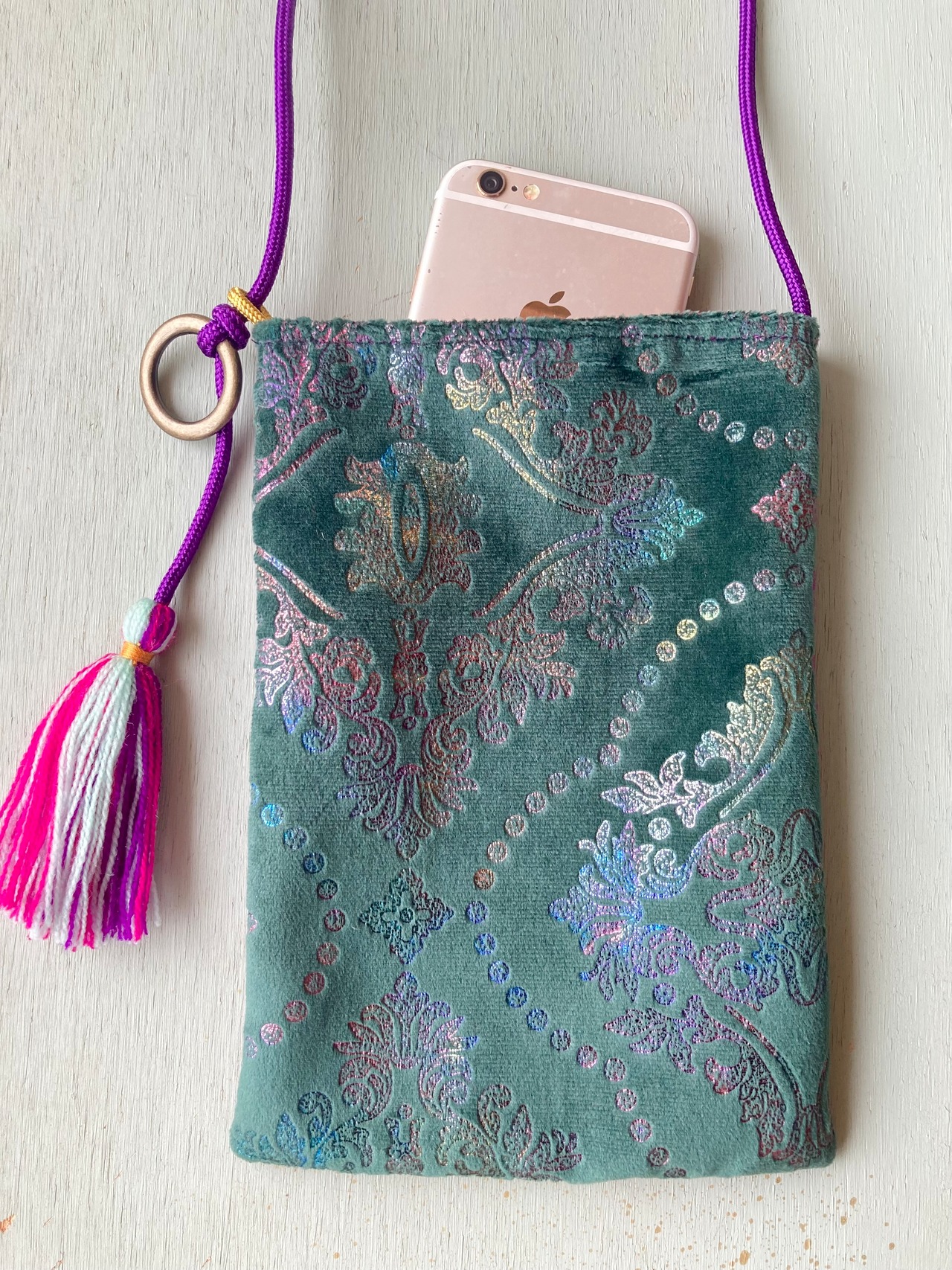 モロッコ生地で作ったミニサコッシュです。