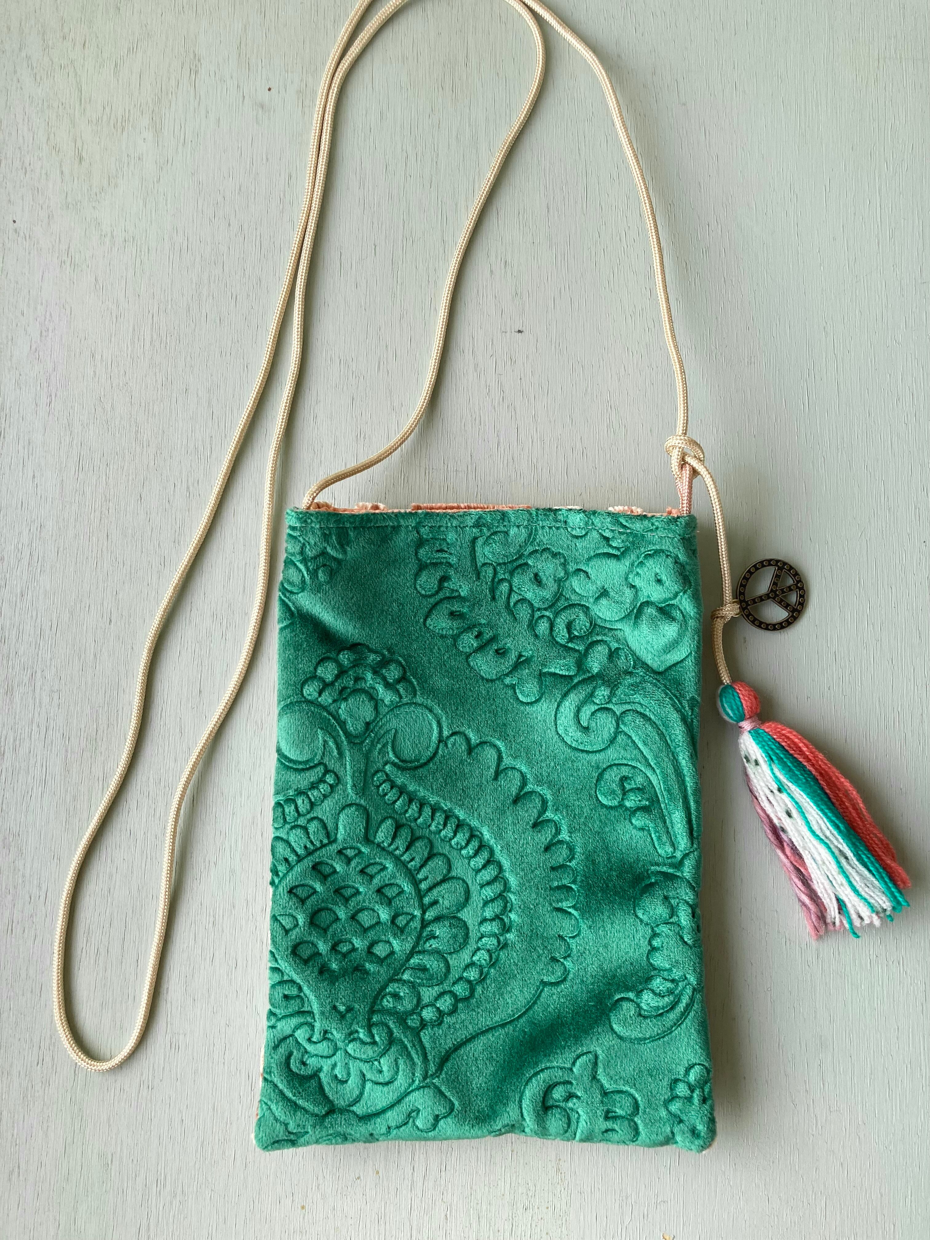 ヒモの長さは調節可能、お好きな長さで結んでご使用いただけます。