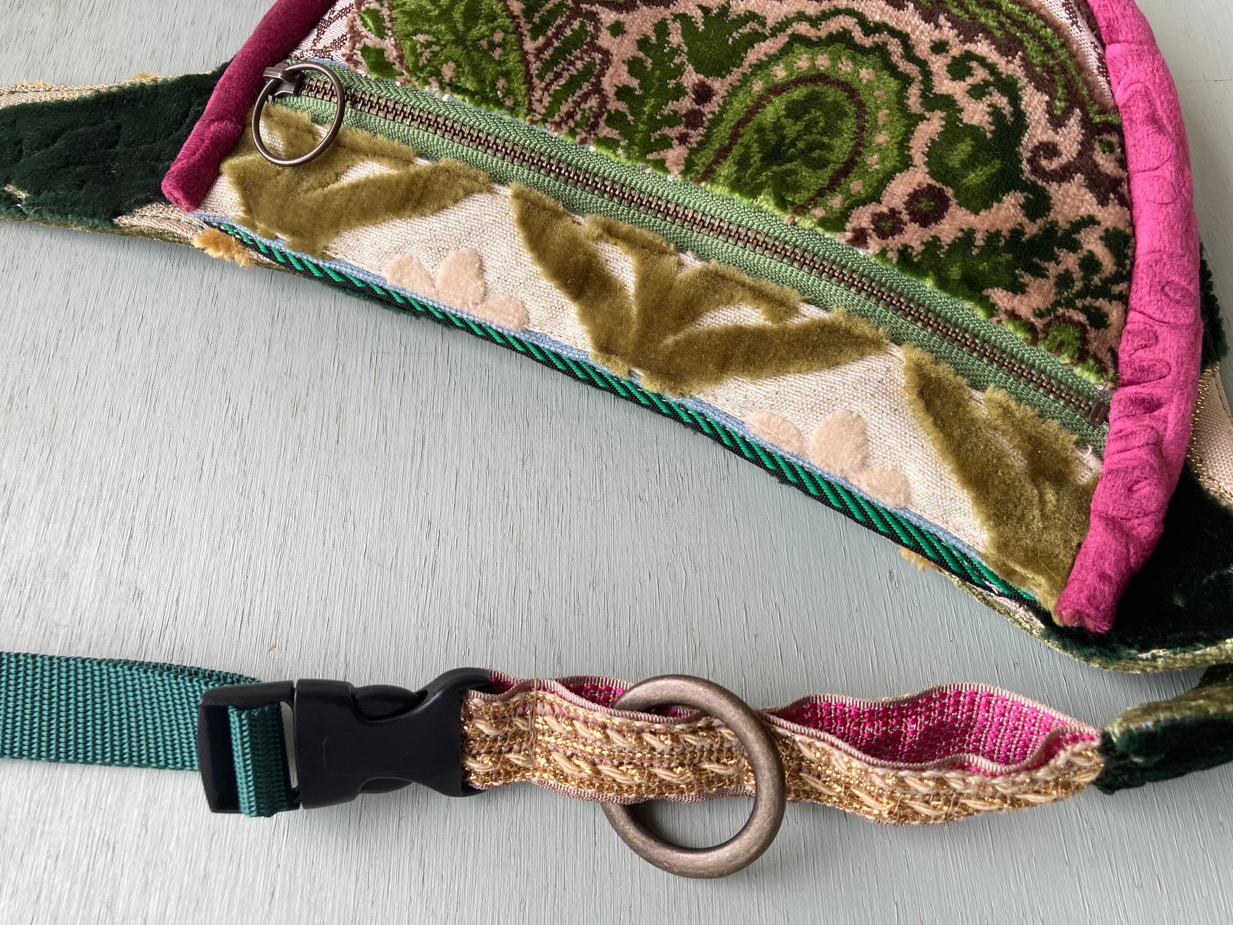 オリジナルデザインのウェストバッグ型ショルダーです。モロッコの上質な生地をmixして、同じものが2つとない自由でカラフルな組み合わせで制作しています。