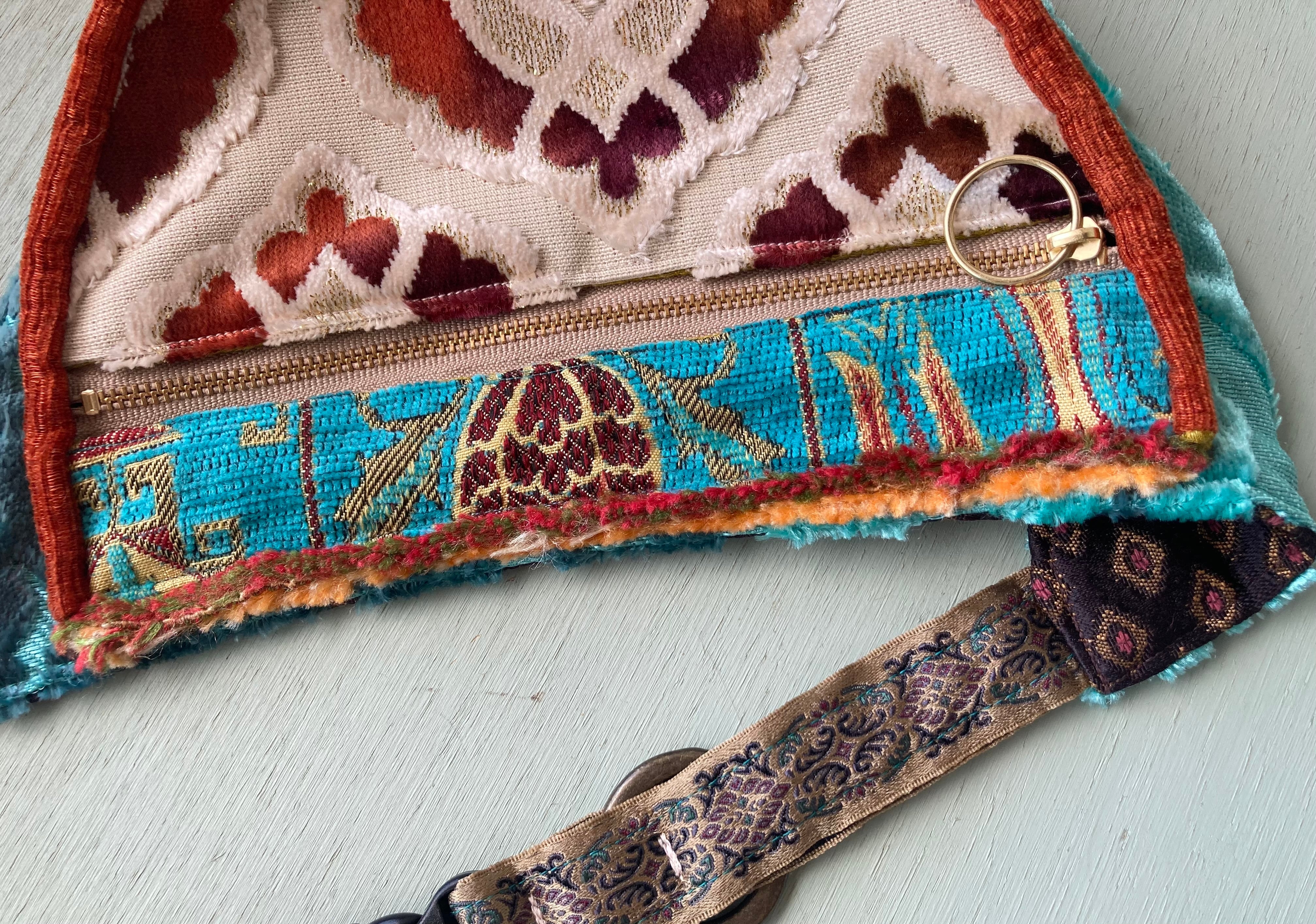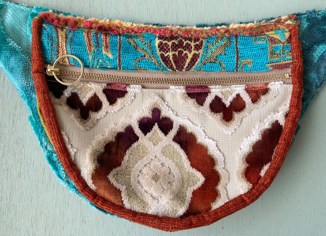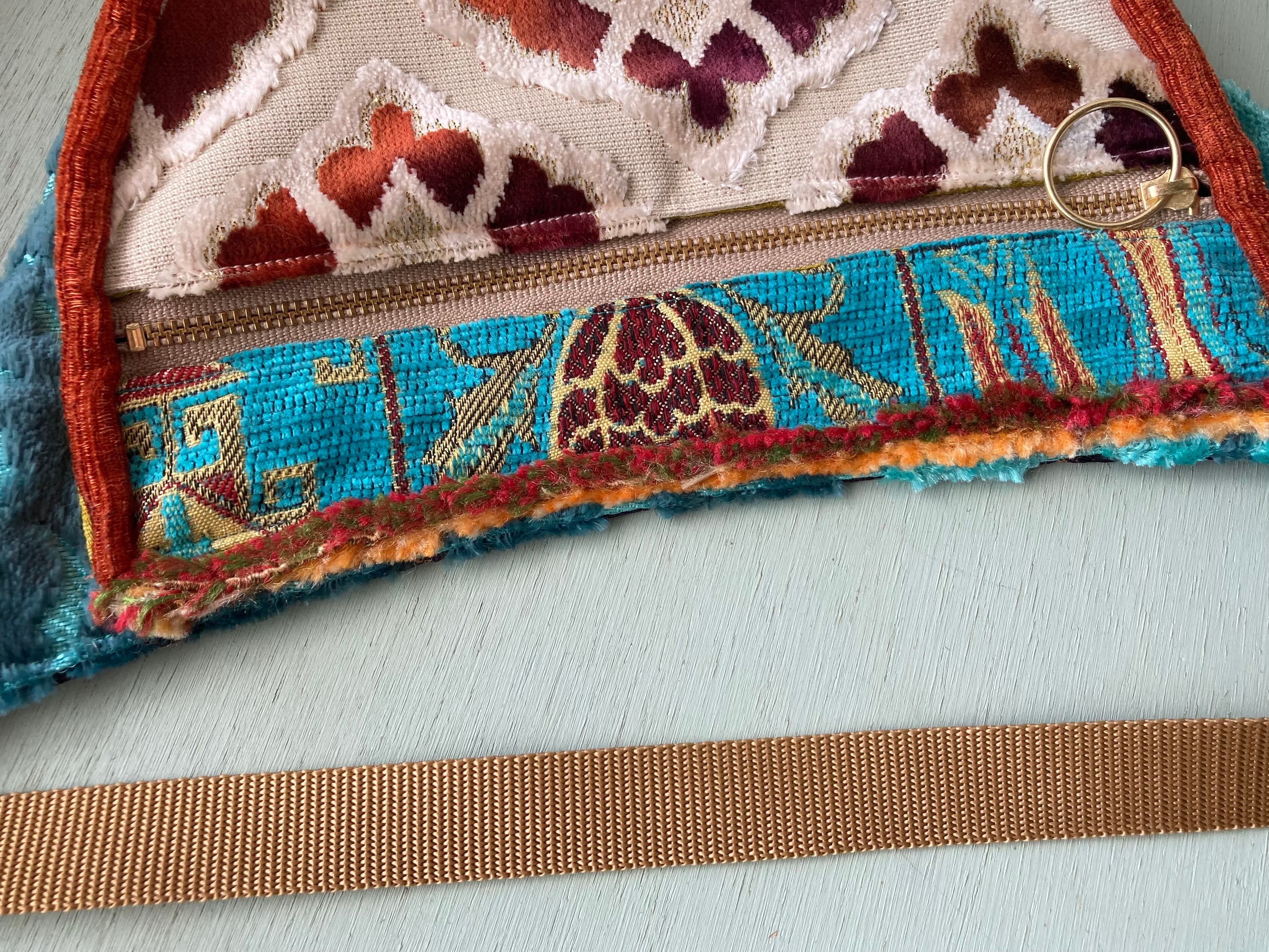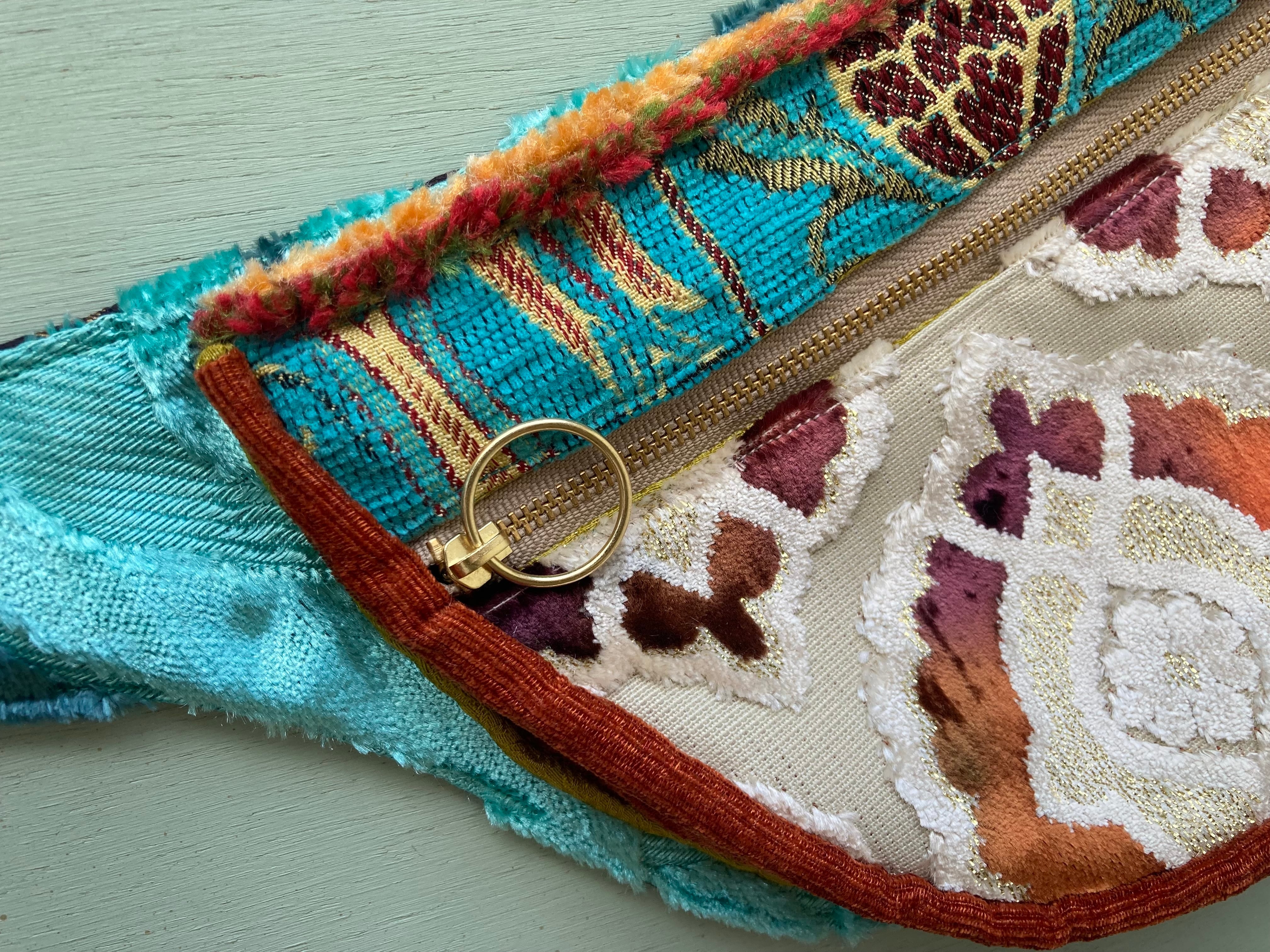 オリジナルデザインのウェストバッグ型ショルダーです。モロッコの上質な生地をmixして、同じものが2つとない自由でカラフルな組み合わせで制作しています。
