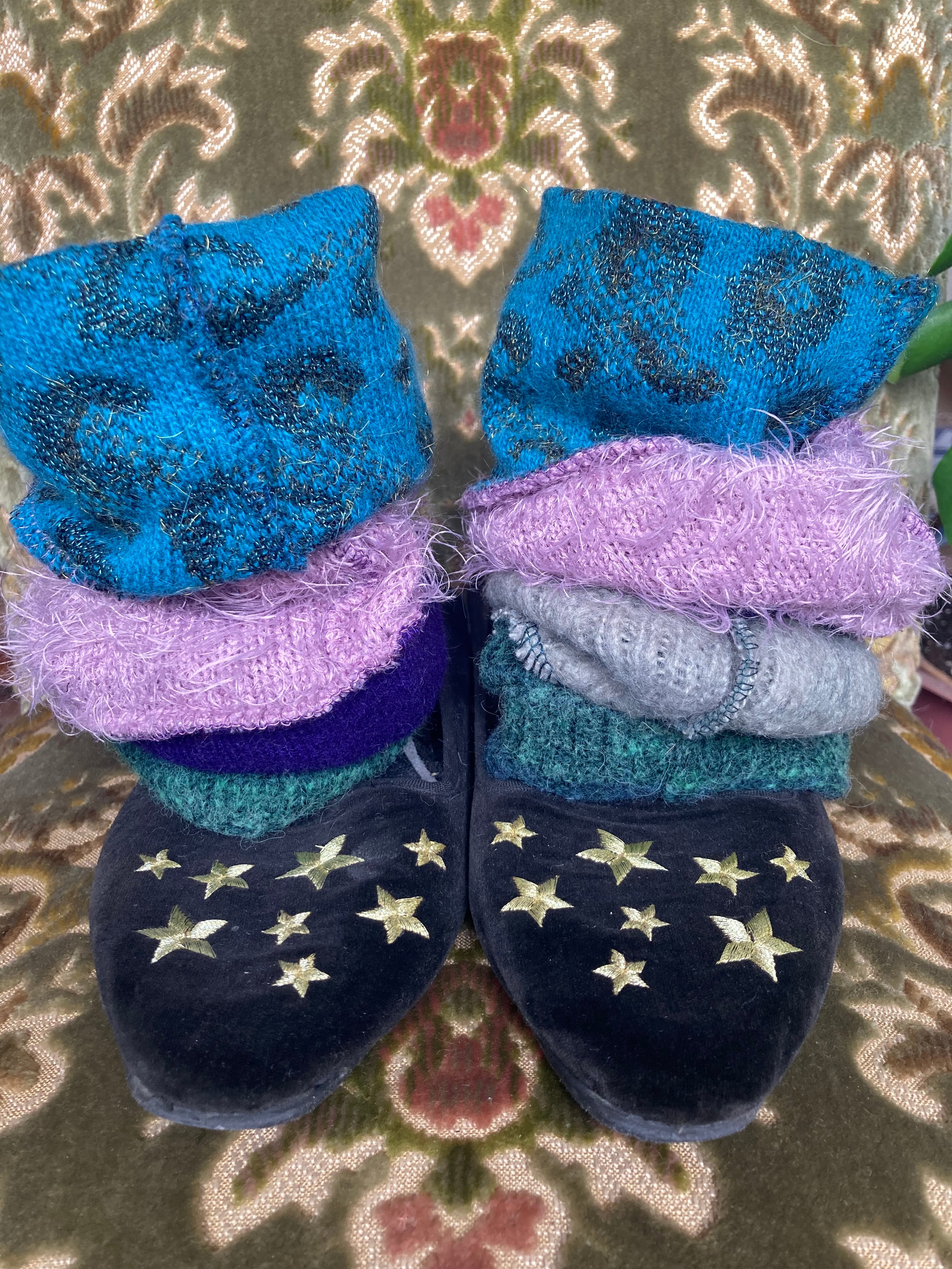 伸ばしてハイソックスのように、またルーズソックスのようにクシュッと着けてもかわいいです。