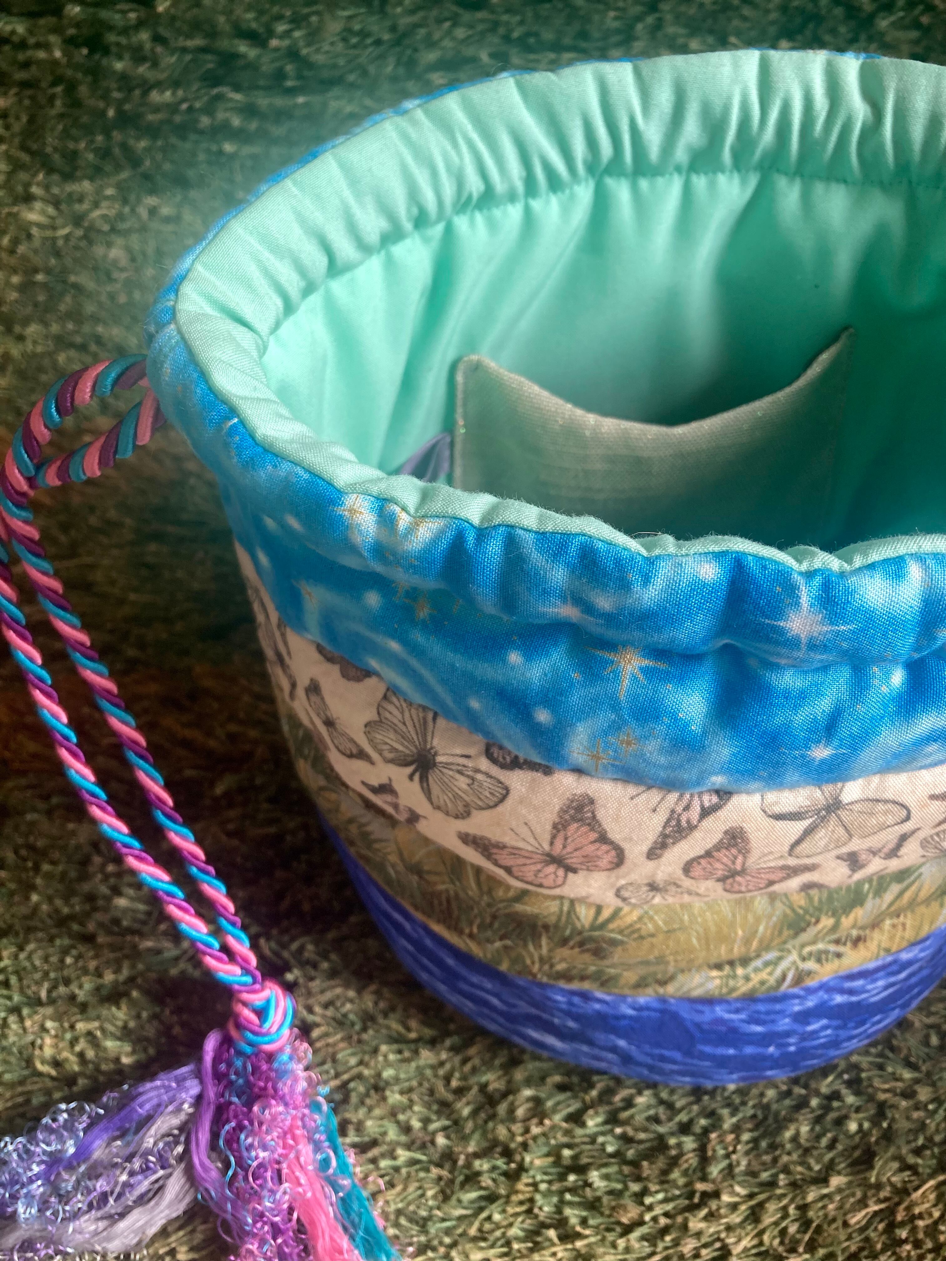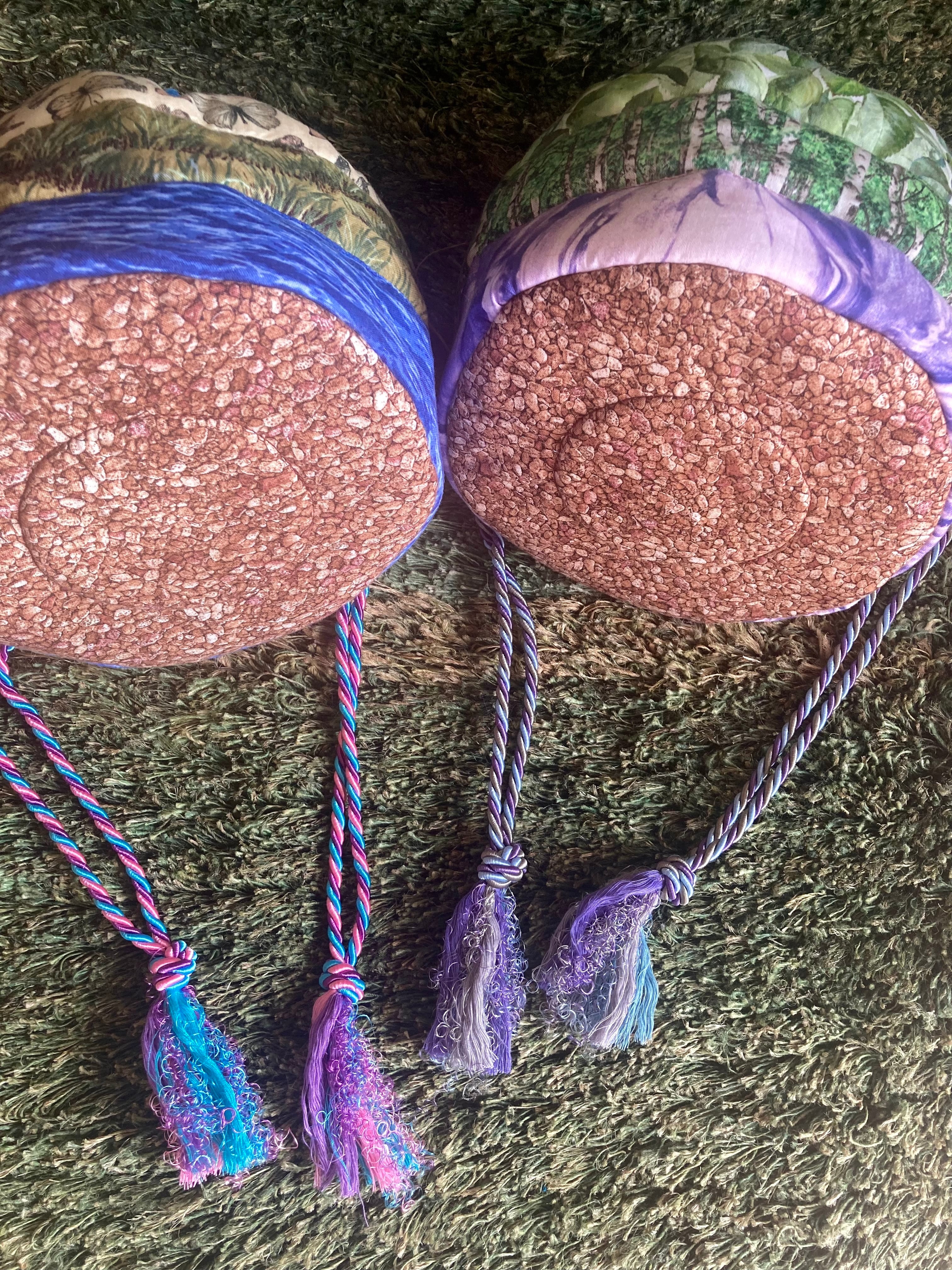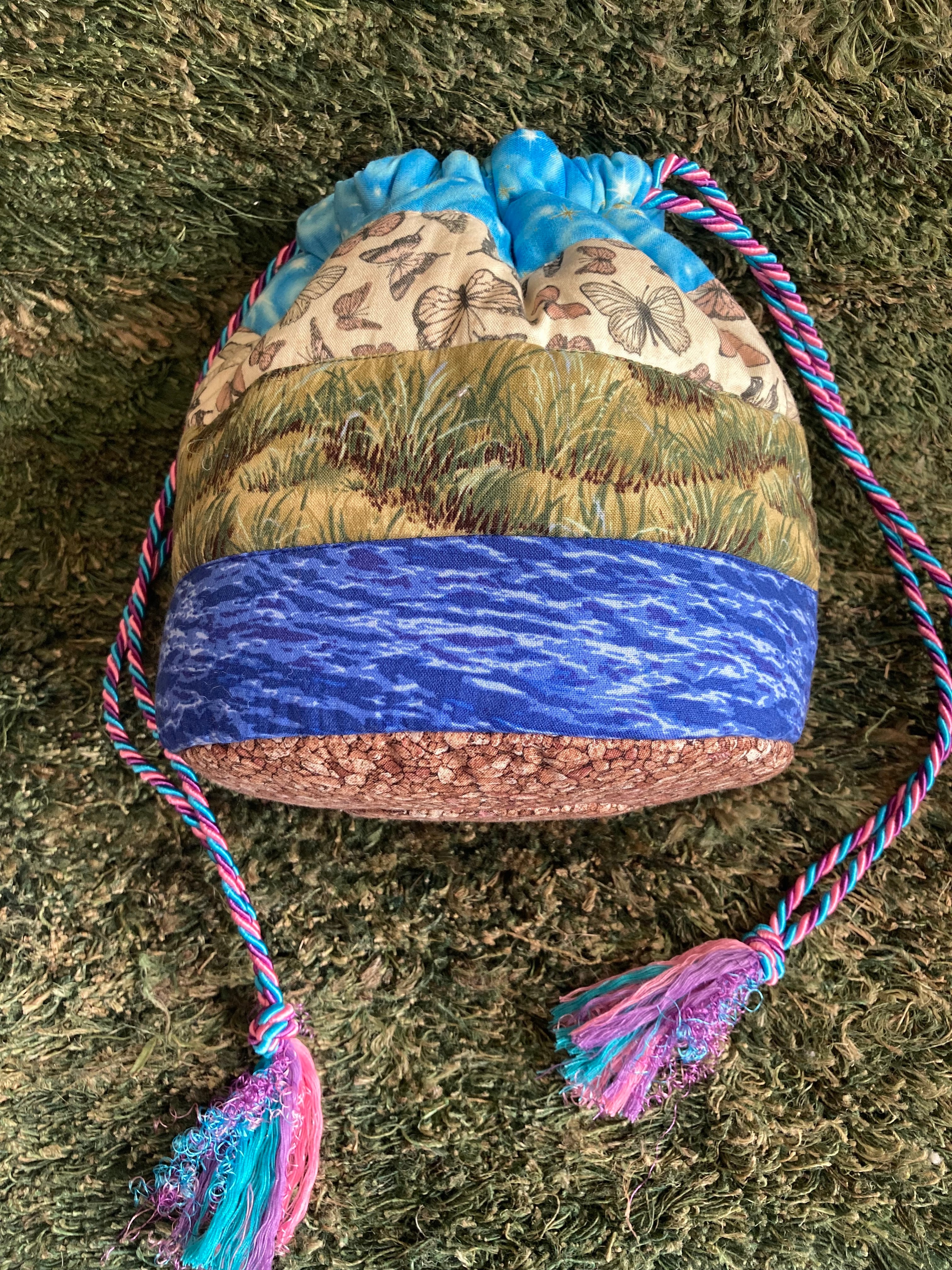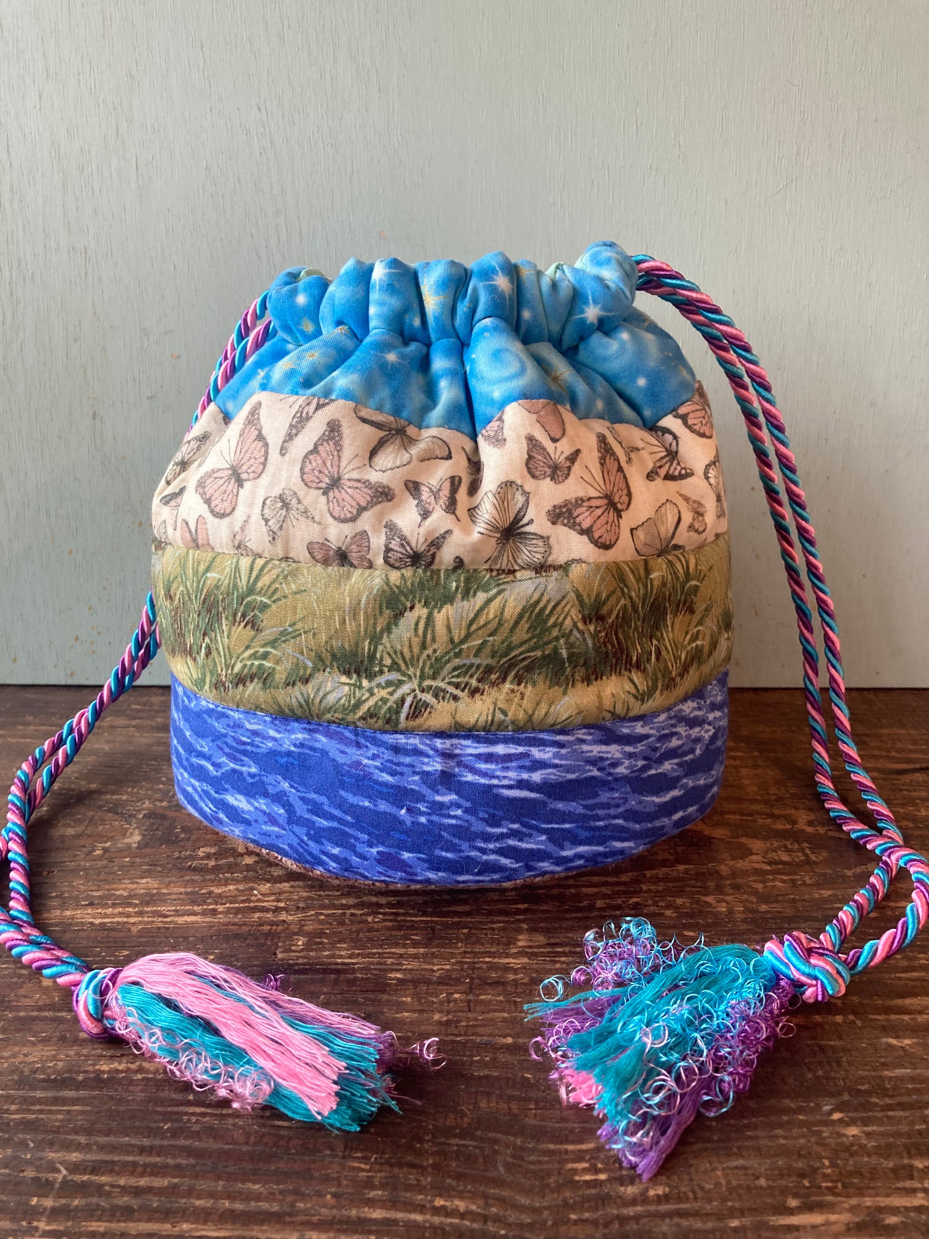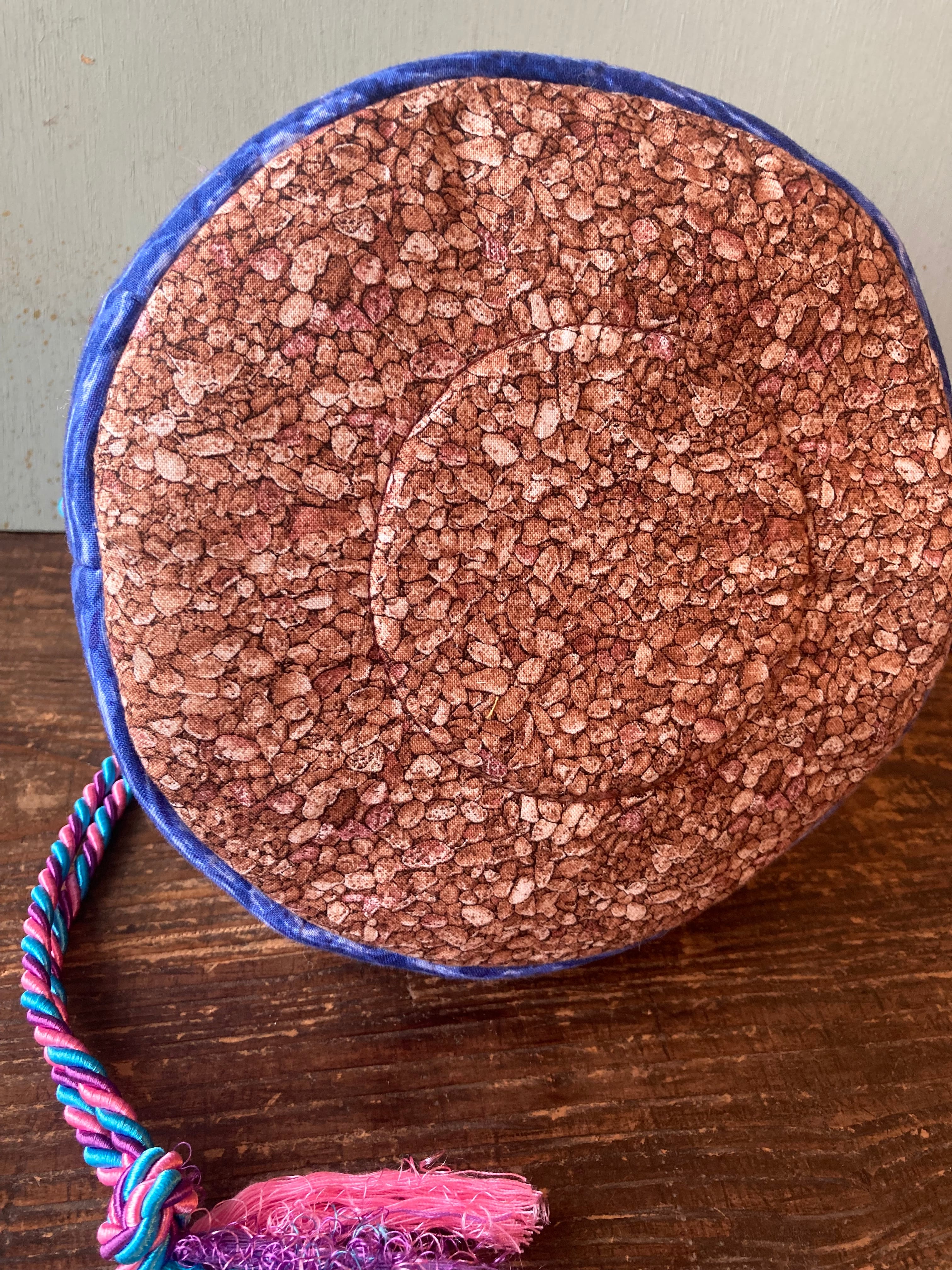 ぽっこりしたボリューム感と、地球をイメージして繋いだ生地がなんともかわいいです。