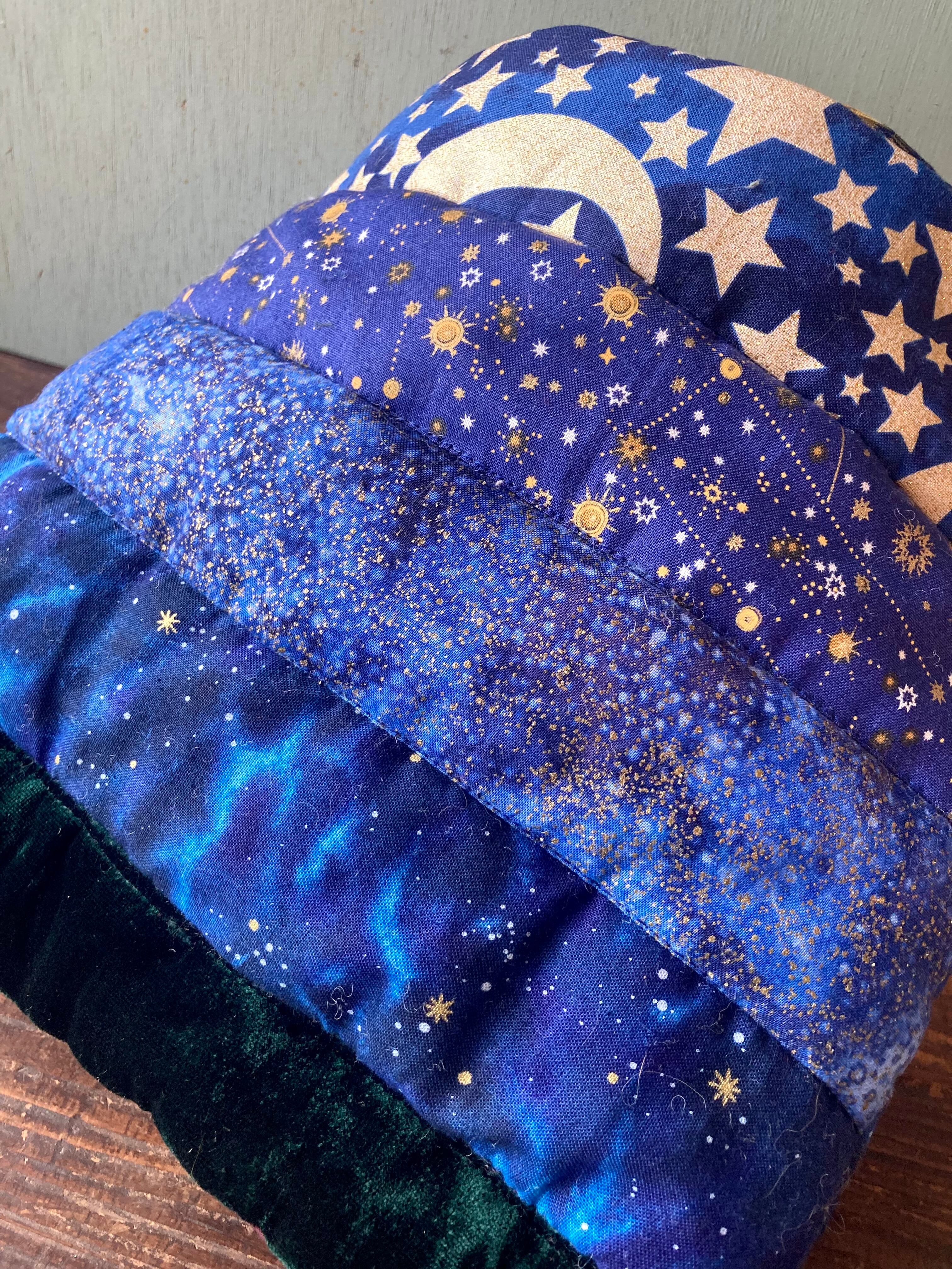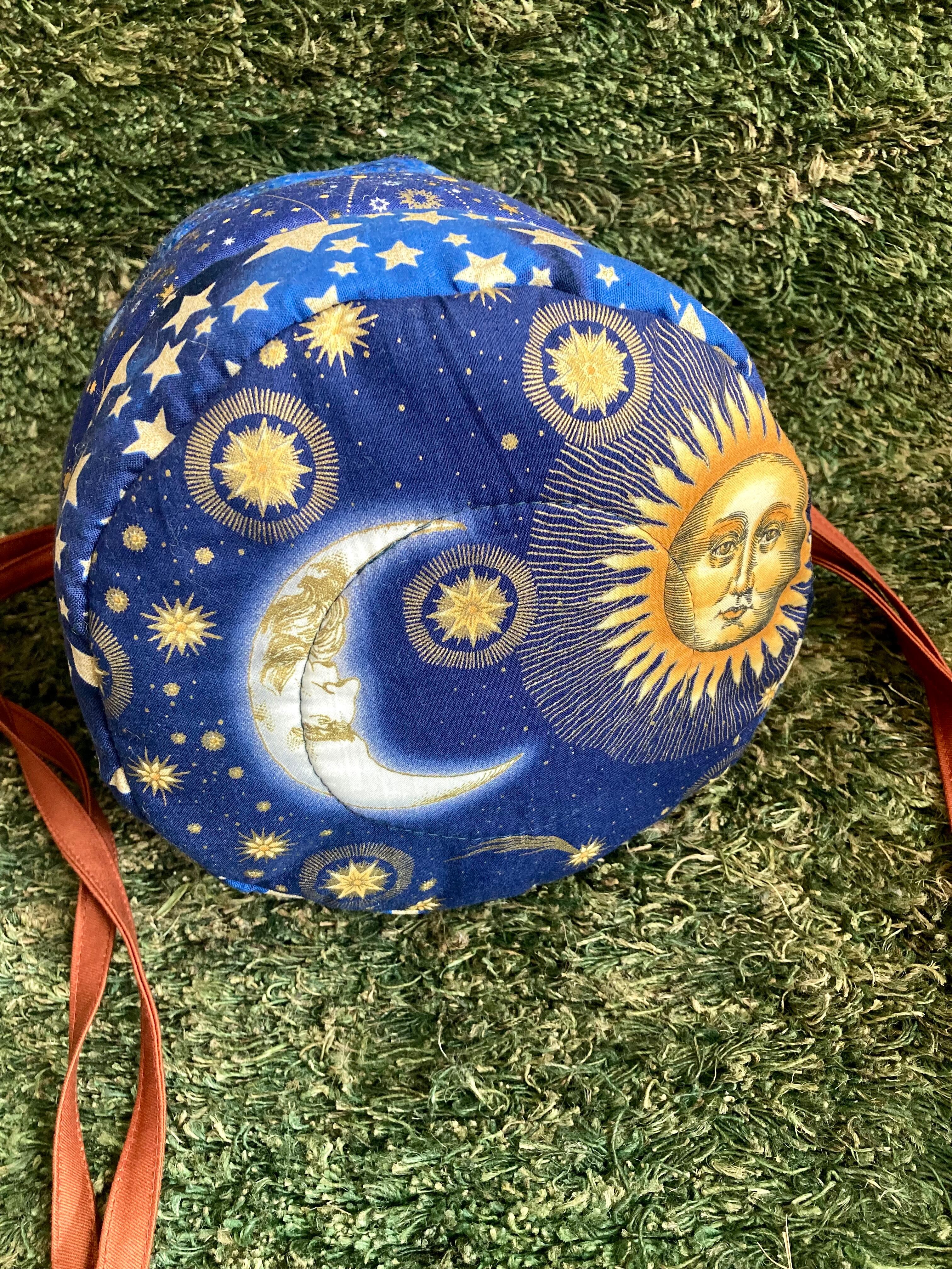 ぽっこりしたボリューム感と、宇宙をイメージして繋いだ生地がなんともかわいいです。