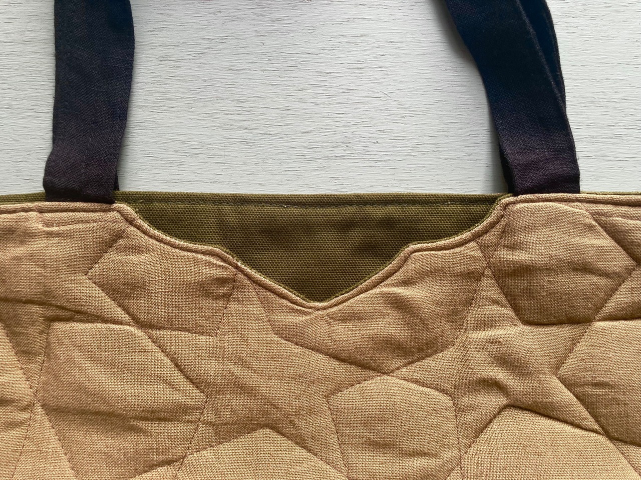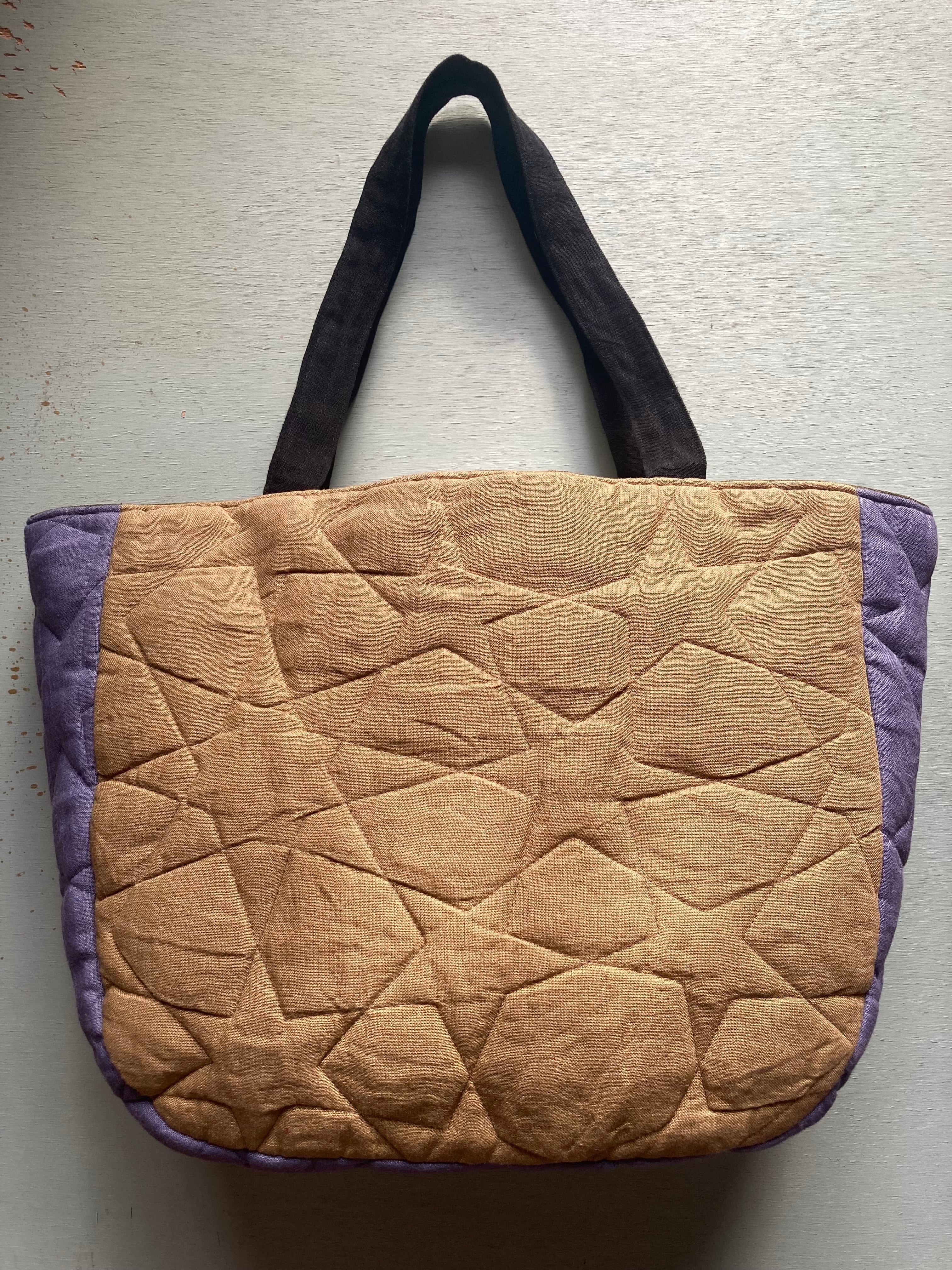 アラビック模様にキルティングした生地を使ったオリジナルのトートバッグです。