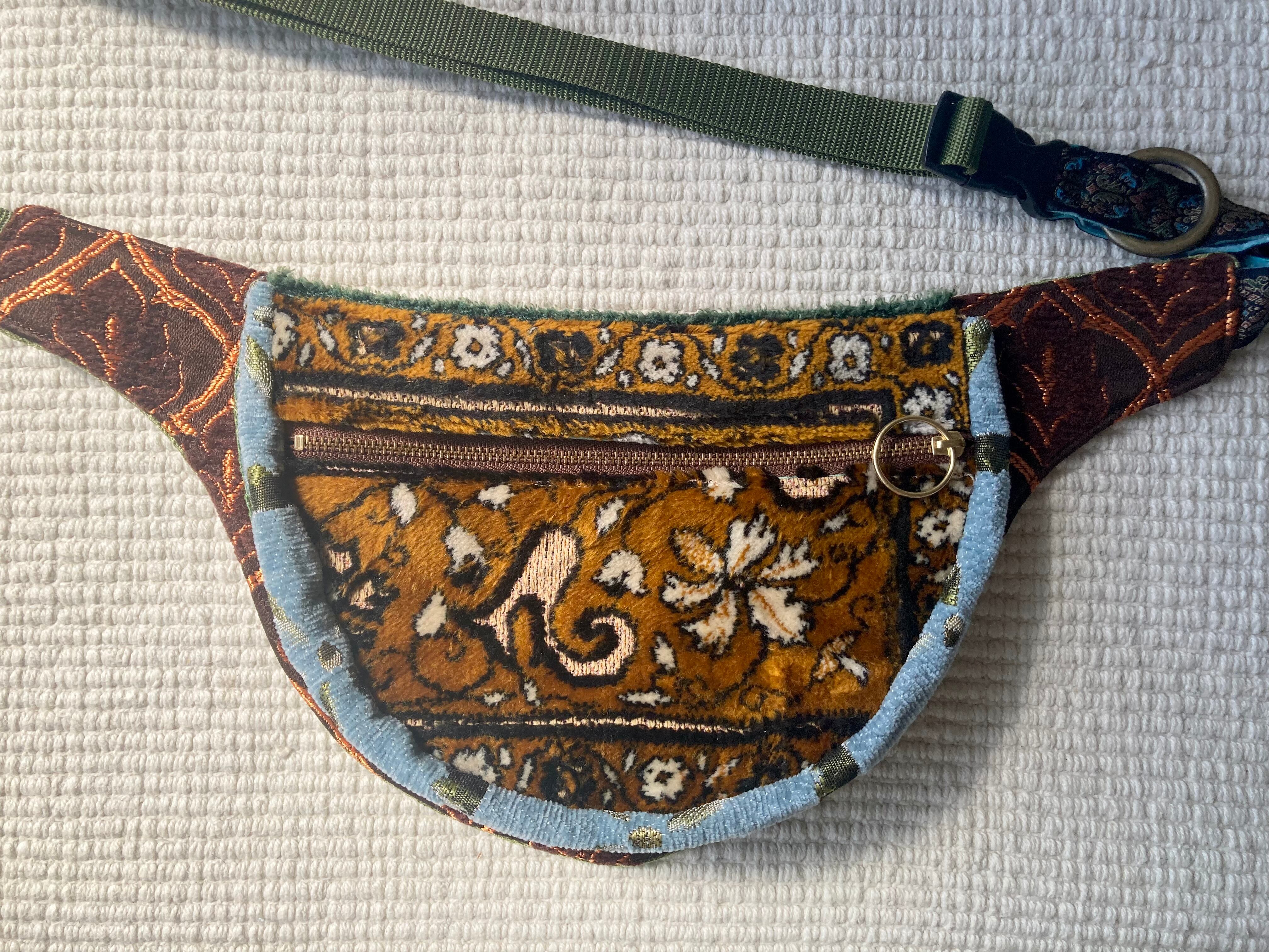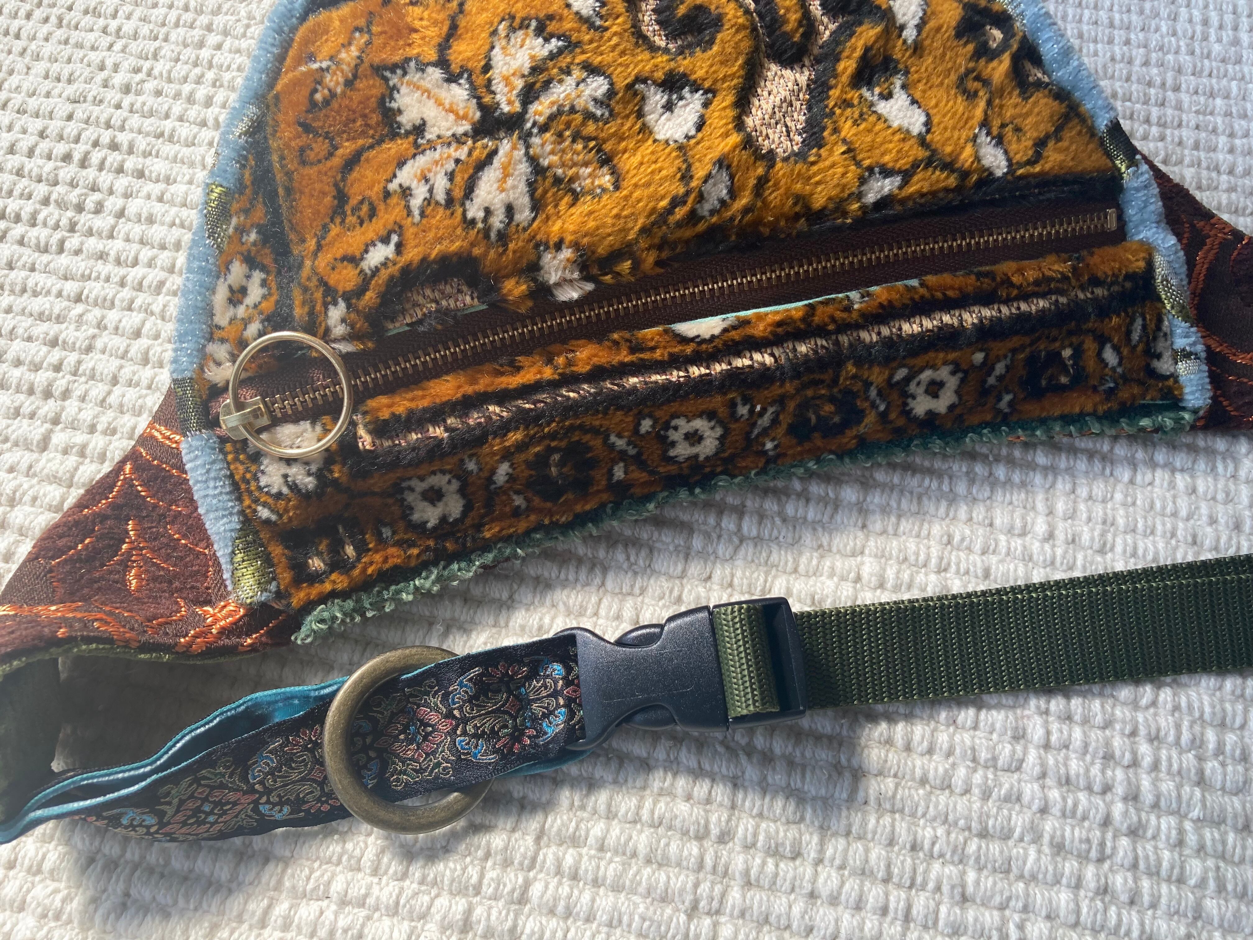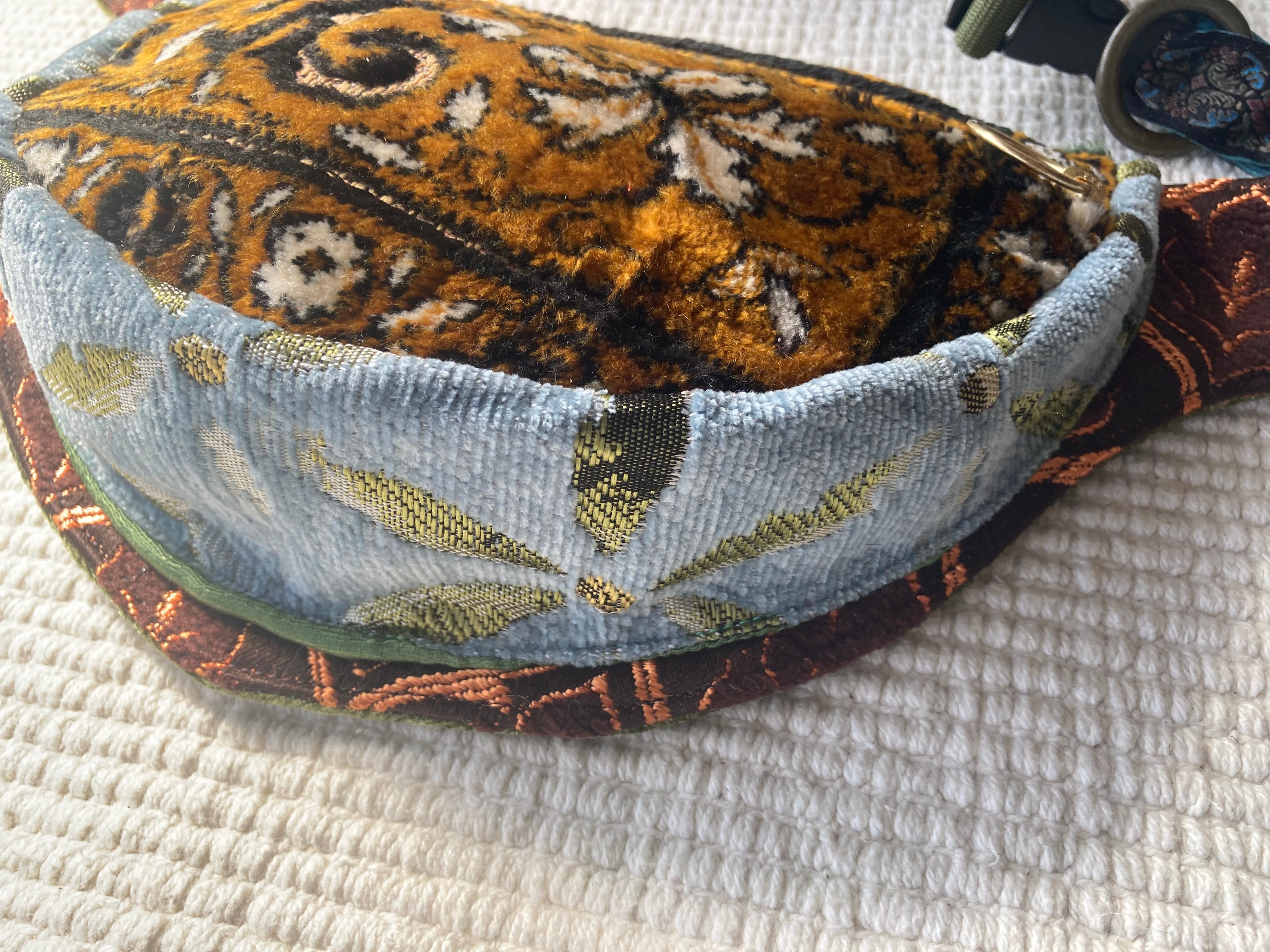 オリジナルデザインのウェストバッグ型ショルダーです。モロッコの上質な生地をmixして、同じものが2つとない自由でカラフルな組み合わせで制作しています。