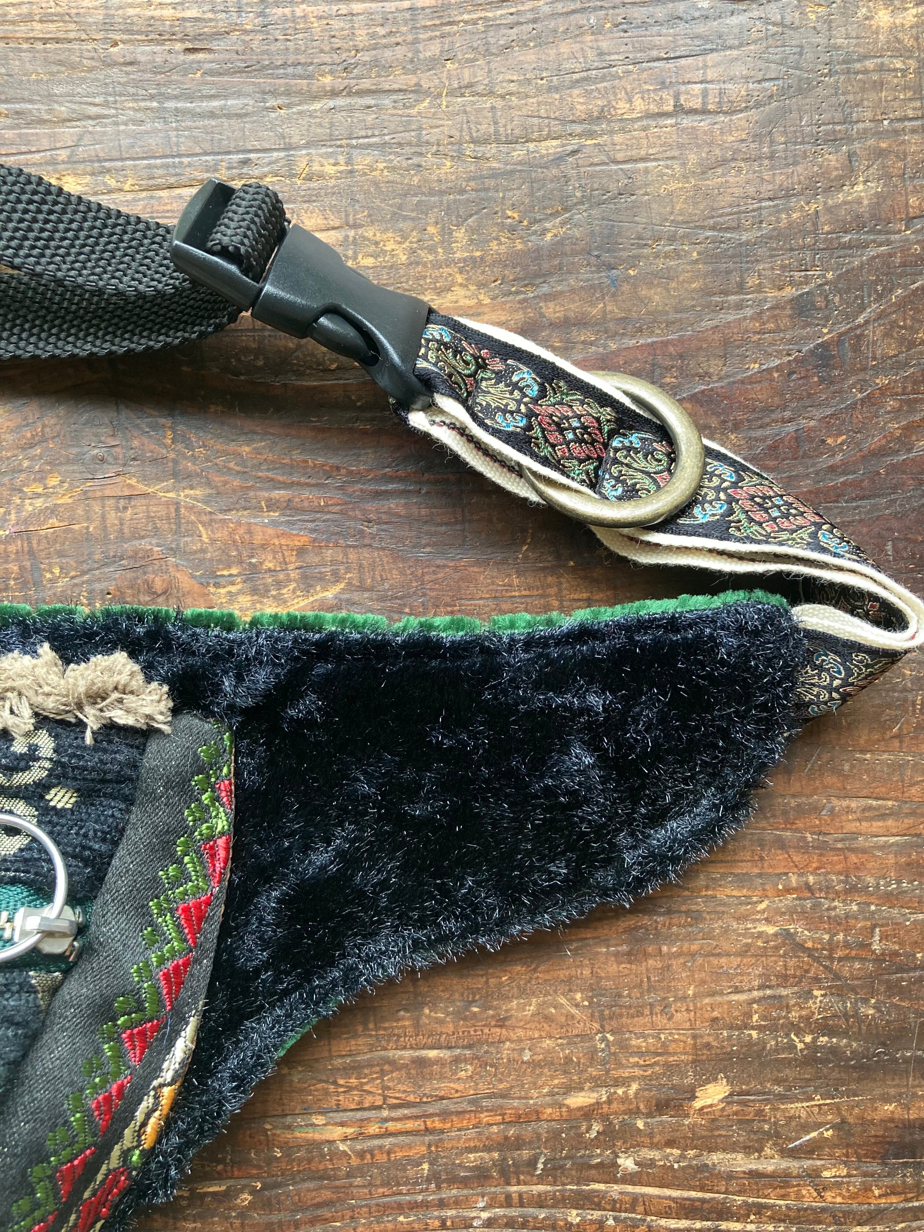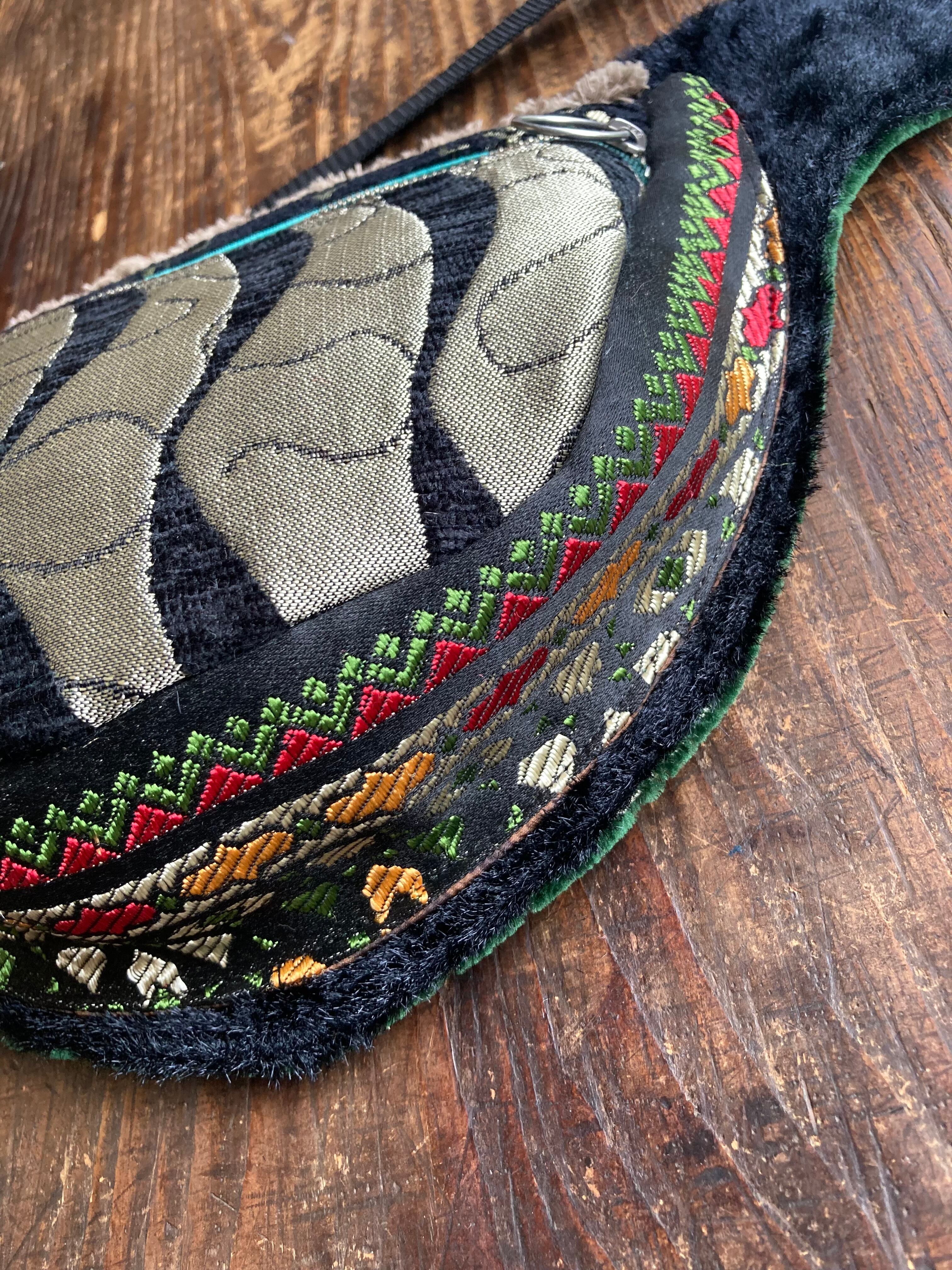 オリジナルデザインのウェストバッグ型ショルダーです。モロッコの上質な生地をmixして、同じものが2つとない自由でカラフルな組み合わせで制作しています。