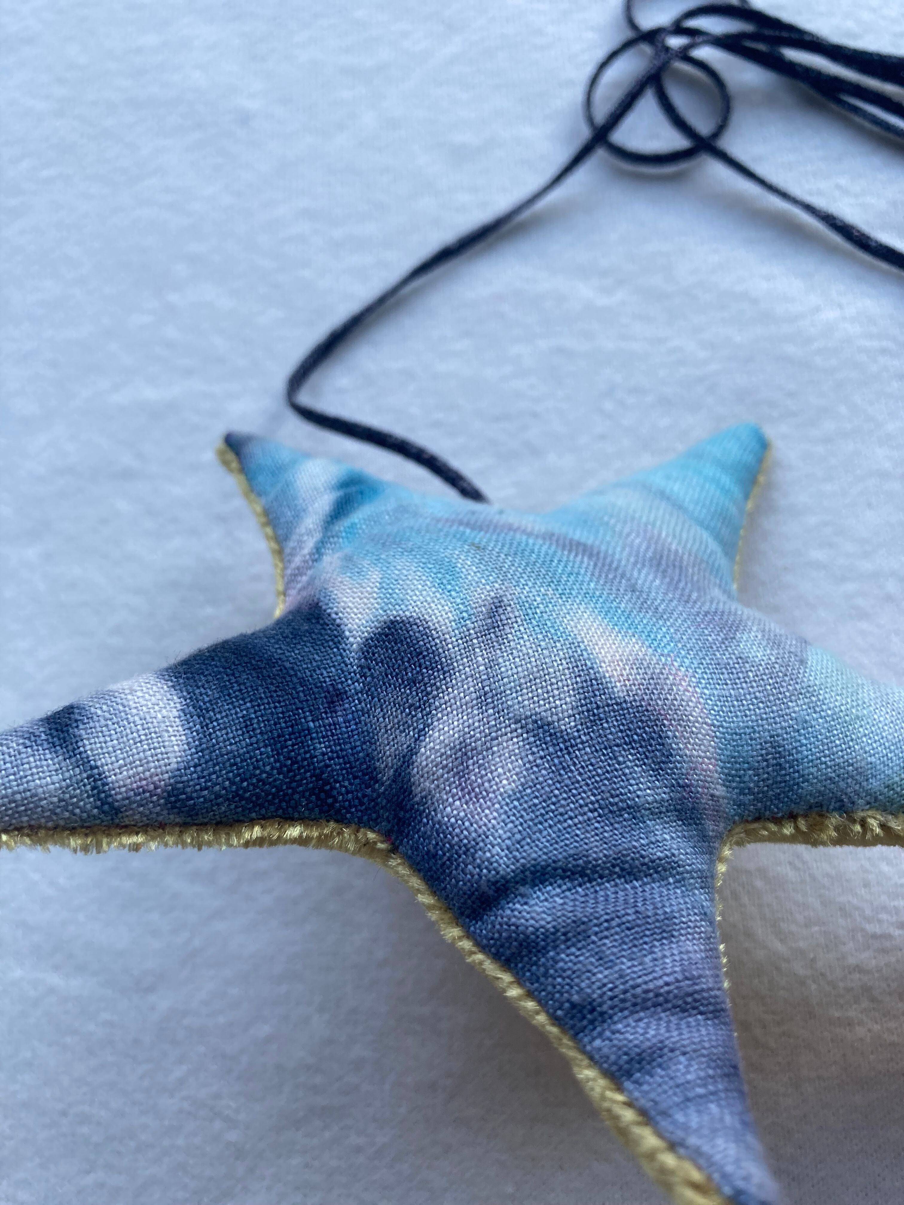 フランスのヴィンテージ生地や、アメリカ、アジア等を旅した生地で作るオーナメント。ベロアと組み合わせています。