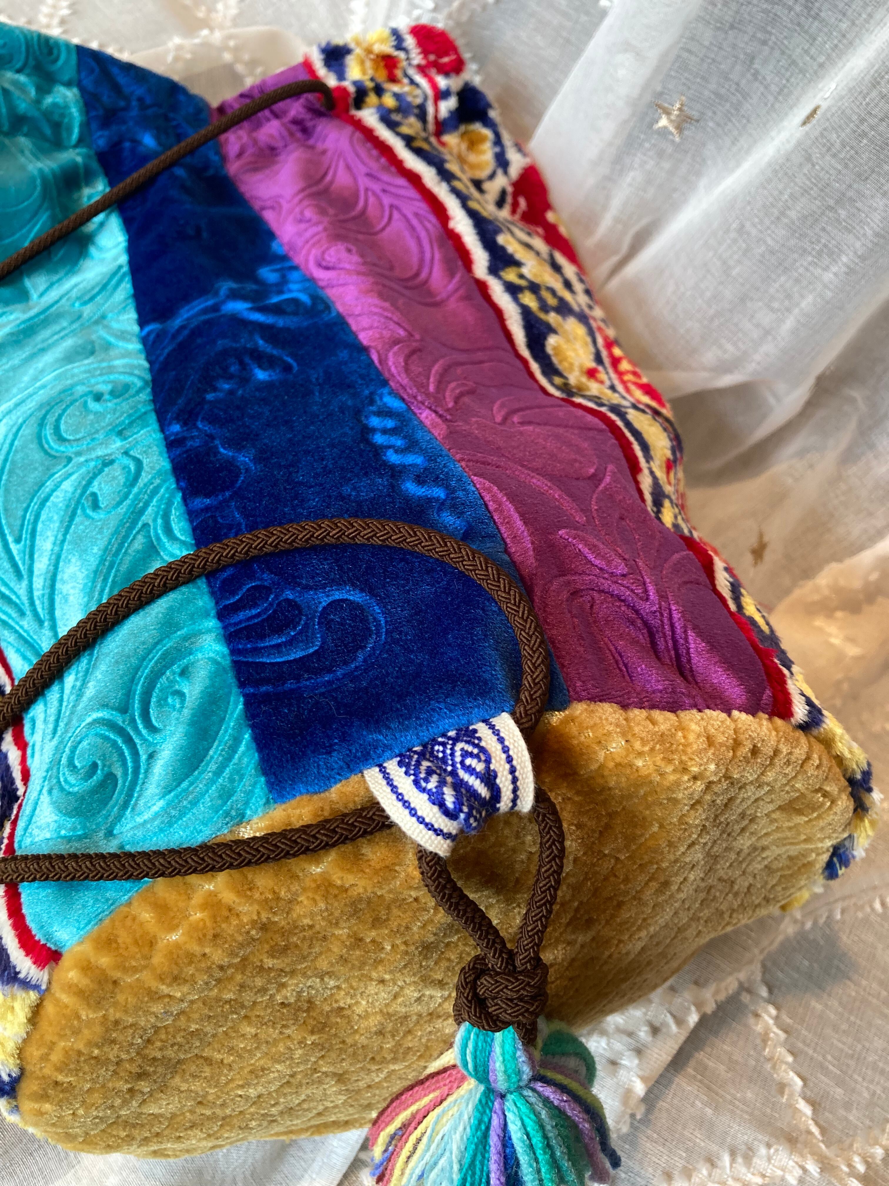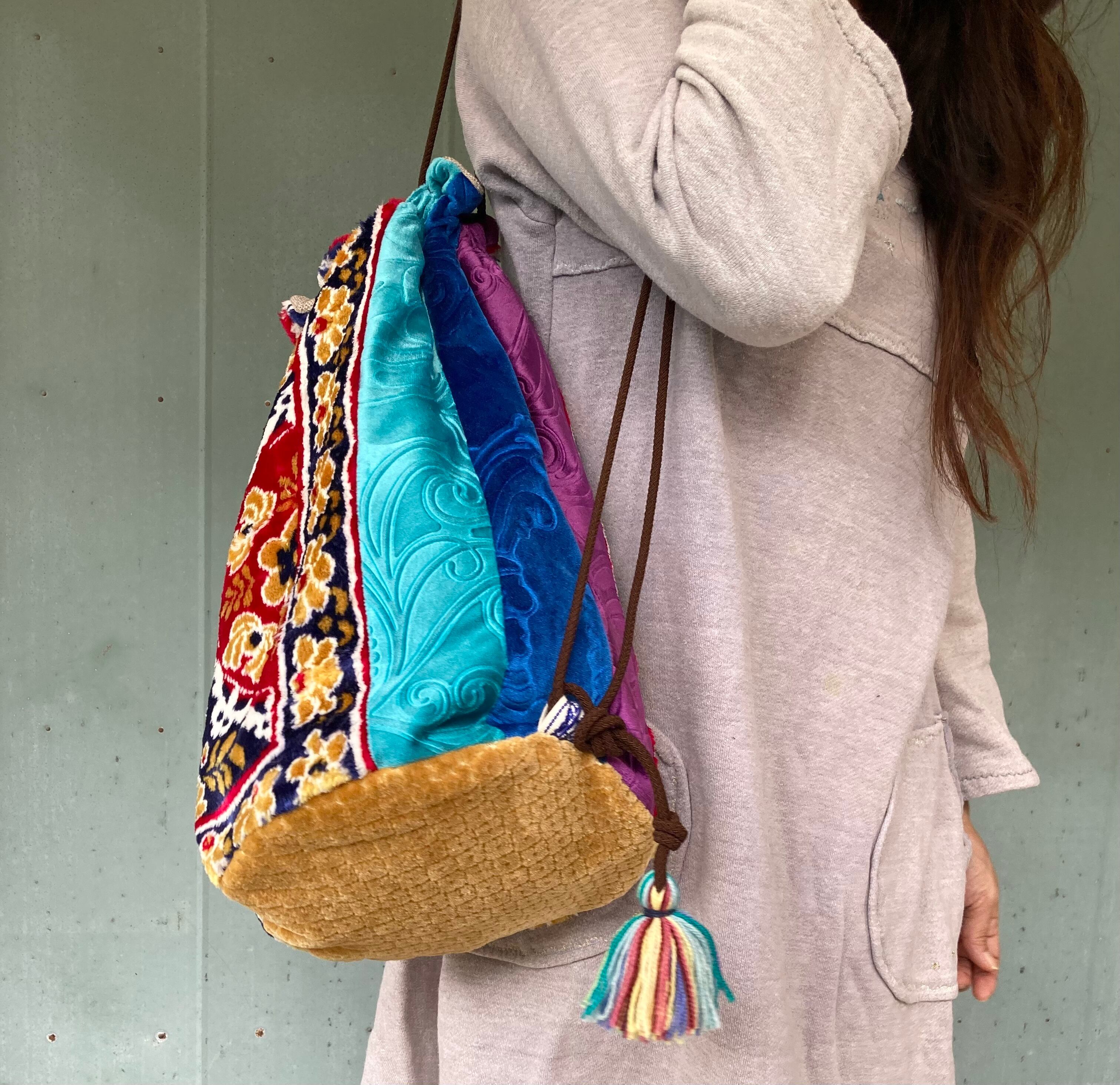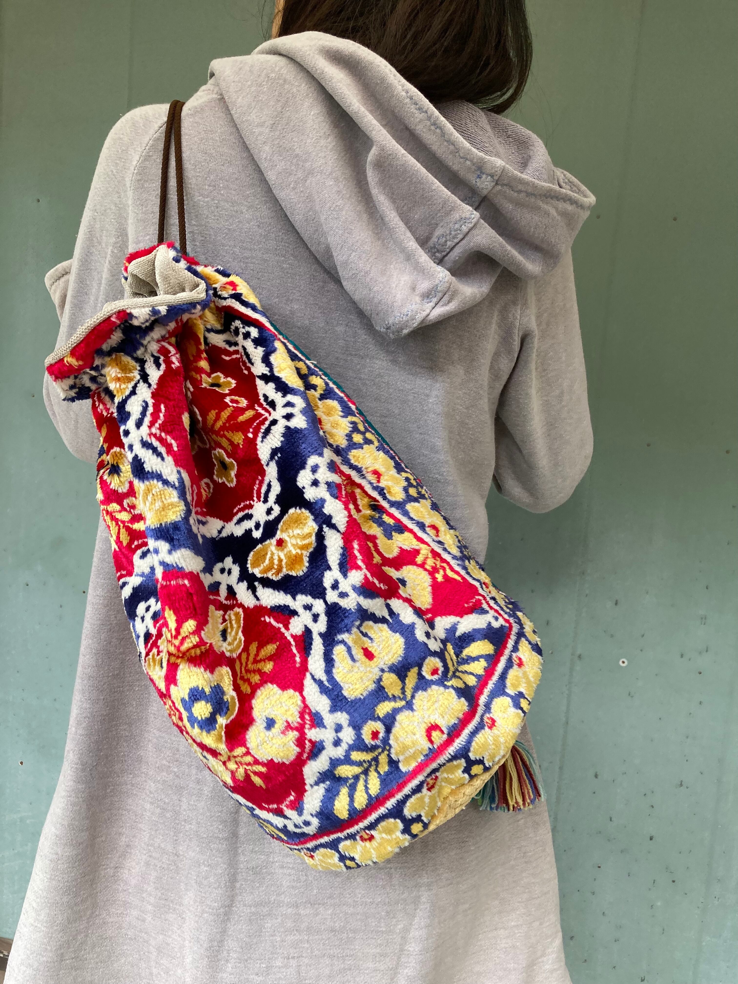 東欧の薄手ラグをベースに使ったnapzak、組み合わせたグラデーションがマジカルなカラーリングでお出かけ気分が上がります!